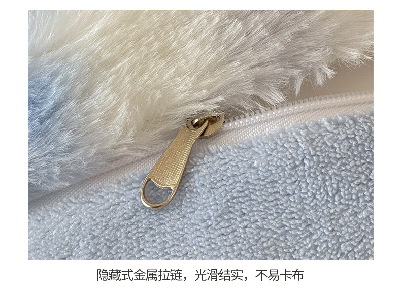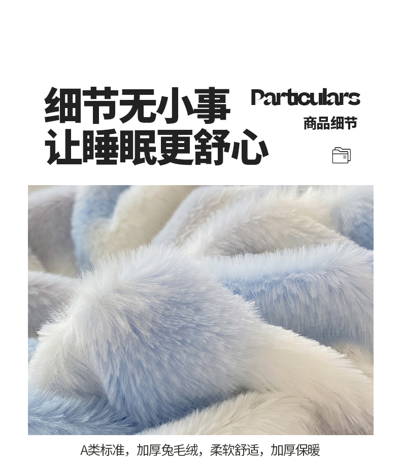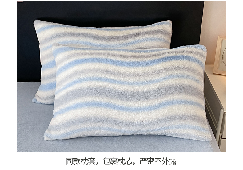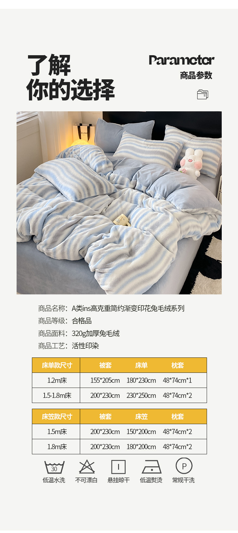 商品名称:A类ins高克重320克简约渐变印花兔毛绒暖绒加厚牛奶绒系列四件套 绒兔毛-水波纹蓝灰