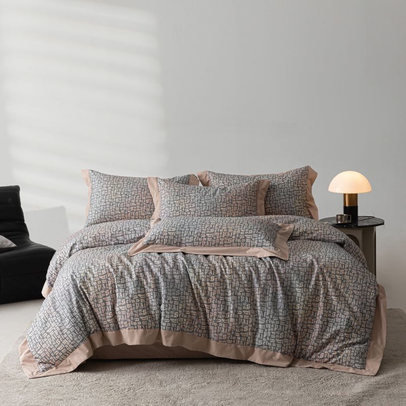 (总)栩裕纺织 2026新款100支全棉提花四件套,素锦 尊蒂,罗卡芙 豆沙,马到成功 月光灰,漫舞花丛 尔雅灰,素锦-浅米灰