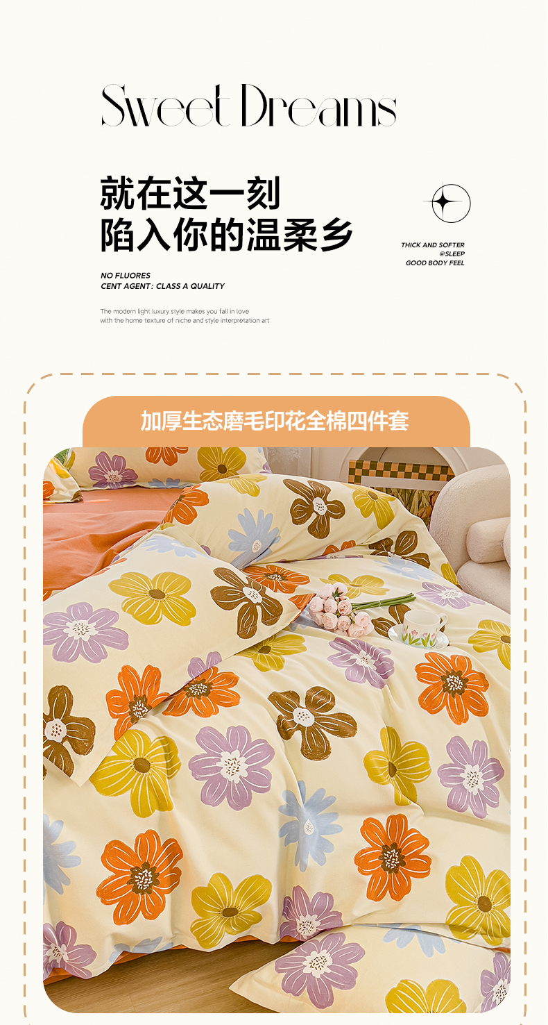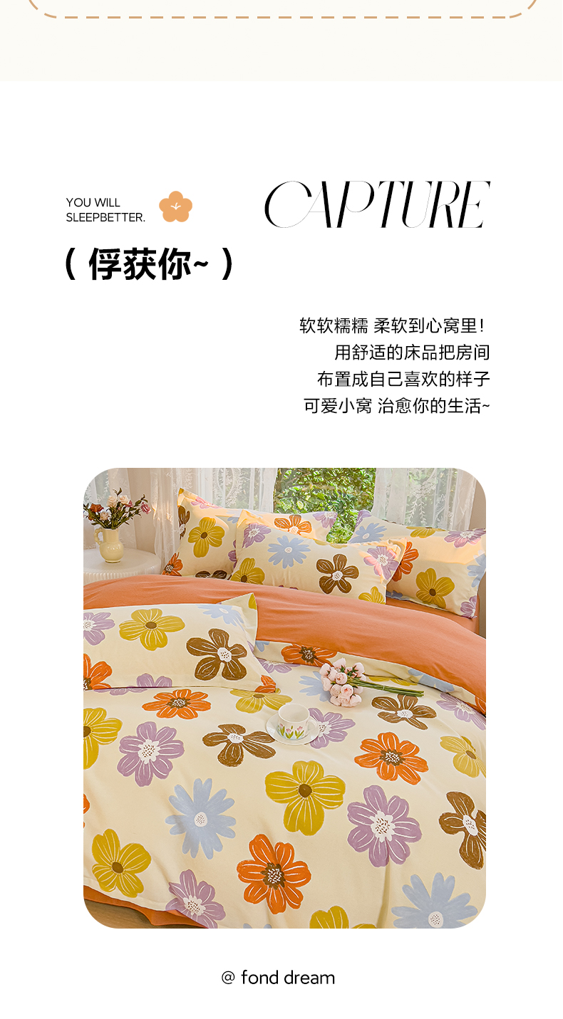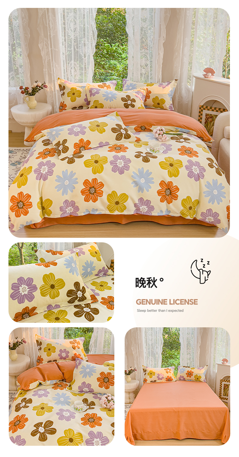 当前位置: 91家纺网 > 商品网购 > 床品套件 > 四件套 > 全棉普通四件套 > 伊而梦 2023新款小清新全棉磨毛印花四件套系列 晚秋