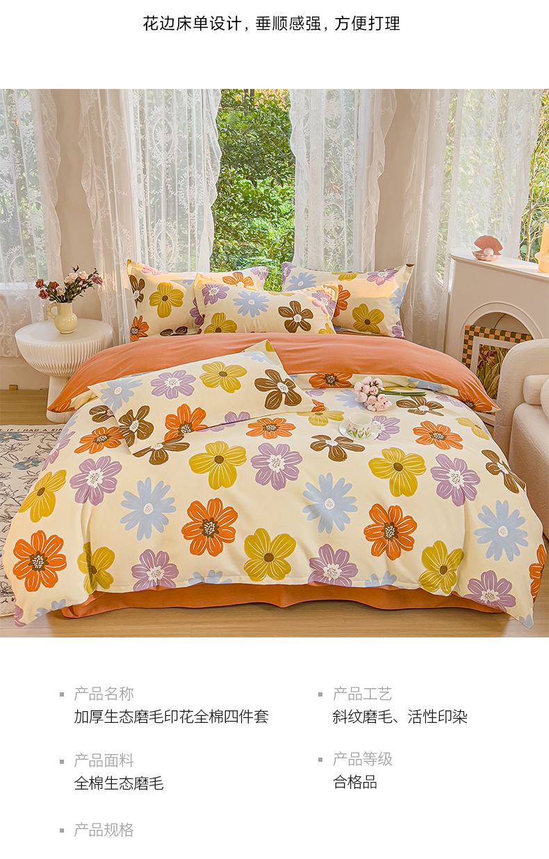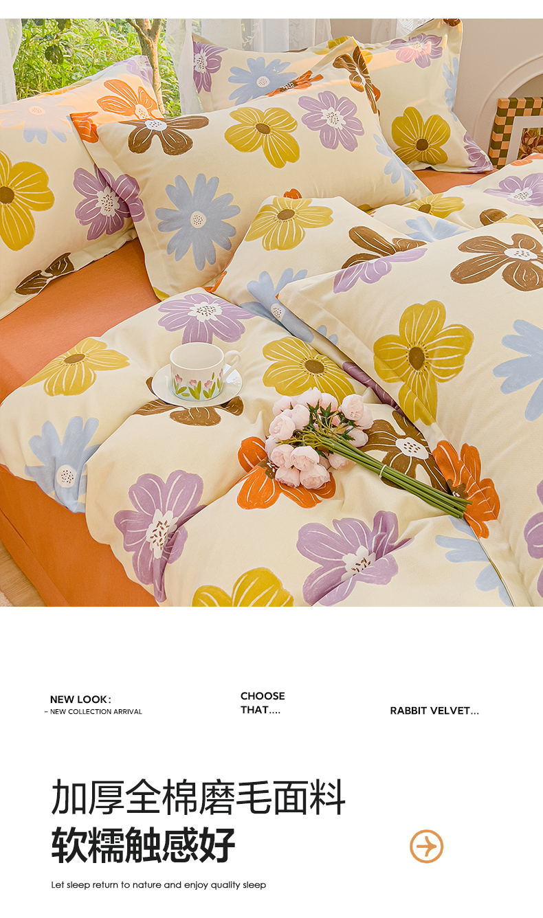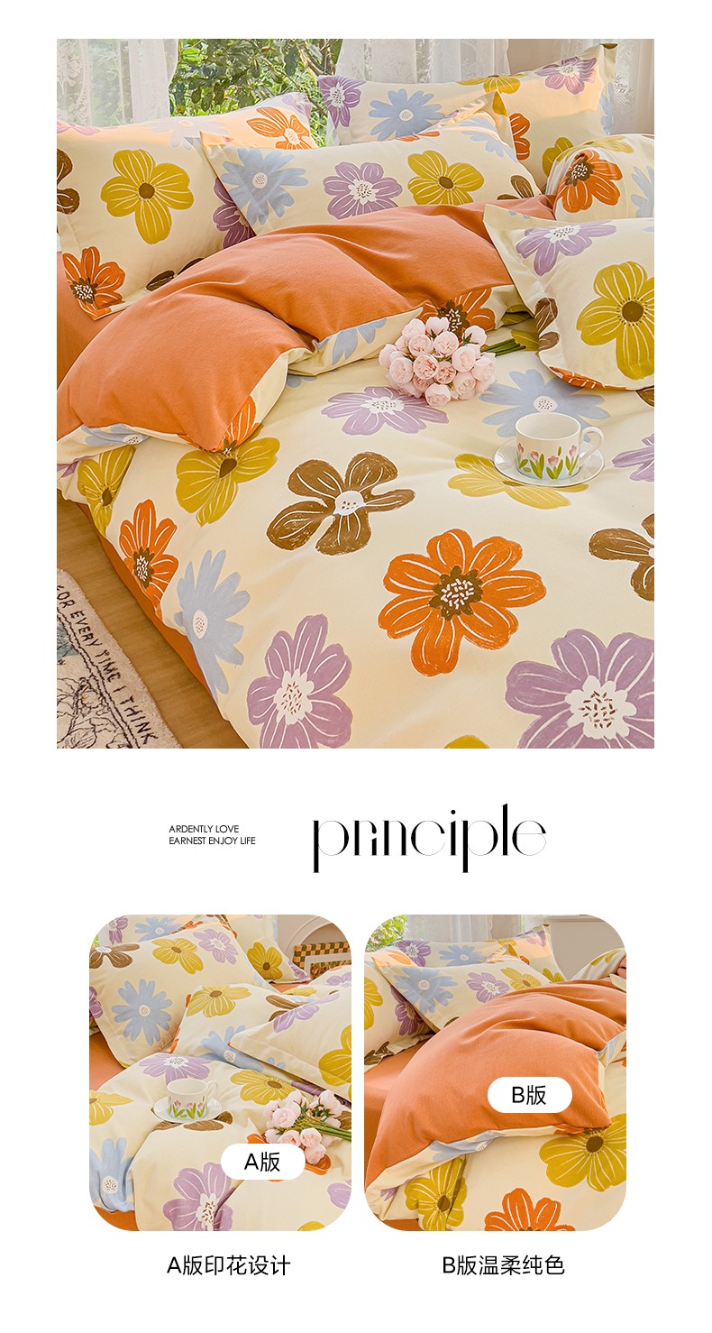 当前位置: 91家纺网 > 商品网购 > 床品套件 > 四件套 > 全棉普通四件套 > 伊而梦 2023新款小清新全棉磨毛印花四件套系列 晚秋