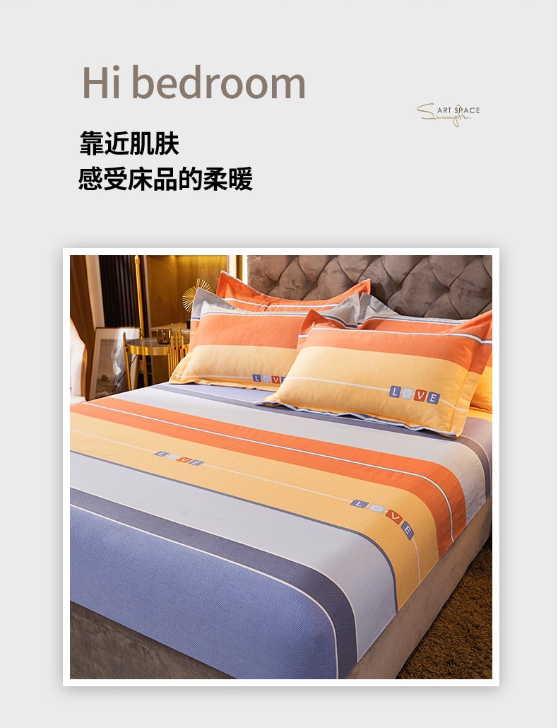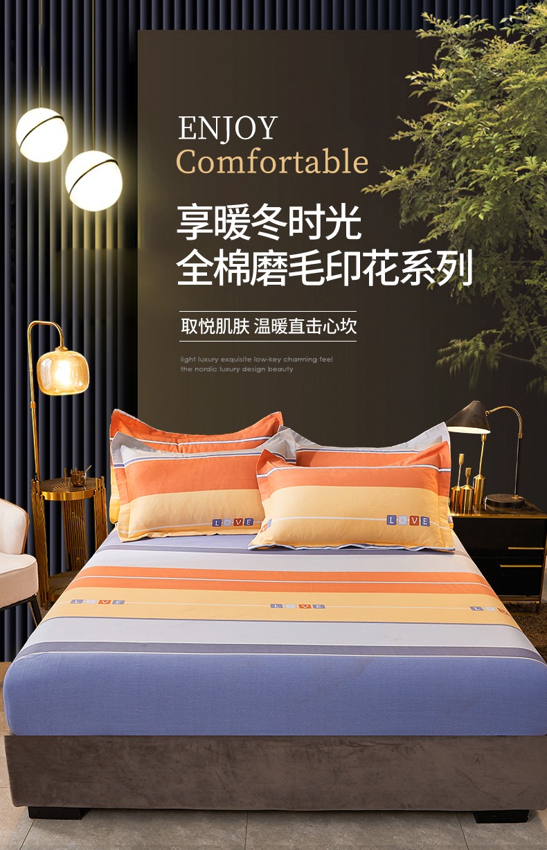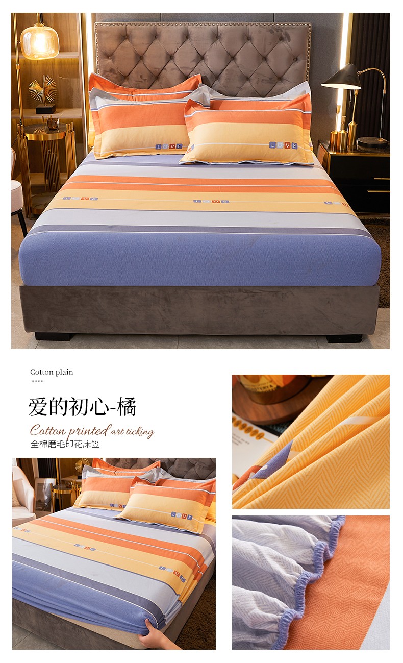 • 91家纺网 家纺一手货源 找家纺 伊而梦 2023新款全棉磨毛印花四件套系列单品床笠 爱的初心-橘