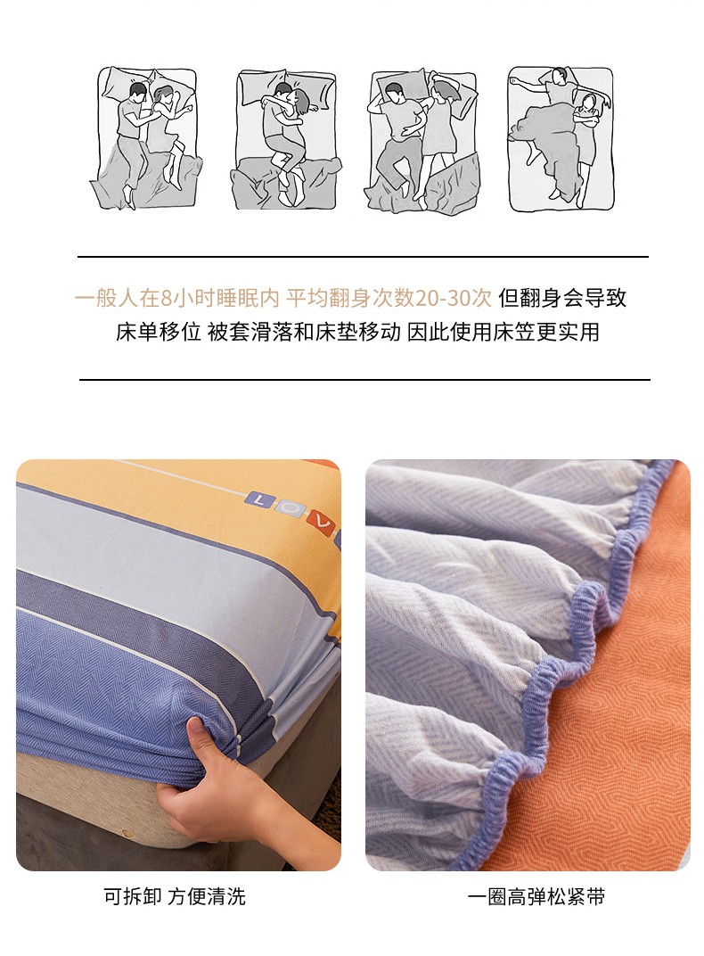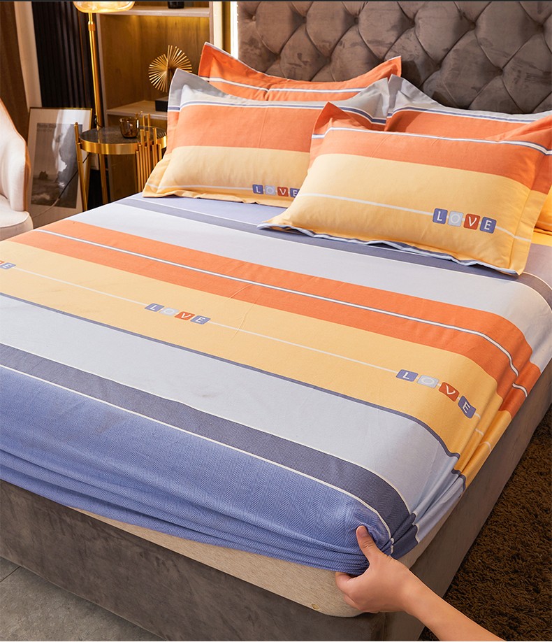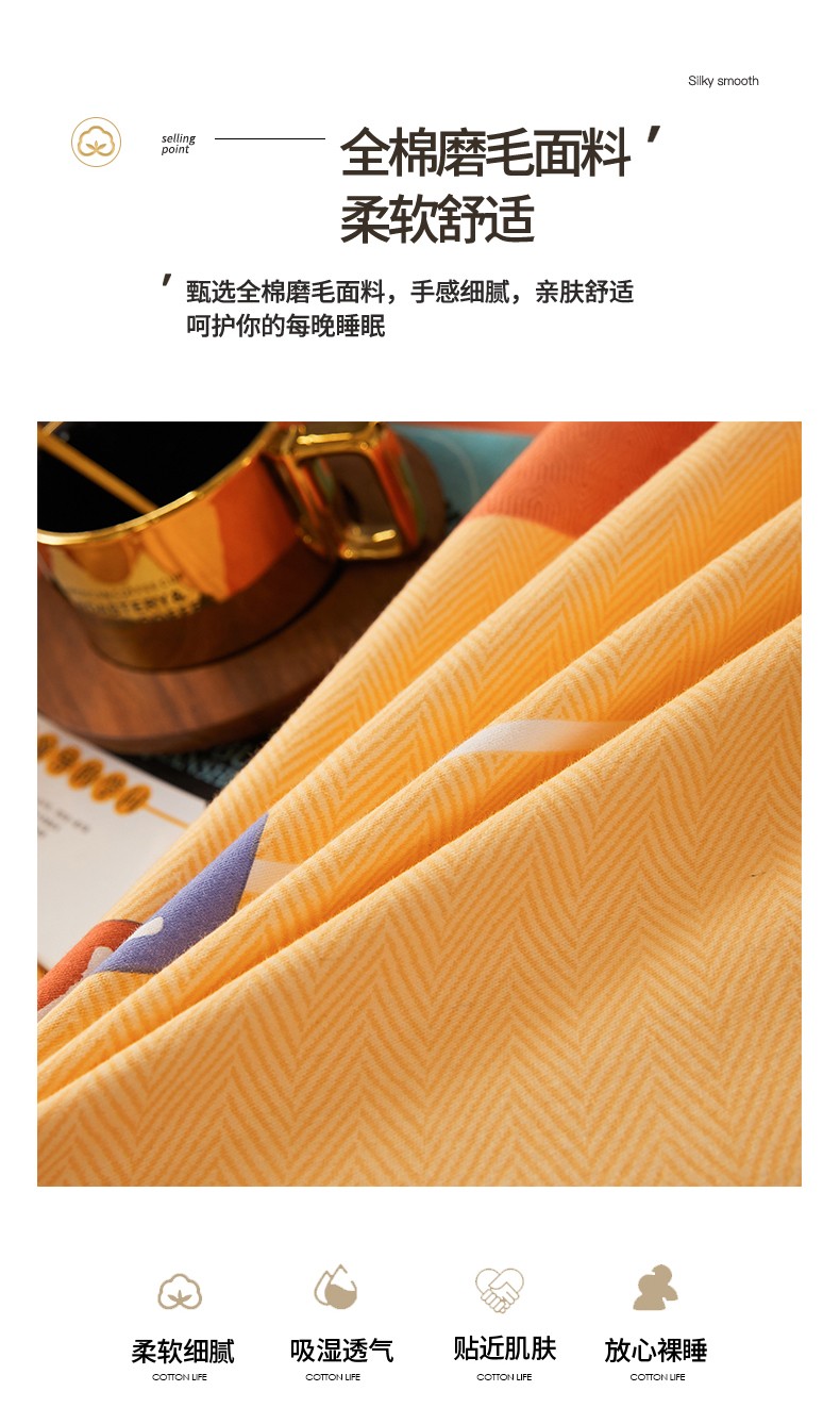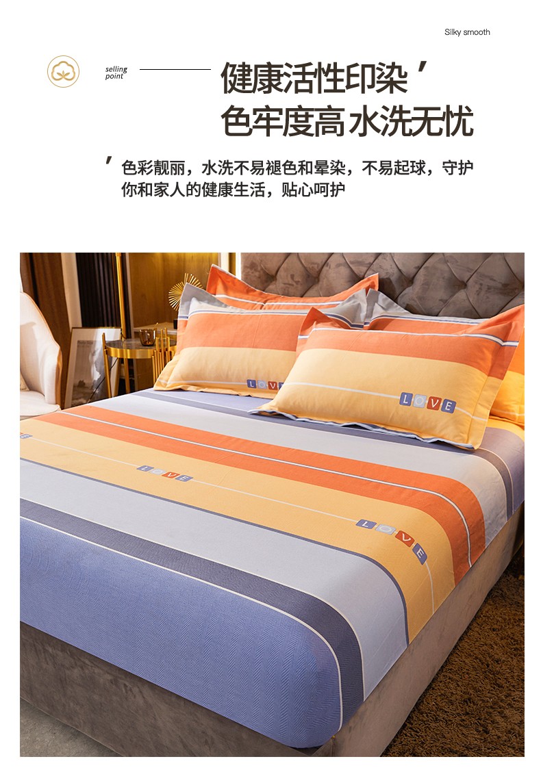 • 91家纺网 家纺一手货源 找家纺 伊而梦 2023新款全棉磨毛印花四件套系列单品床笠 爱的初心-橘