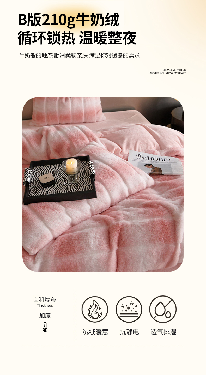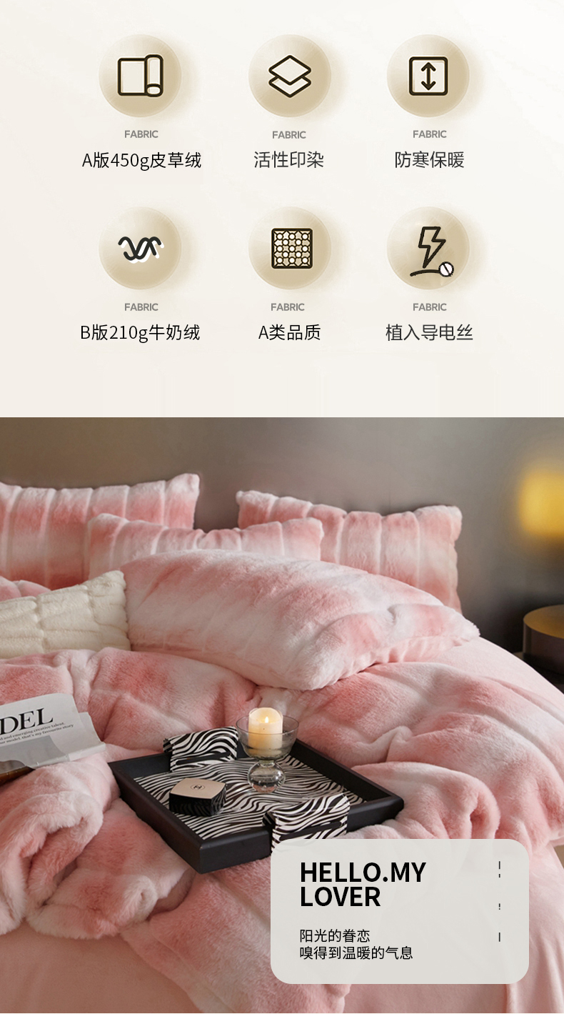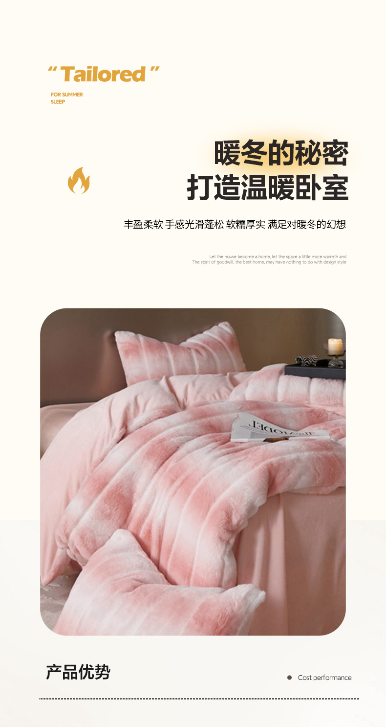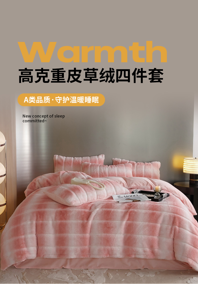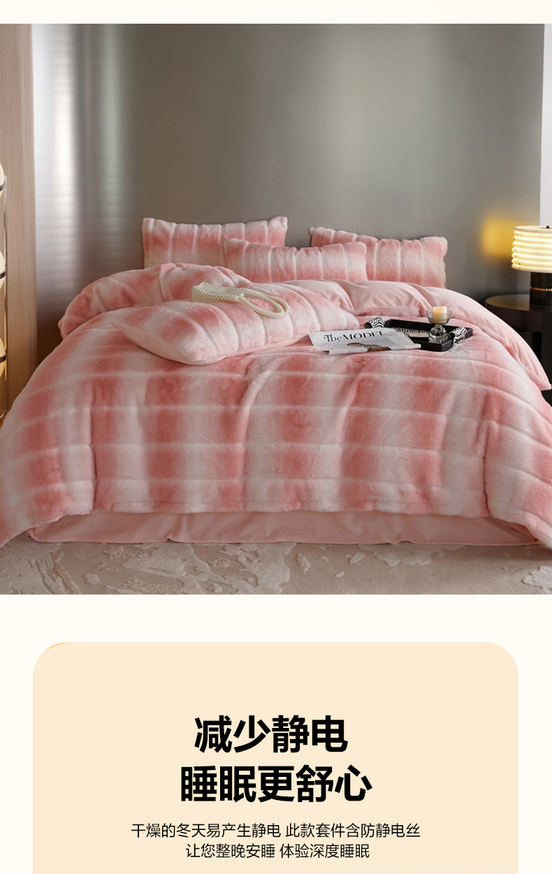 金奇达家纺 2025秋冬保暖加厚绒类皮草绒四件套-【赛琳娜】系列 赛琳娜-气质粉
