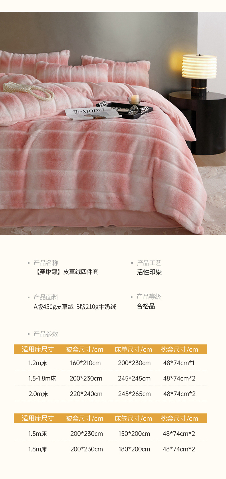 商品名称:金奇达家纺 2025秋冬保暖加厚绒类皮草绒四件套-【赛琳娜】系列 赛琳娜-气质粉