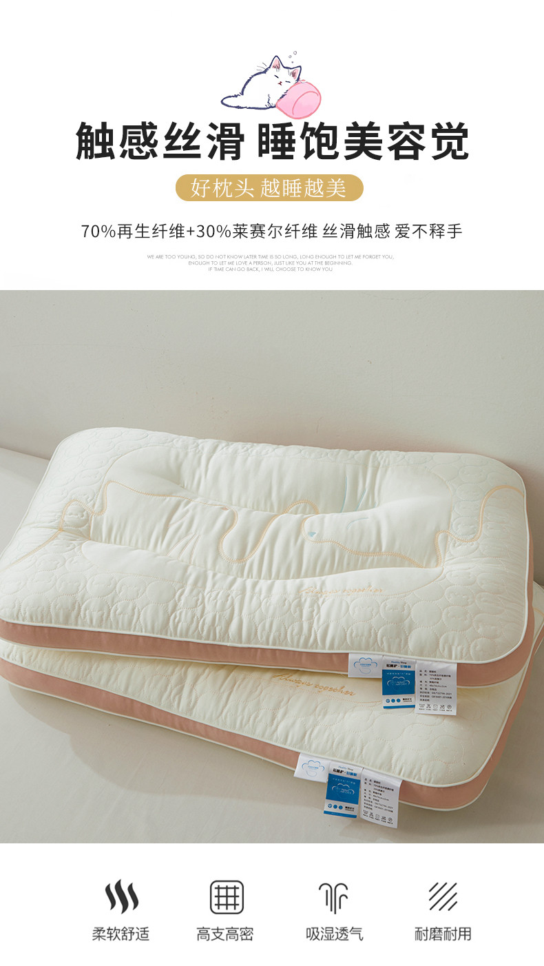 (总)云柔刺绣猫猫枕-亲肤绣花猫咪枕头直播爆款枕芯护颈枕头颈椎枕