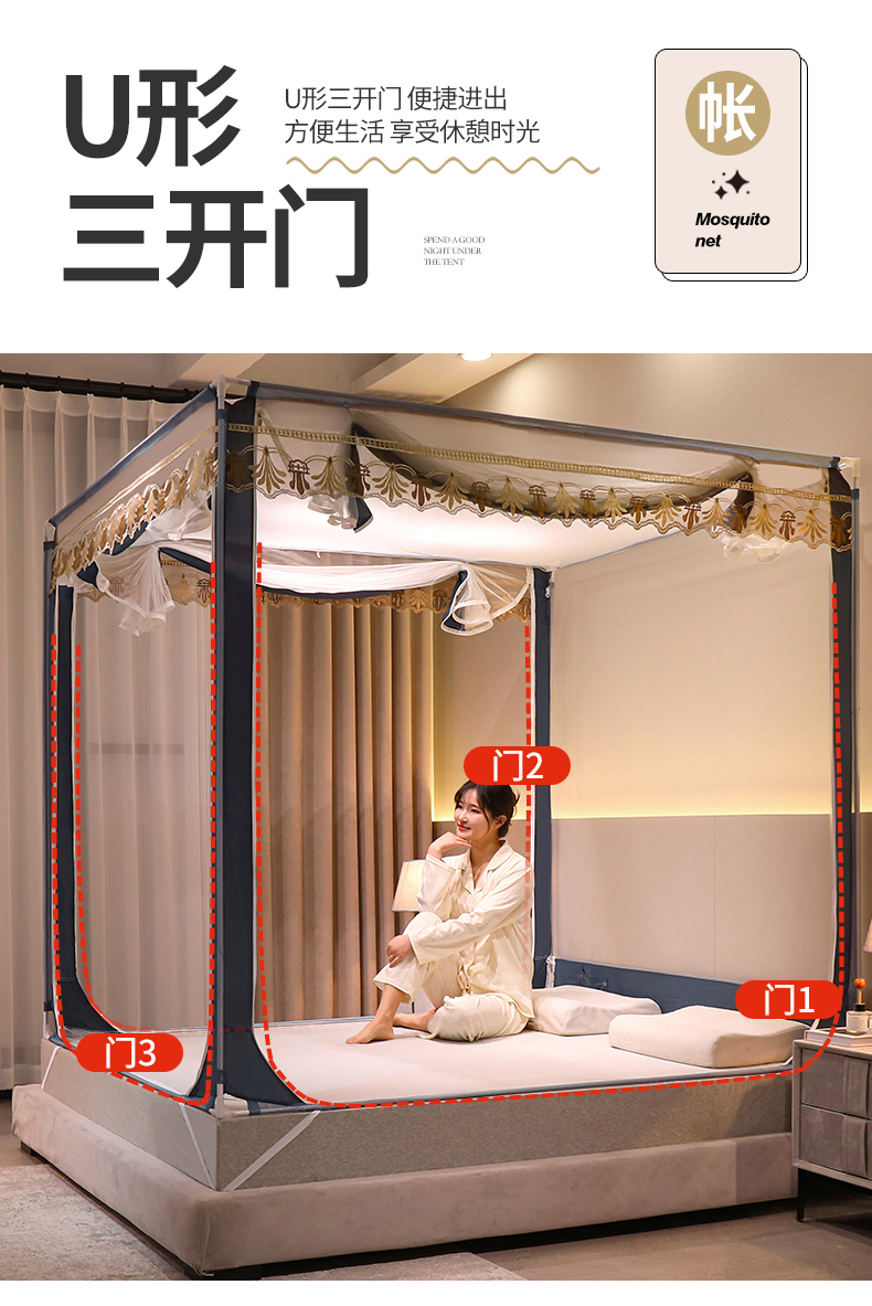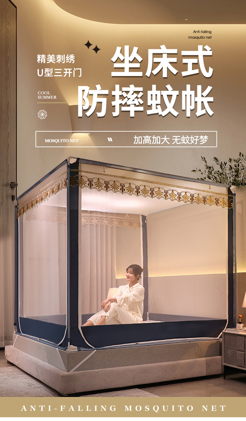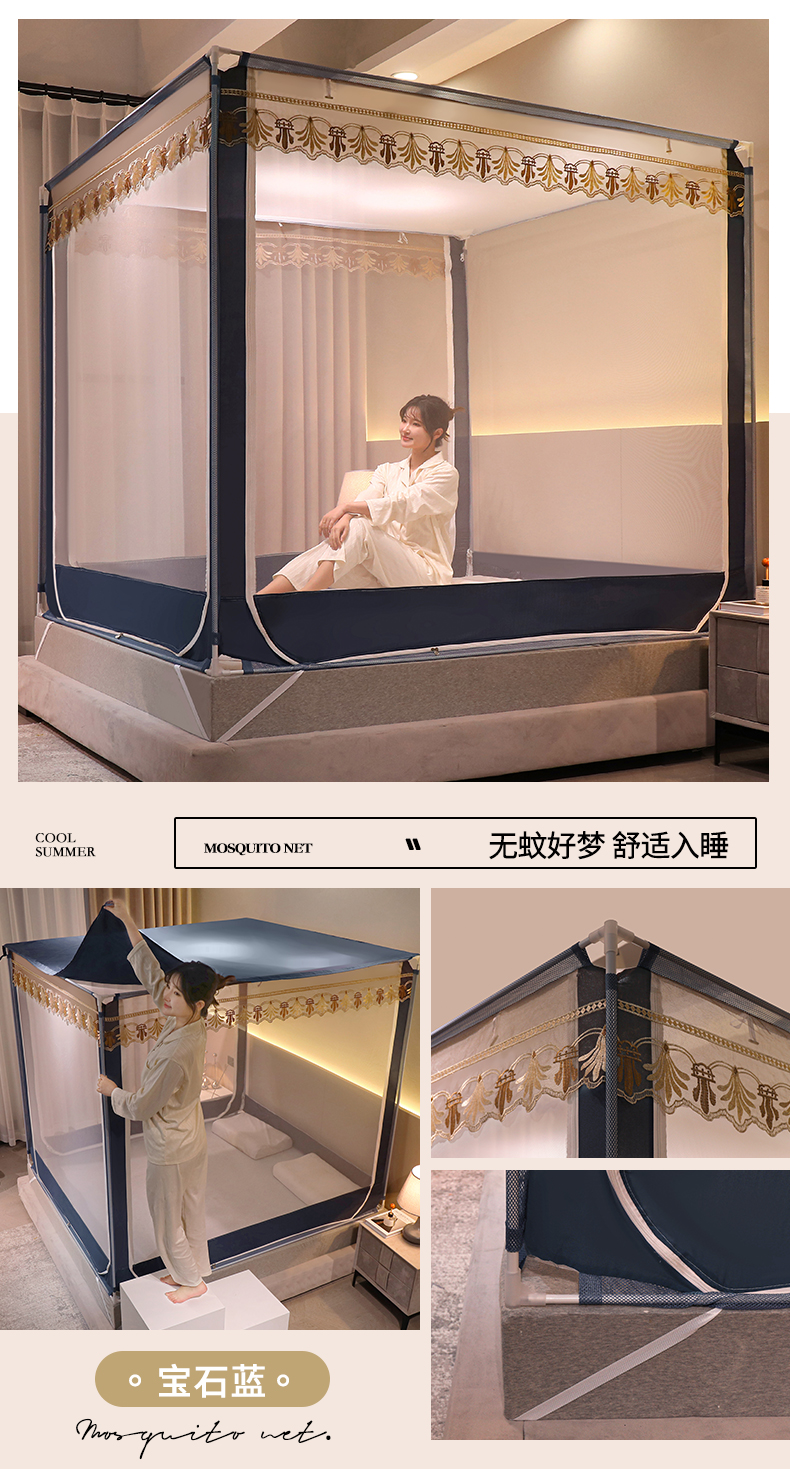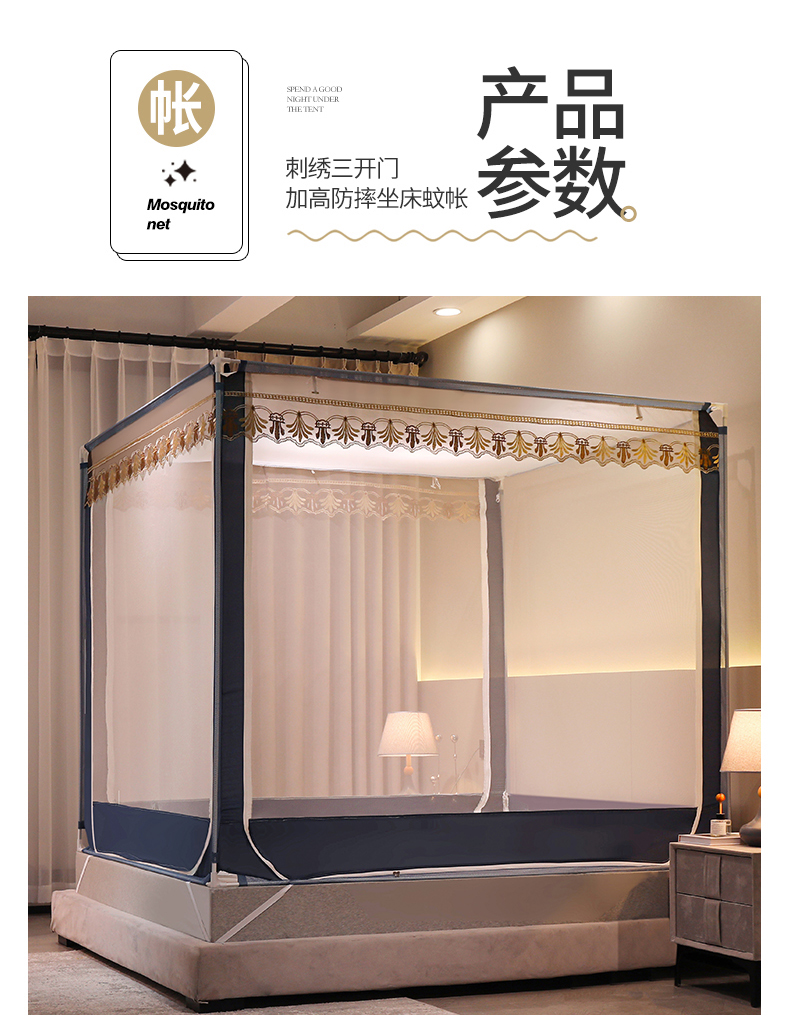 当前位置: 91家纺网 > 商品网购 > 床上用品 > 蚊帐 > 坐床式蚊帐 > 伊而梦蚊帐 2023新款U型刺绣三开门加高防摔坐床蚊帐 宝石蓝