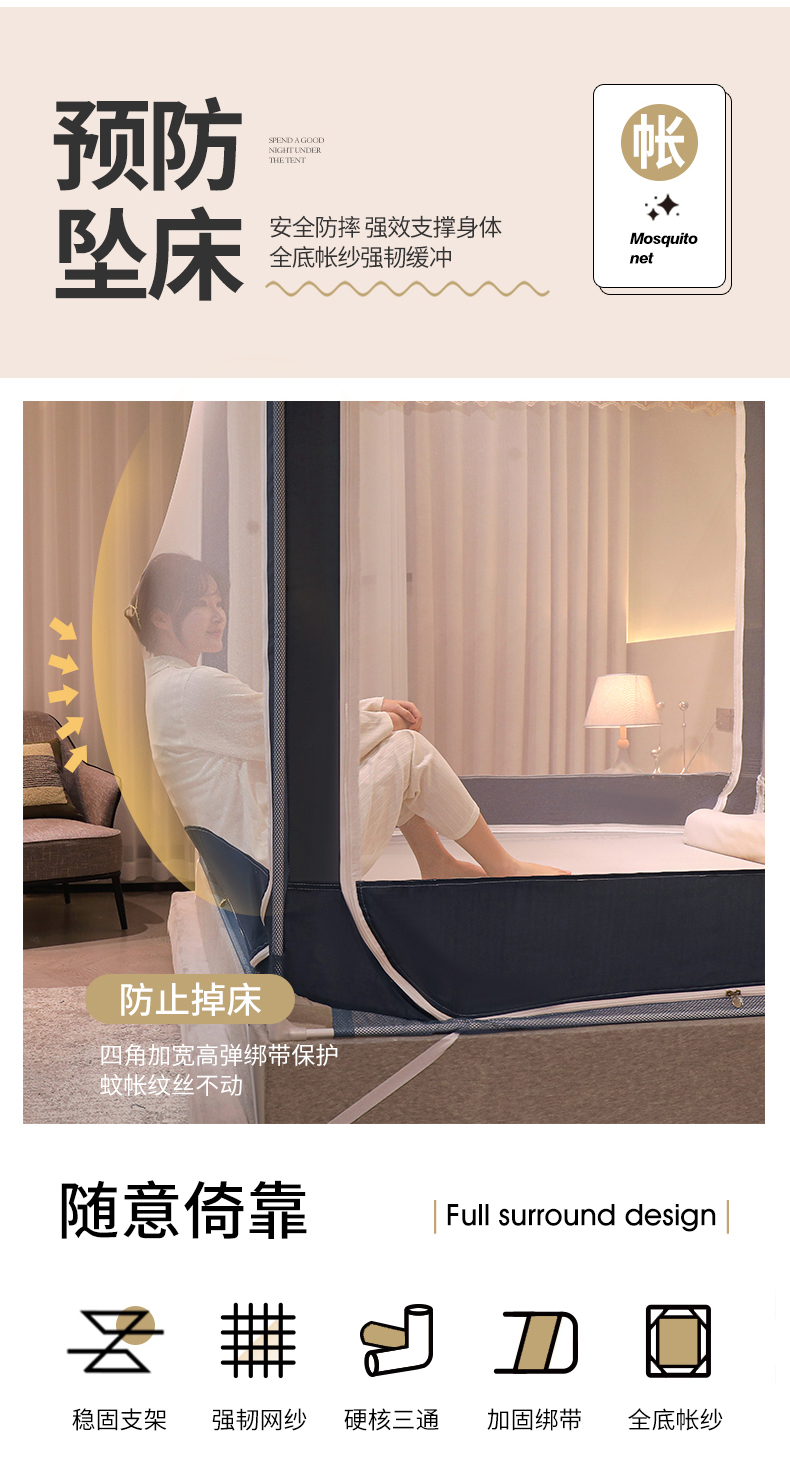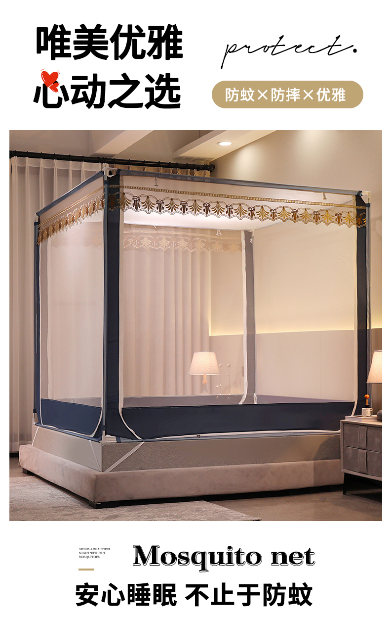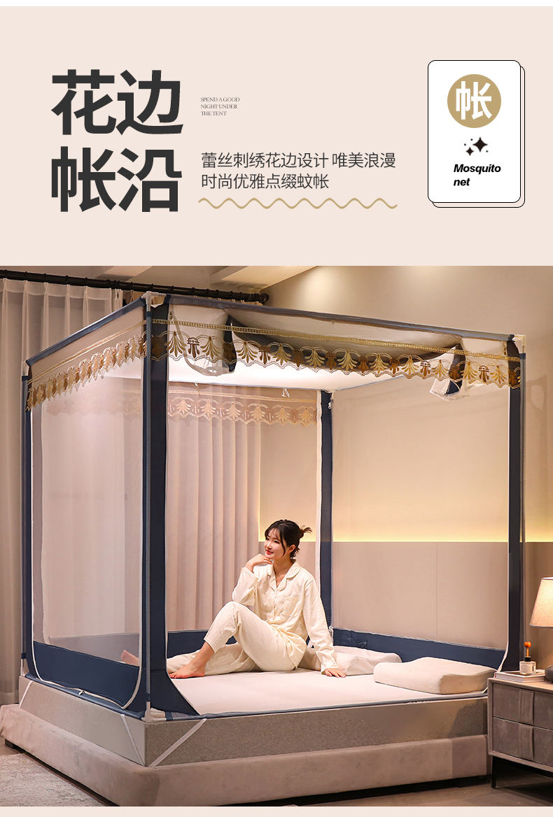 当前位置: 91家纺网 > 商品网购 > 床上用品 > 蚊帐 > 坐床式蚊帐 > 伊而梦蚊帐 2023新款U型刺绣三开门加高防摔坐床蚊帐 宝石蓝