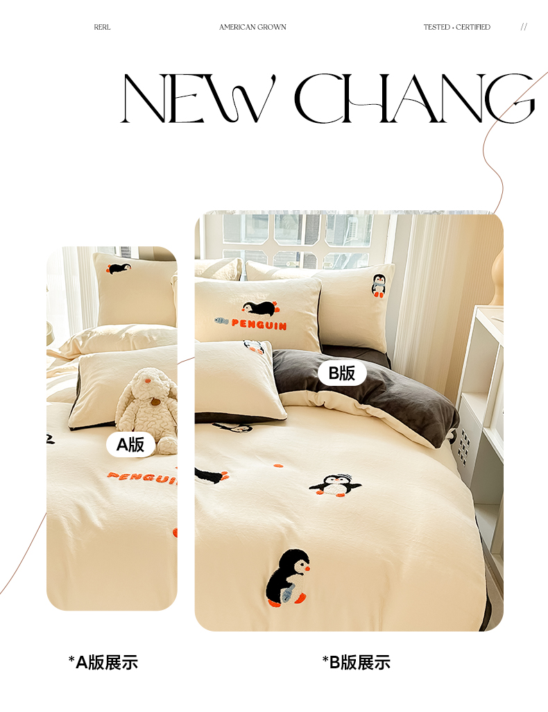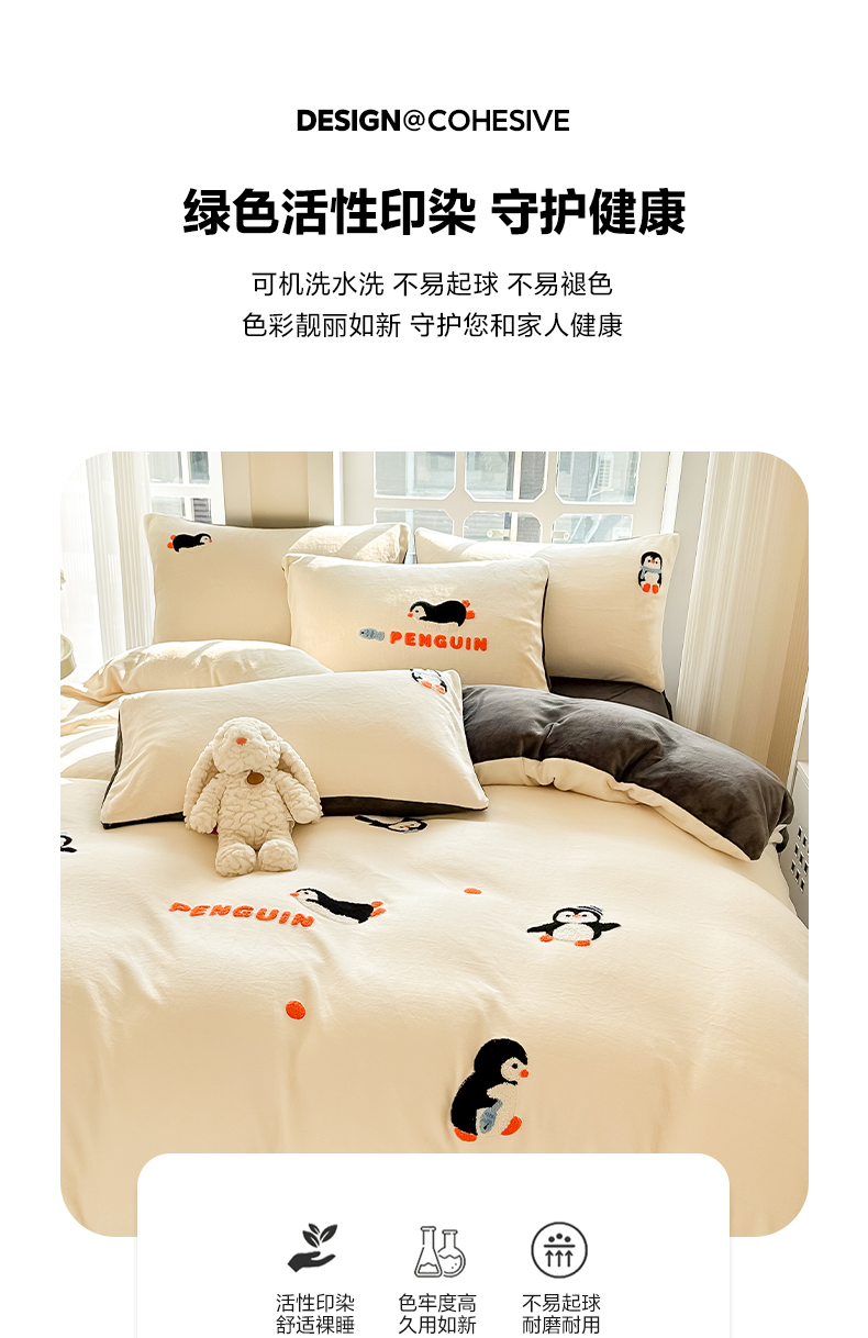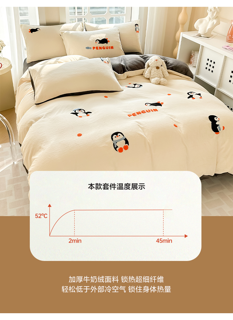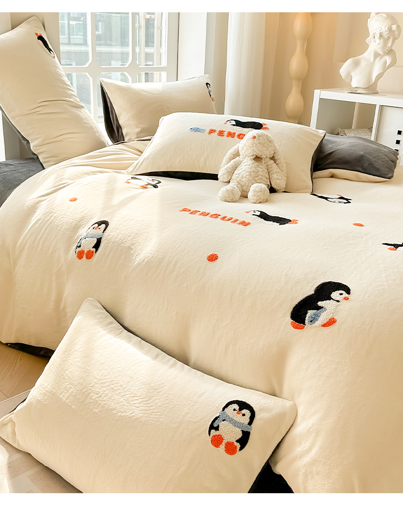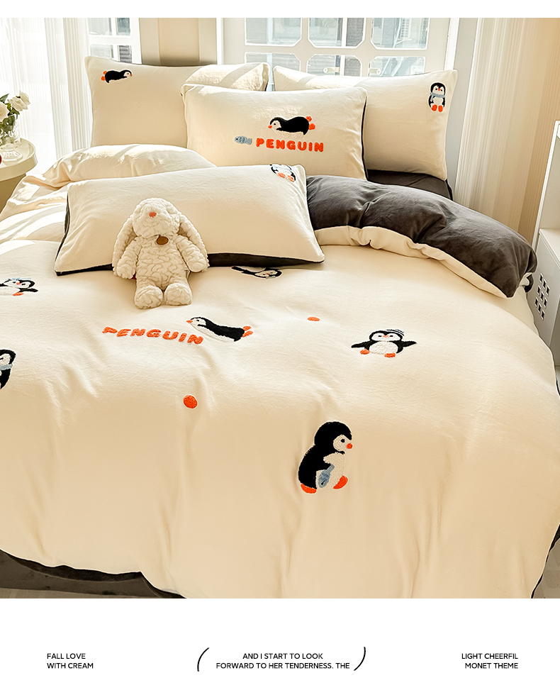 当前位置: 91家纺网 > 商品网购 > 床品套件 > 四件套 > 牛奶绒四件套 > 眠屿家纺 2023新款牛奶绒毛巾绣四件套(温馨版) 企鹅抓鱼