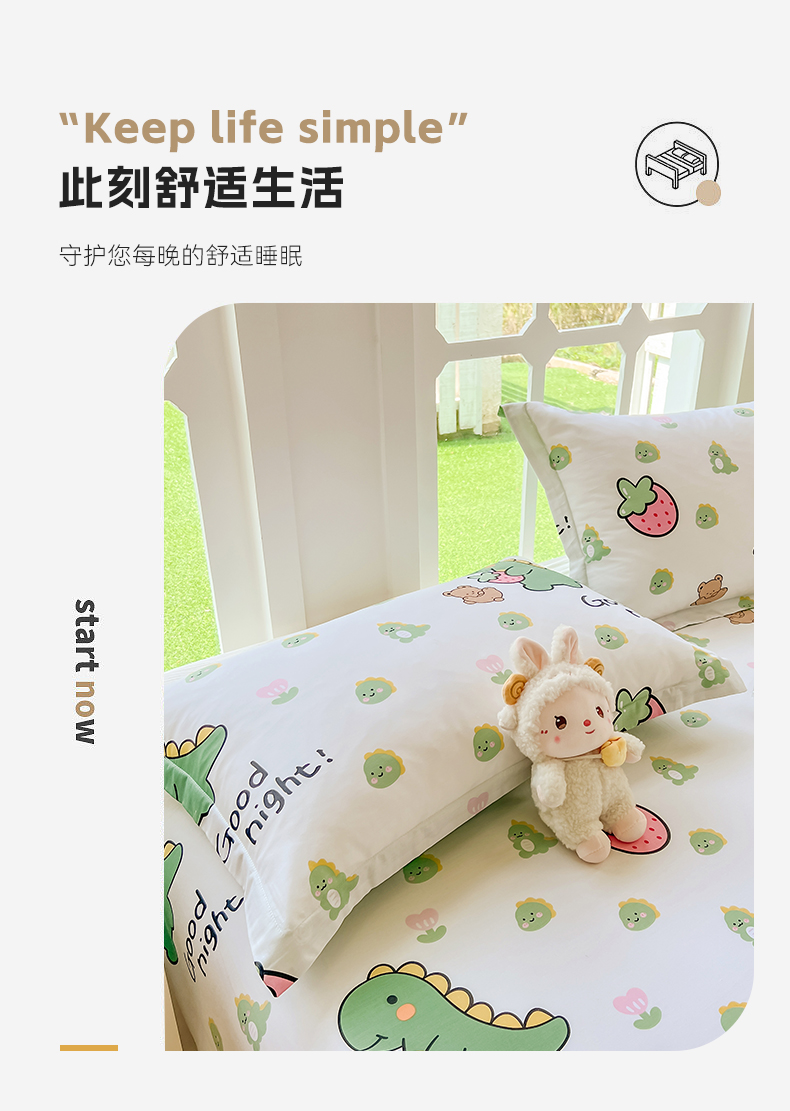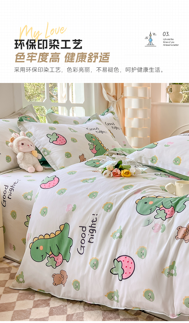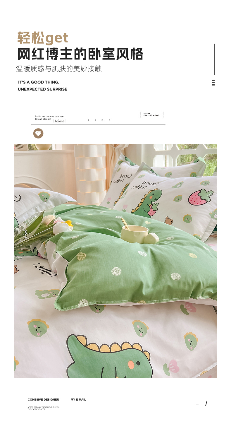 当前位置: 91家纺网 > 商品网购 > 床品套件 > 四件套 > 全棉普通四件套 > 绵庭家纺 2023新款12868系列全棉小清新印花四件套 恐龙贝贝