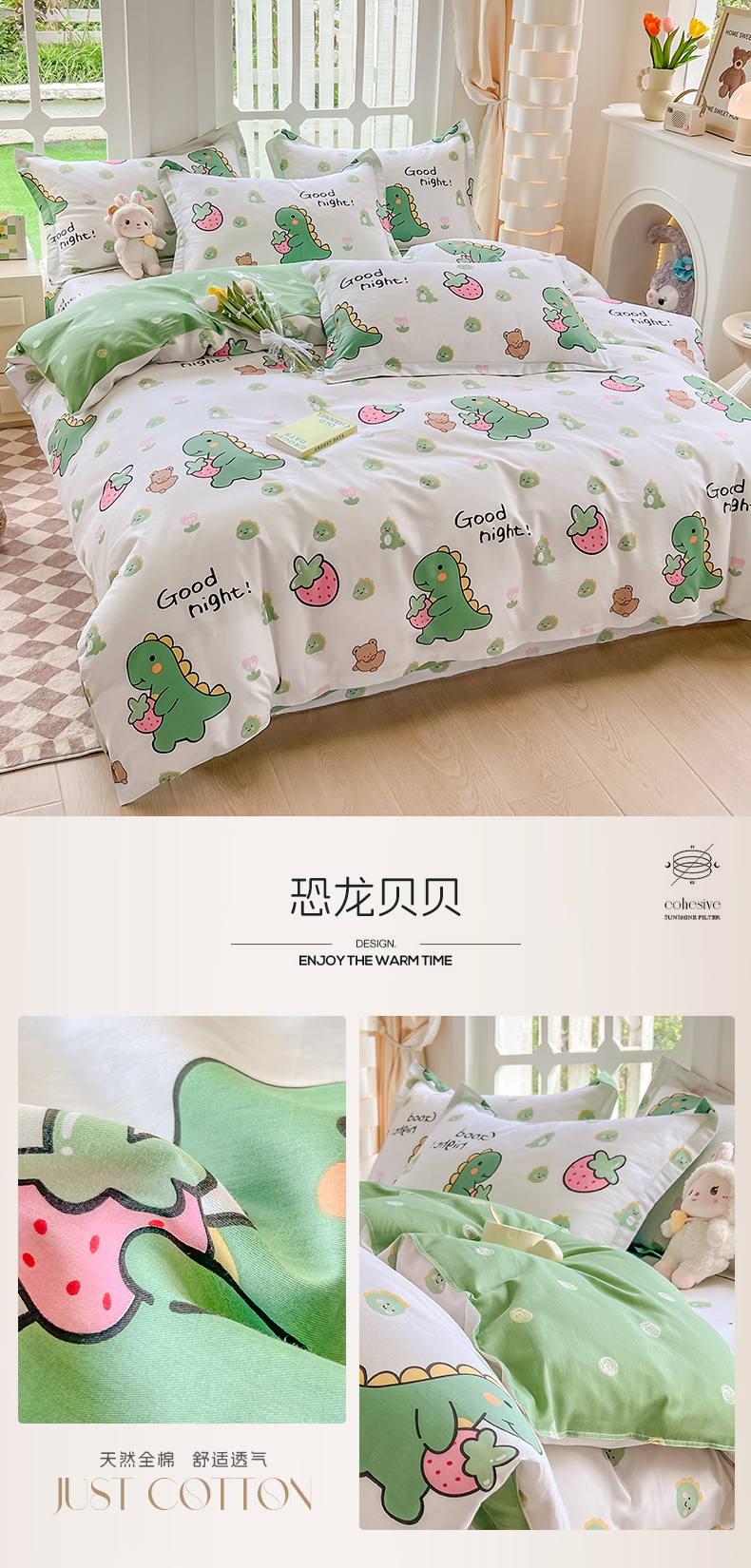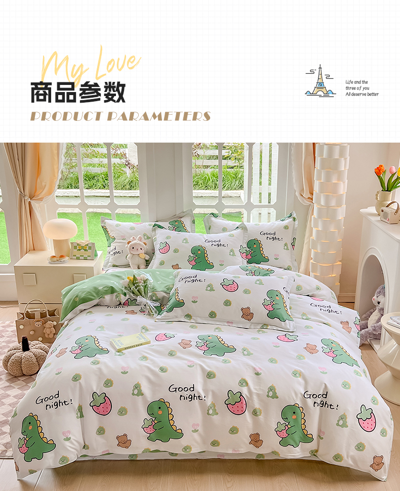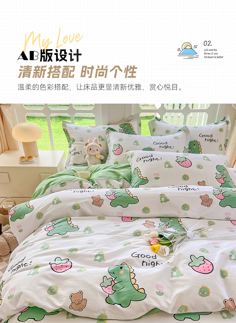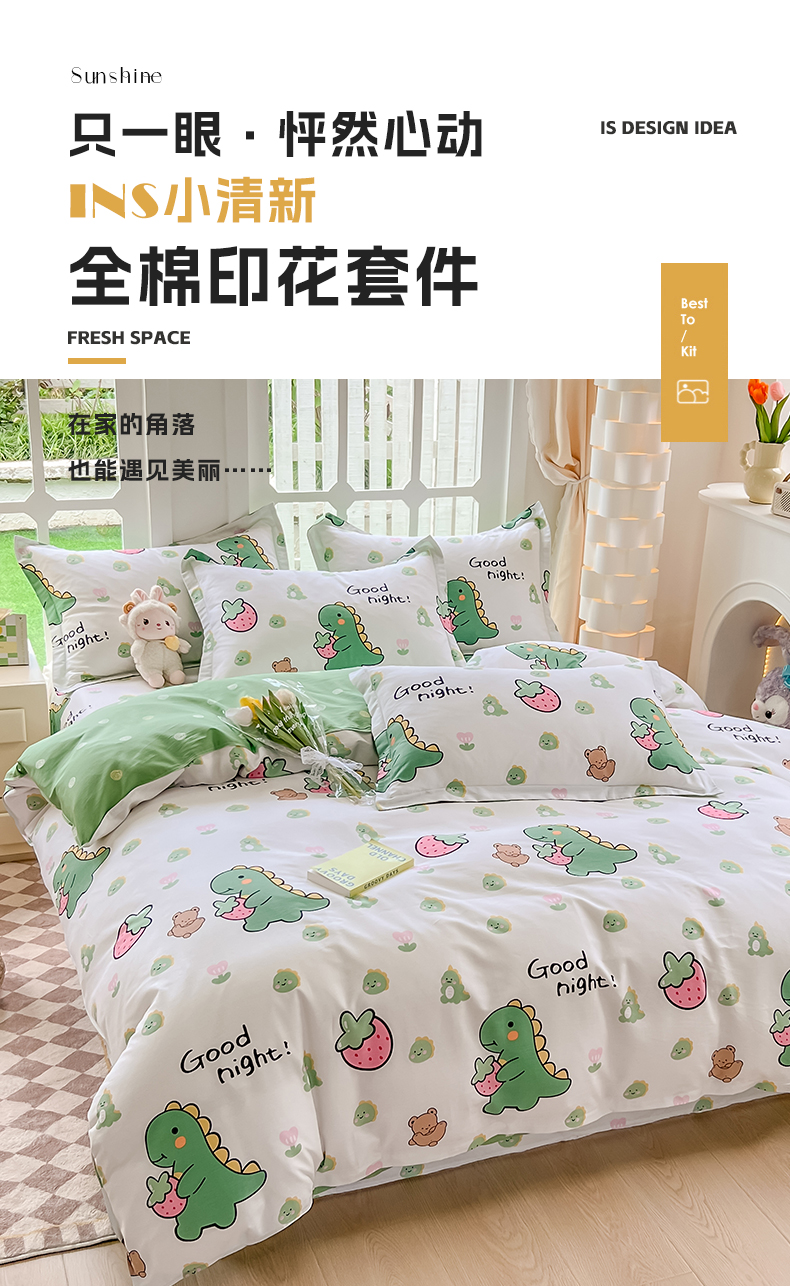 当前位置: 91家纺网 > 商品网购 > 床品套件 > 四件套 > 全棉普通四件套 > 绵庭家纺 2023新款12868系列全棉小清新印花四件套 恐龙贝贝