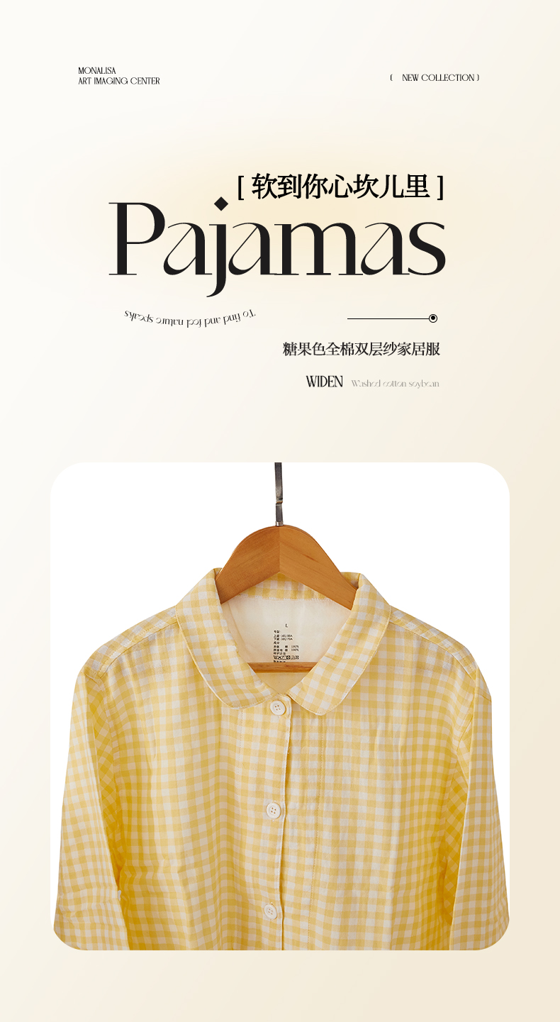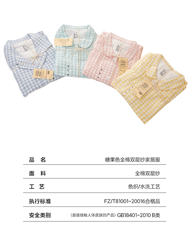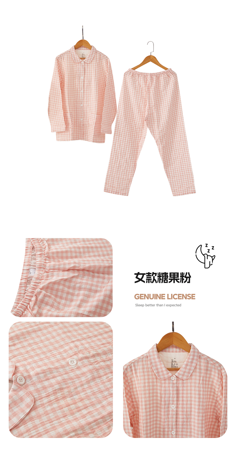 商品名称:玖弘家居 2023新款糖果色全棉双层纱长袖家居服【控价 抖音69.9 视频号 69.9 小红书 89】 女款糖果粉