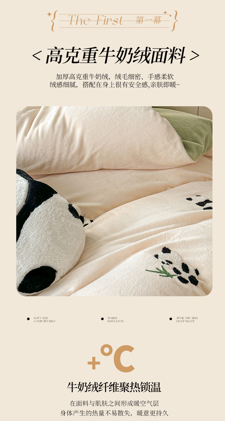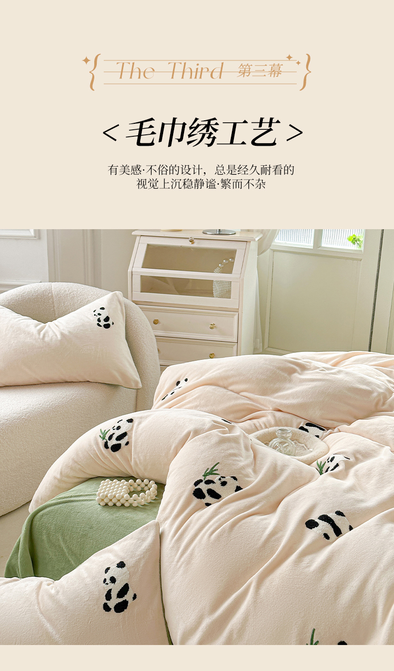 商品名称:木堇家居 2023秋冬新款牛奶绒毛巾绣四件套 小怪兽