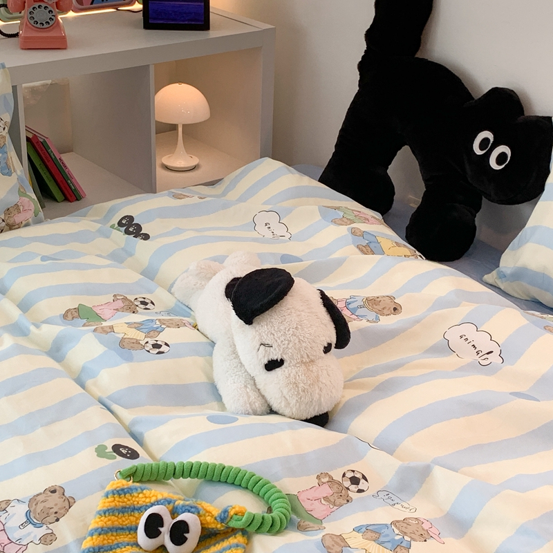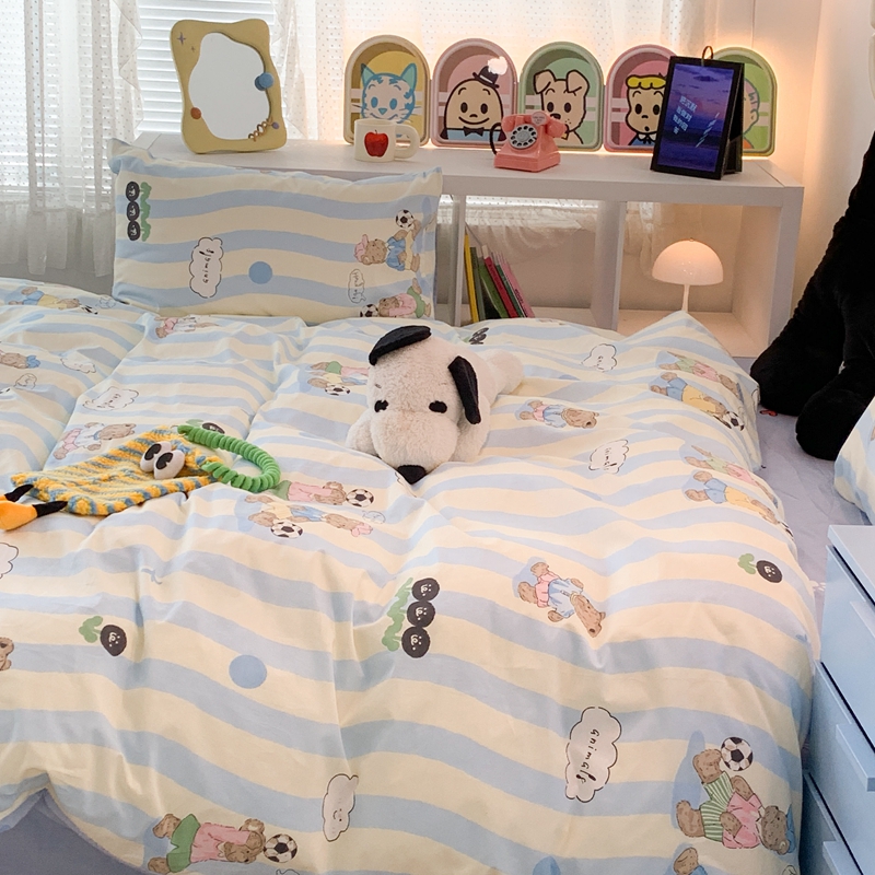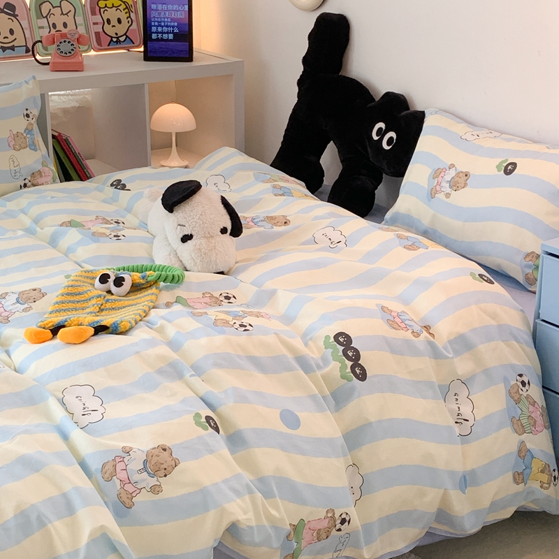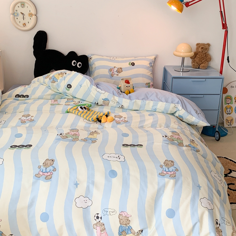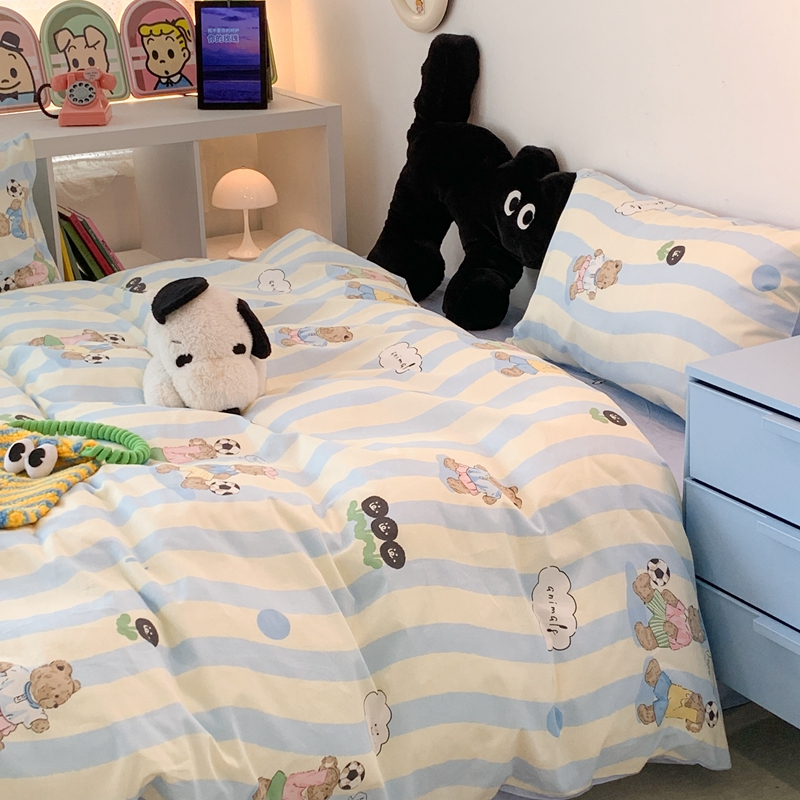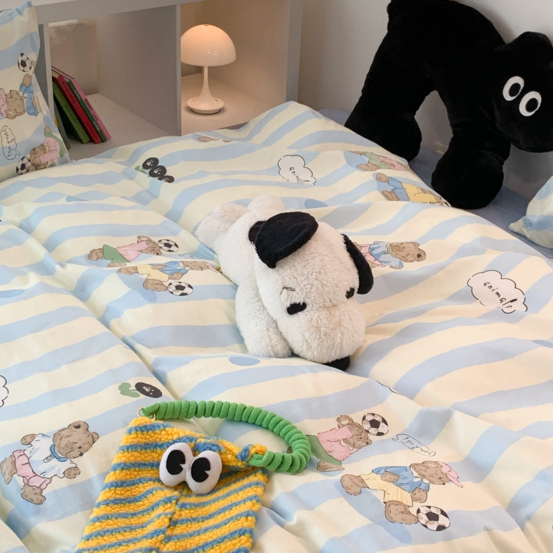 昔可家纺 2023新款全棉四件套-萌趣卡通 蓝波纹足球熊