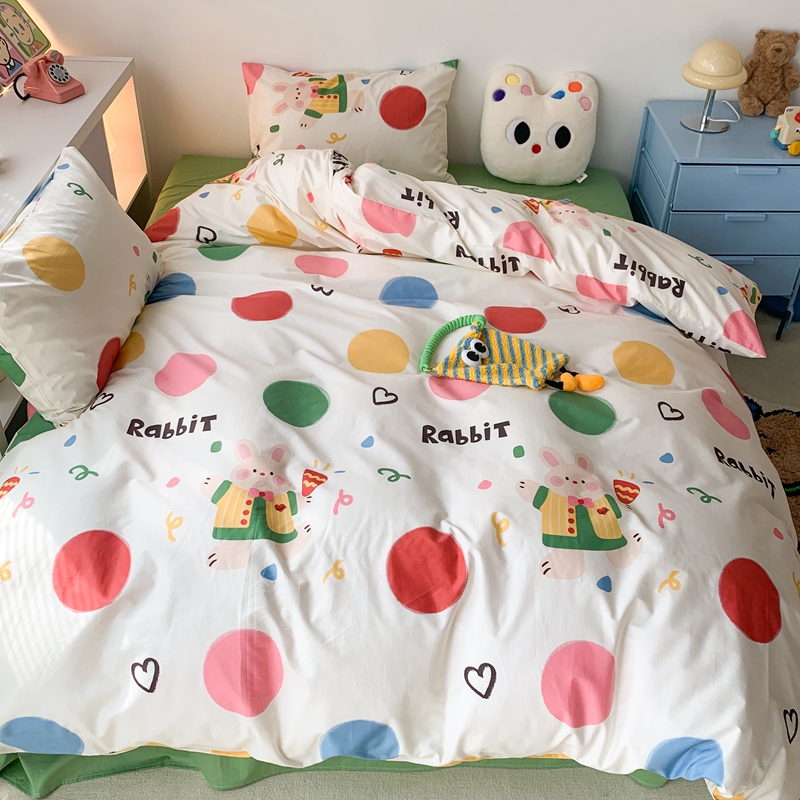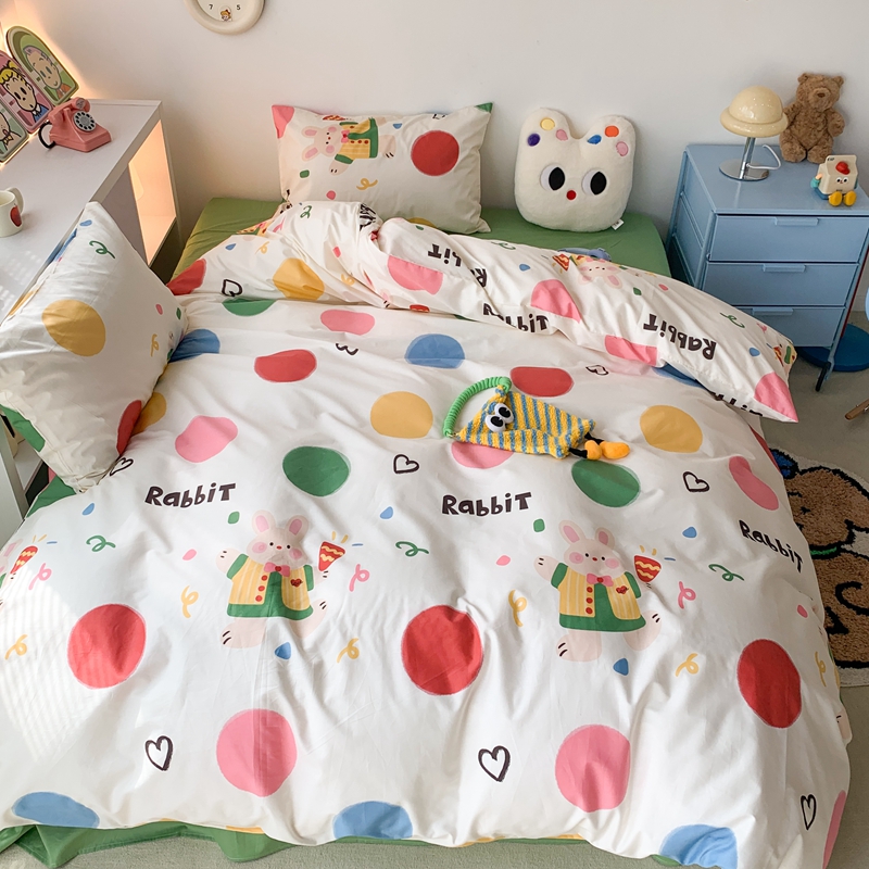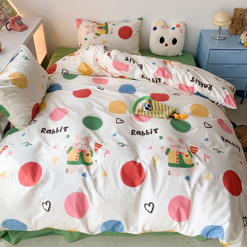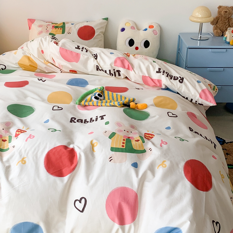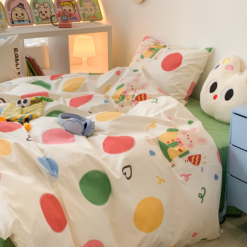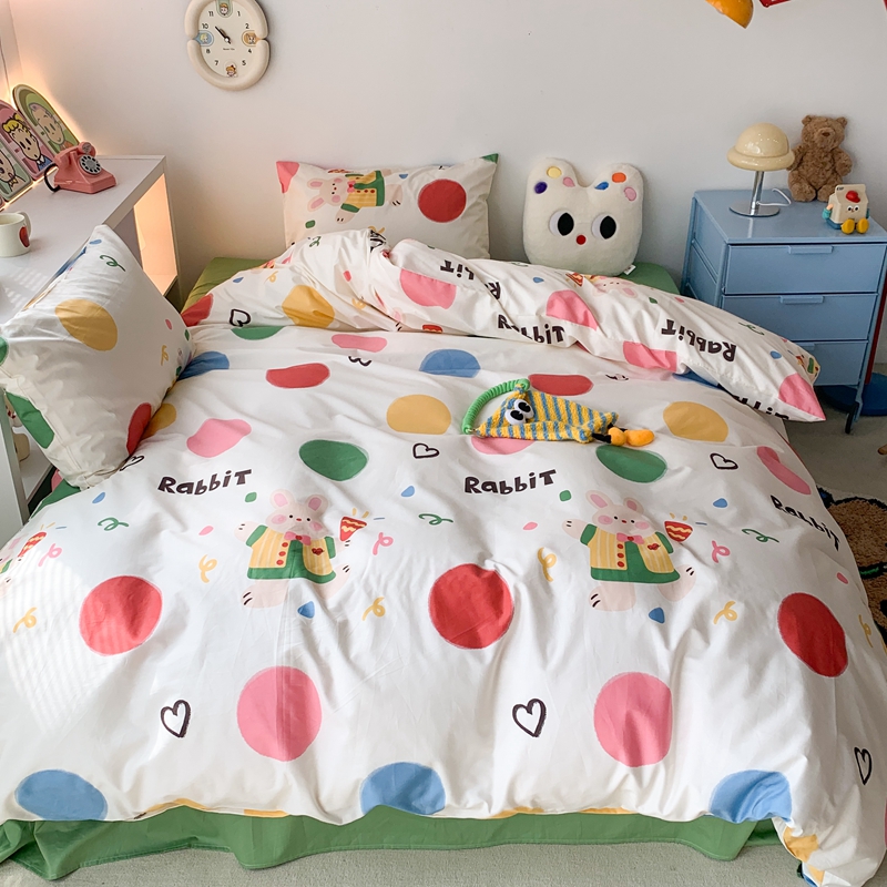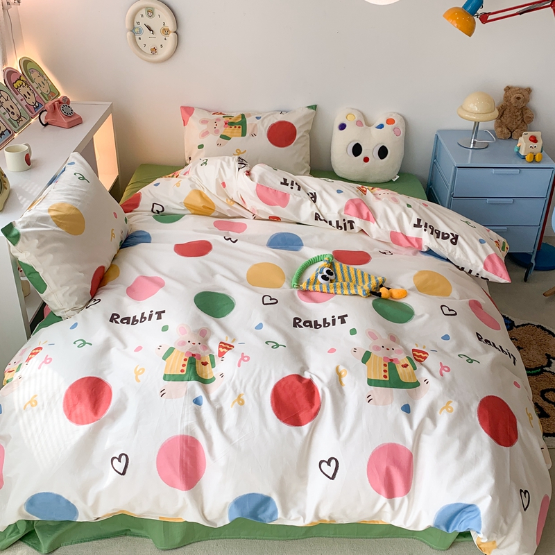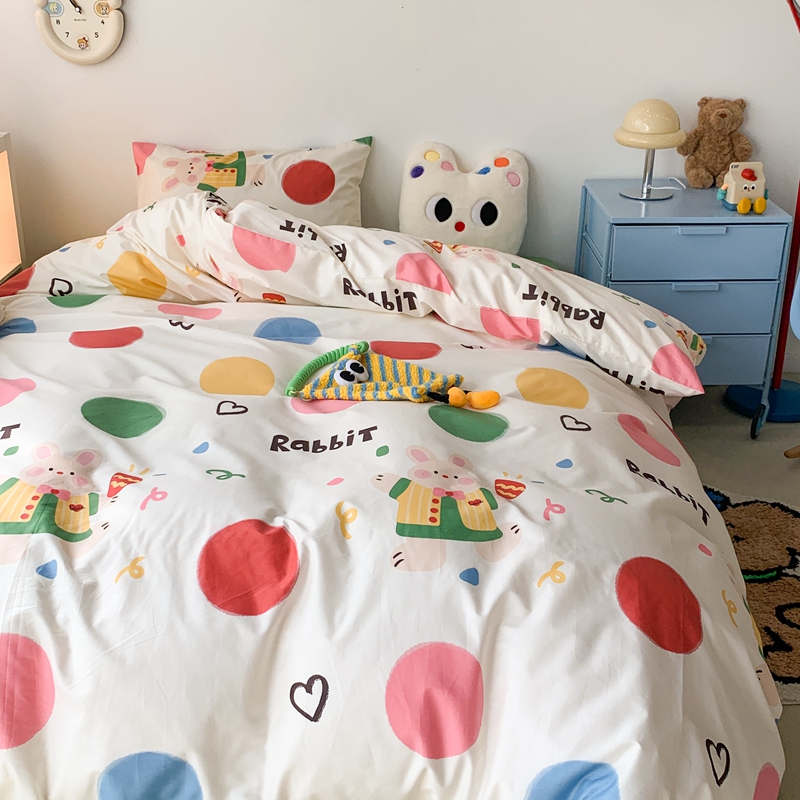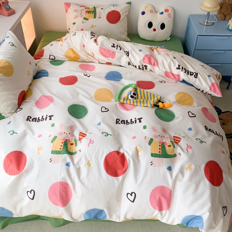 商品名称:昔可家纺 2023新款全棉四件套-潮趣系列 彩色波点兔