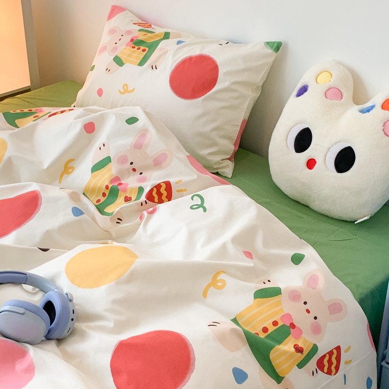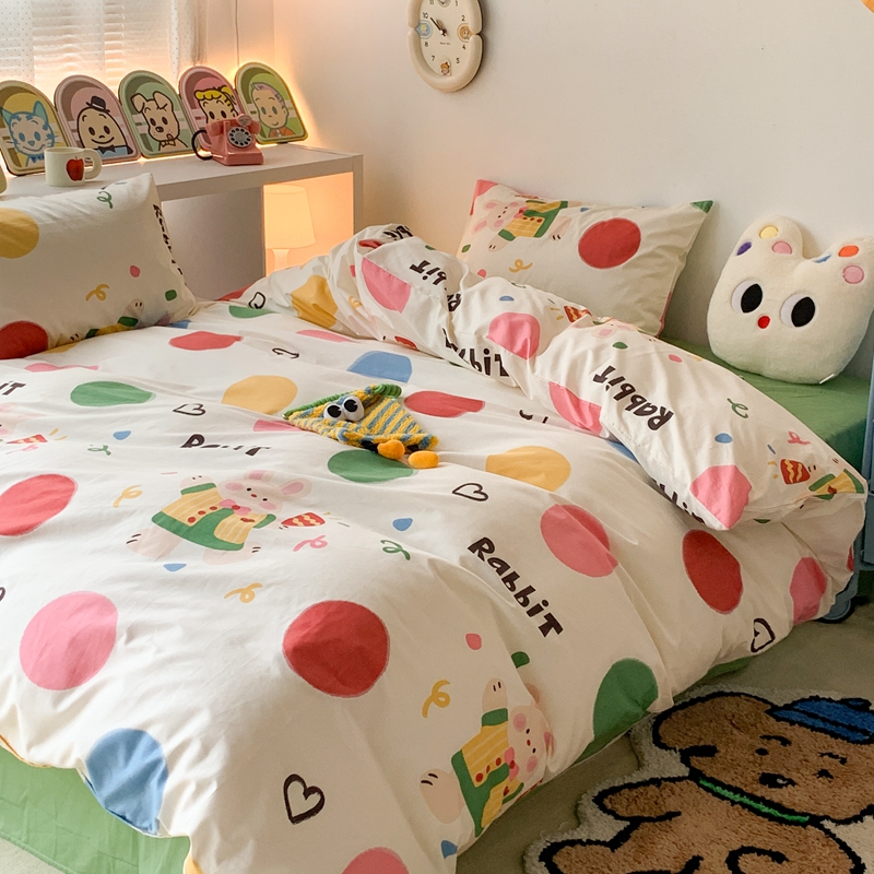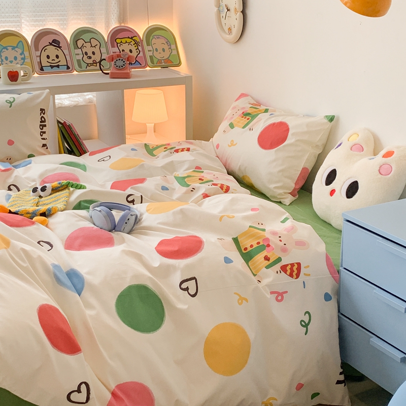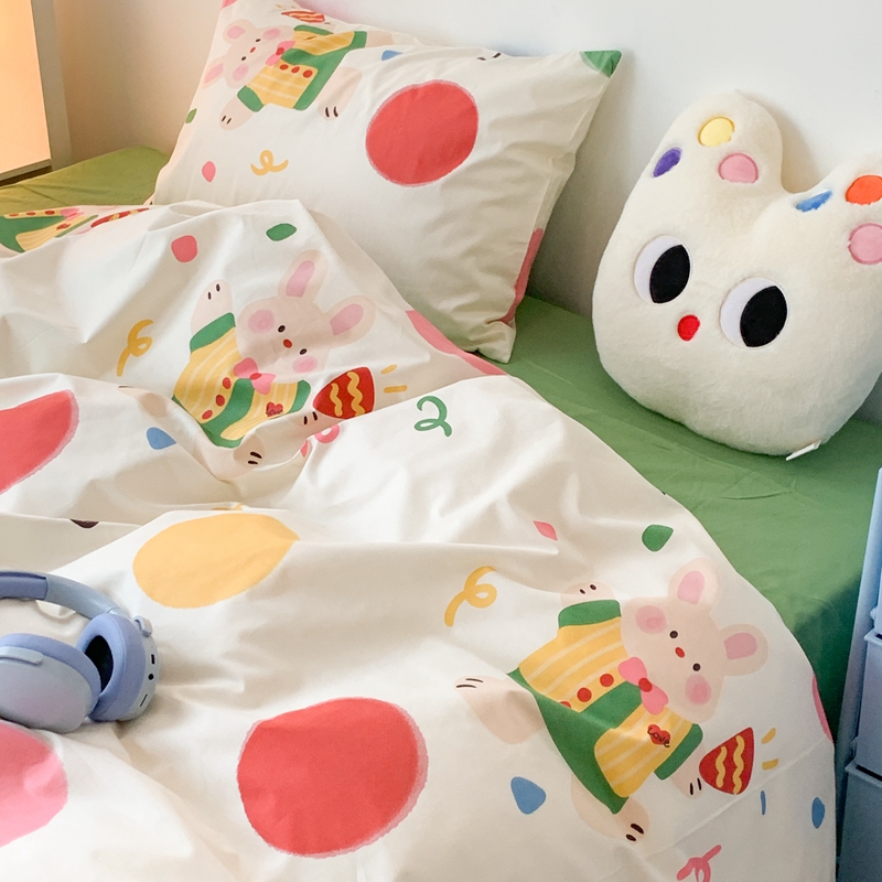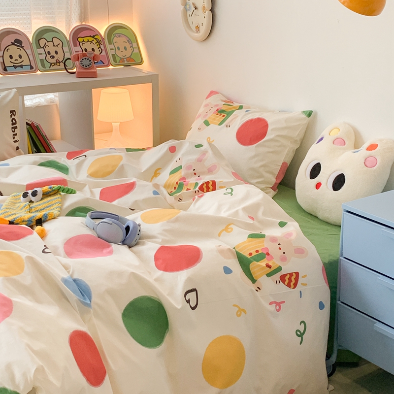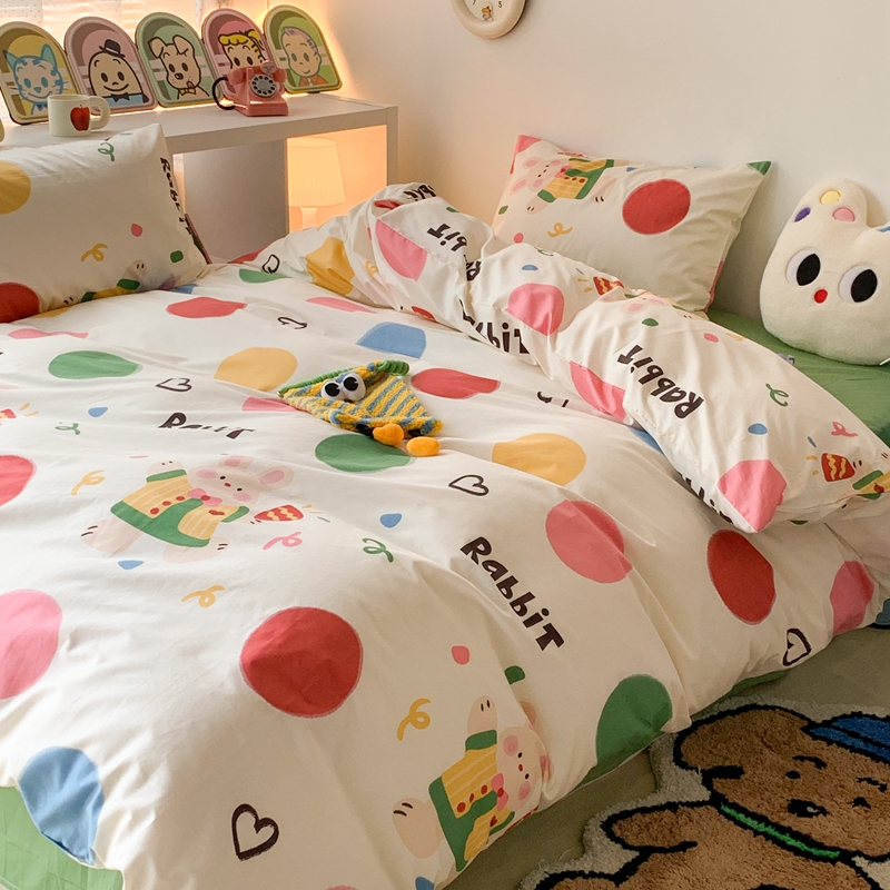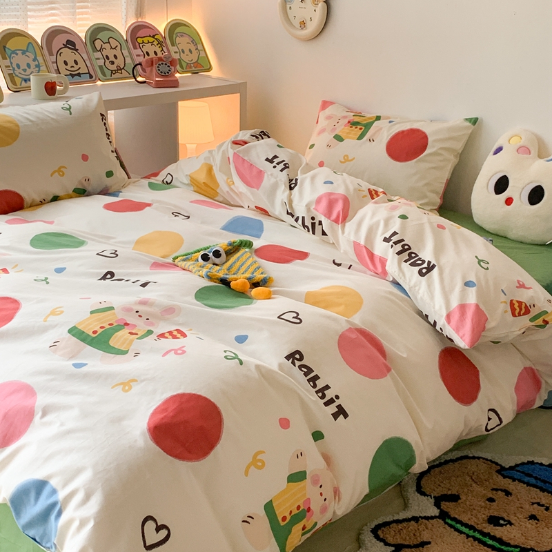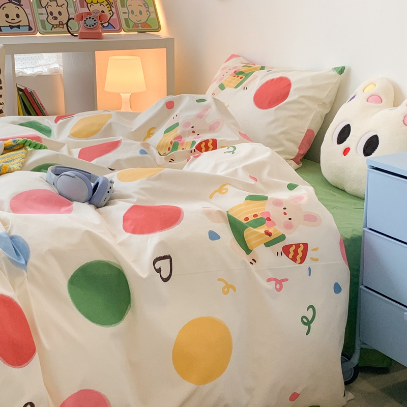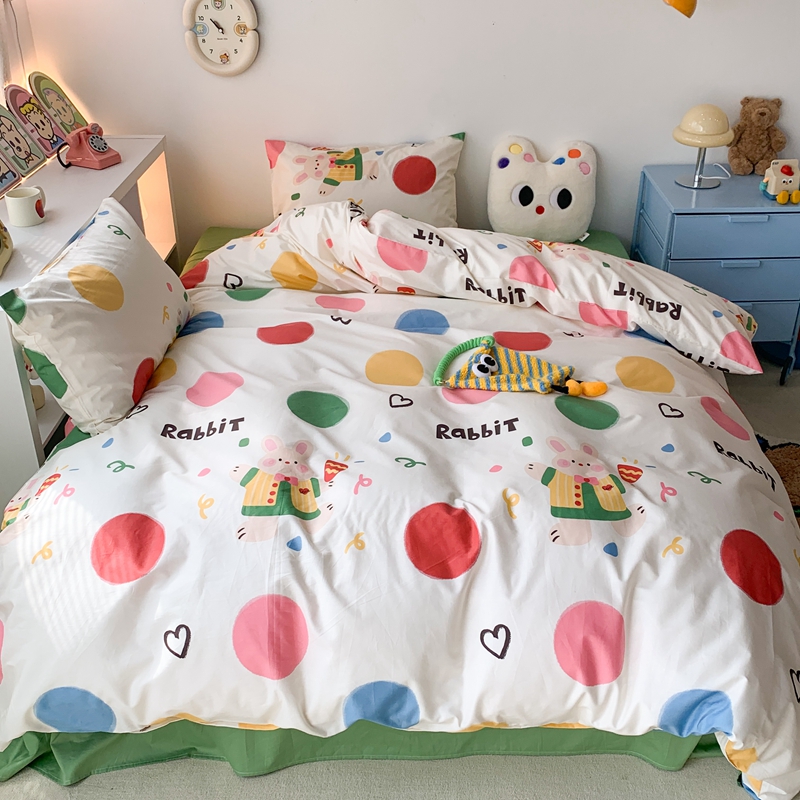 商品名称:昔可家纺 2023新款全棉四件套-潮趣系列 彩色波点兔