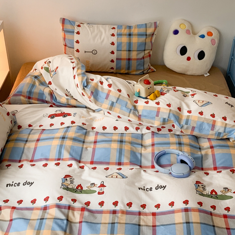 昔可家纺 2023新款全棉四件套-ins卡通系列 露营狗狗