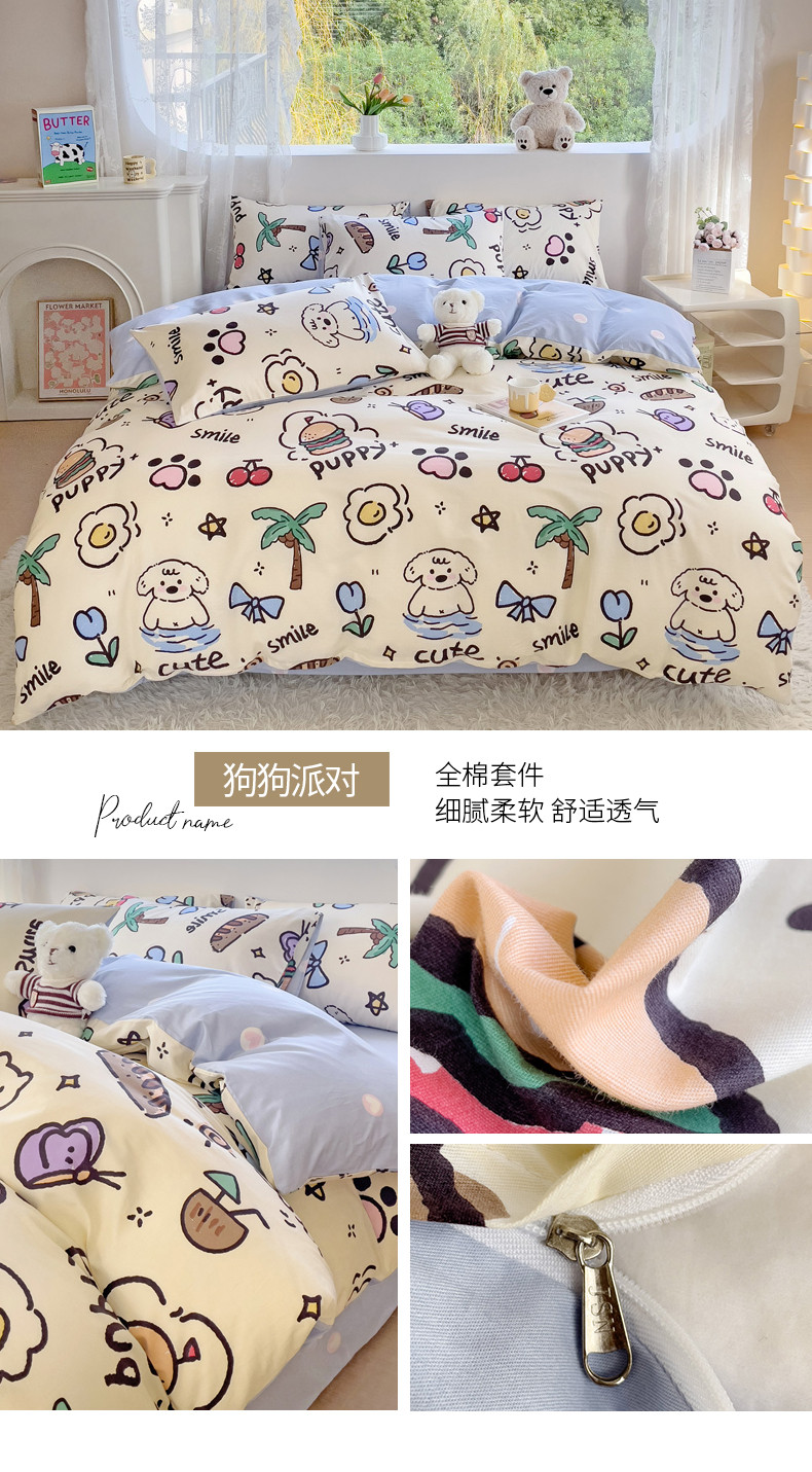 当前位置: 91家纺网 > 商品网购 > 床品套件 > 四件套 > 全棉普通四件套 > 金丝鸟 2023新款全棉可爱卡通印花小清新四件套-第二批 狗狗派对