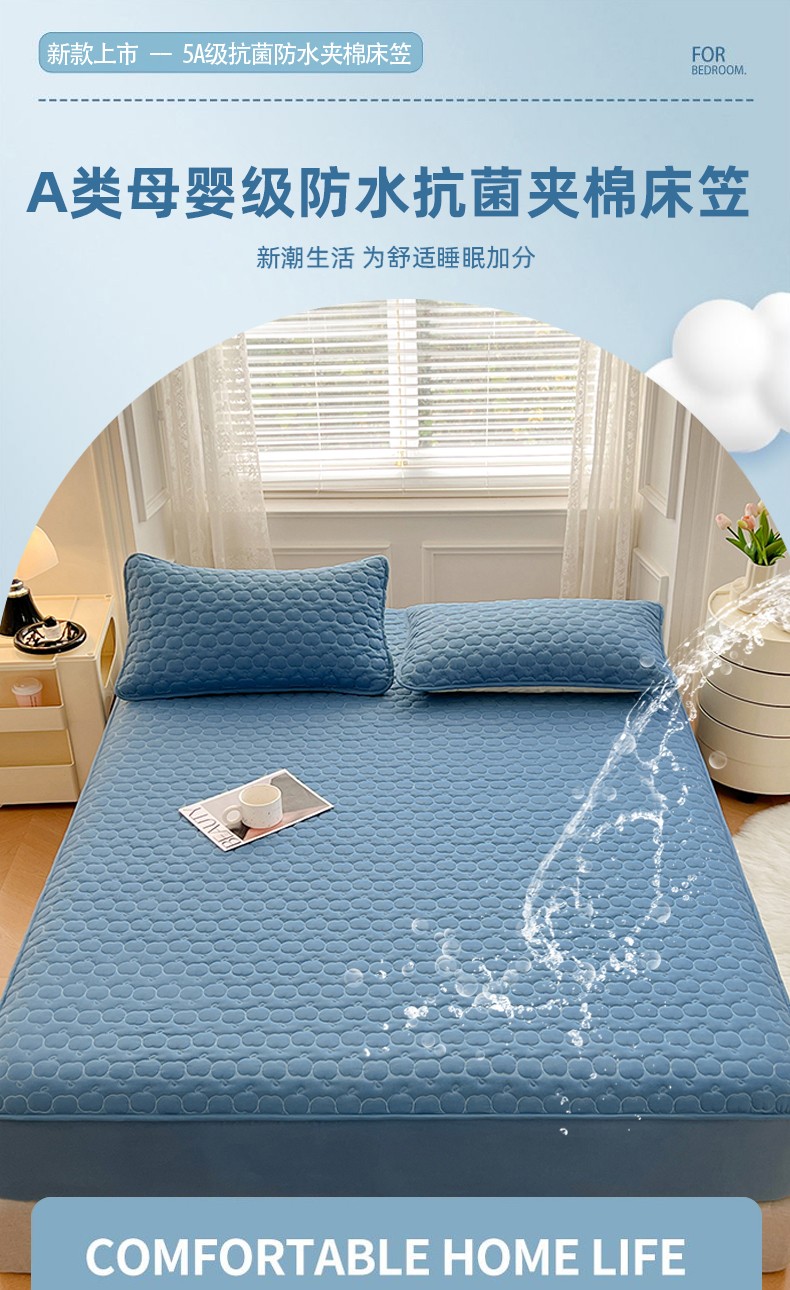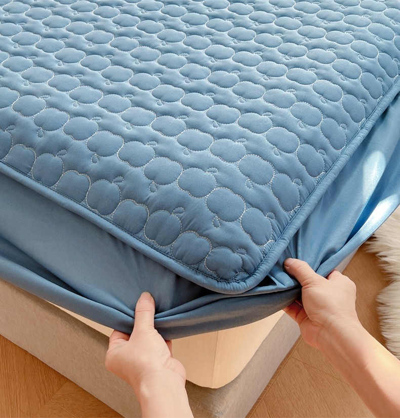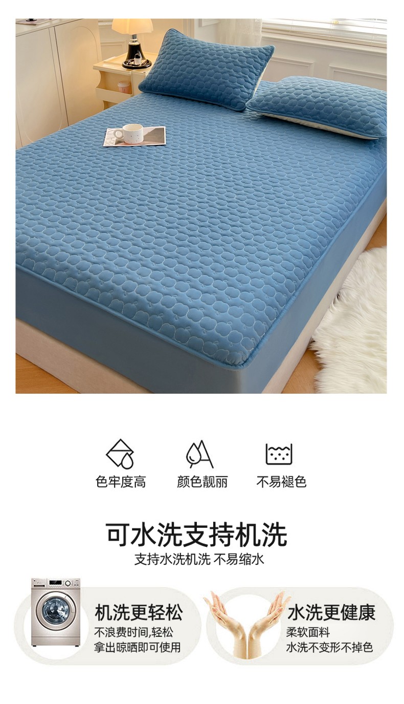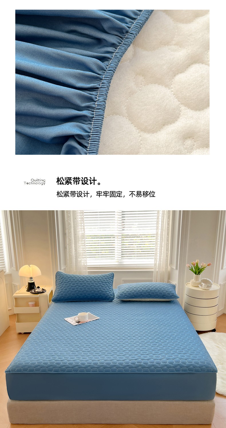• 91家纺网 家纺一手货源 找家纺 梦舒羽2025新款抗菌隔尿防水四季款夹棉加厚床笠床垫保护罩床垫套 苹果款-深蓝