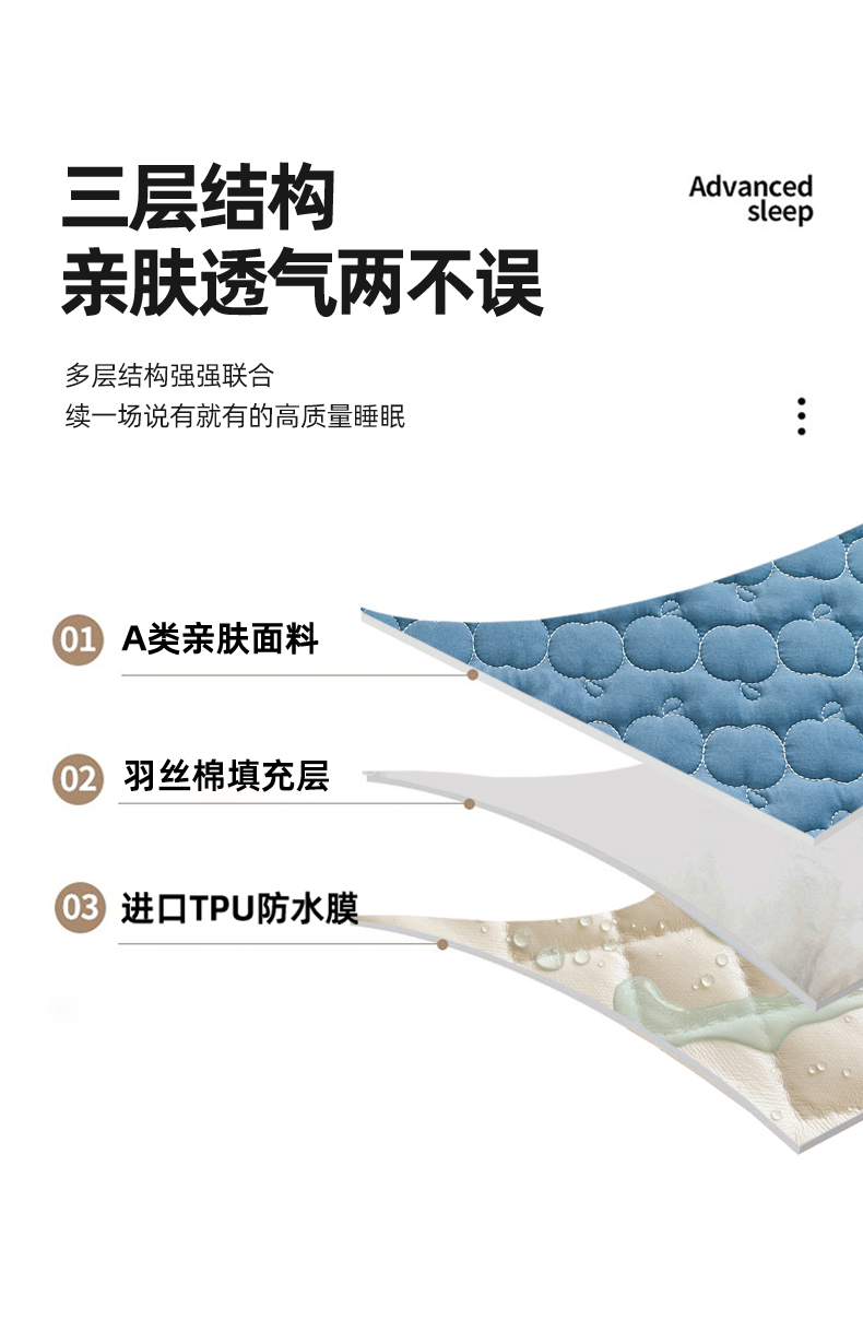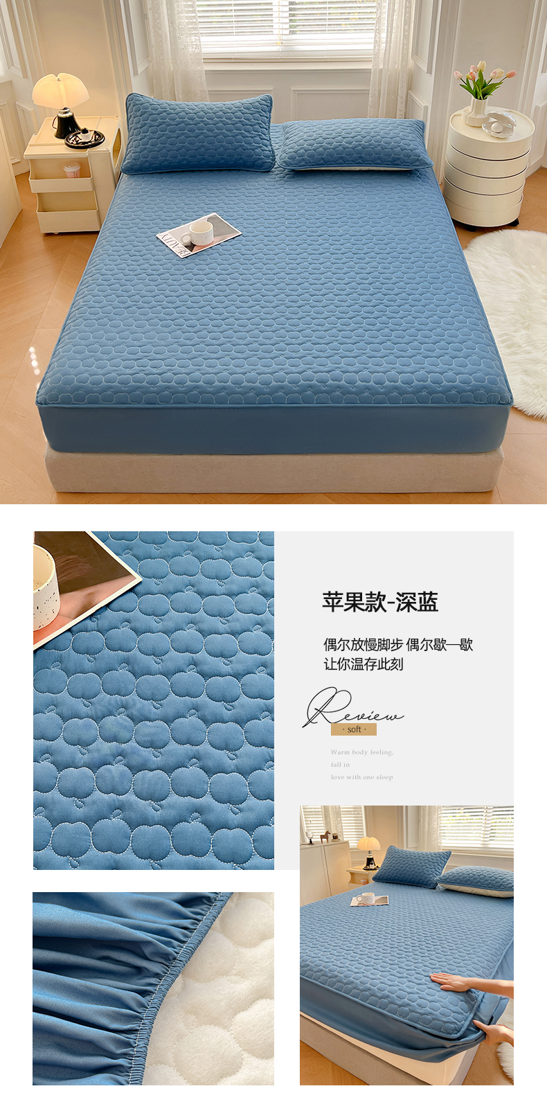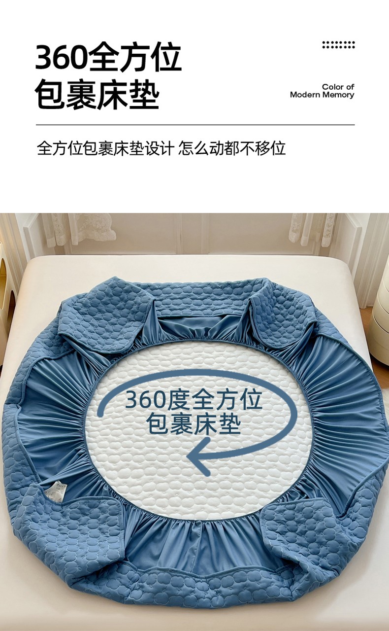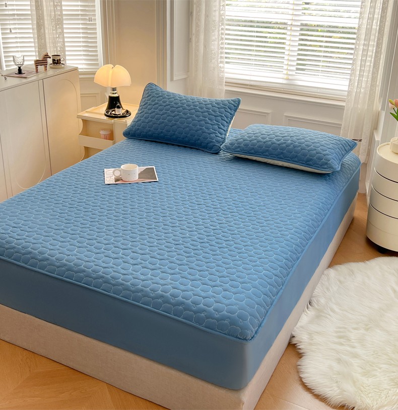 • 91家纺网 家纺一手货源 找家纺 梦舒羽2025新款抗菌隔尿防水四季款夹棉加厚床笠床垫保护罩床垫套 苹果款-深蓝