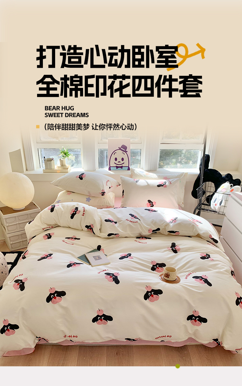 澳萝拉 2024新款全棉印花亲肤舒适四件套 苹果小奶狗
