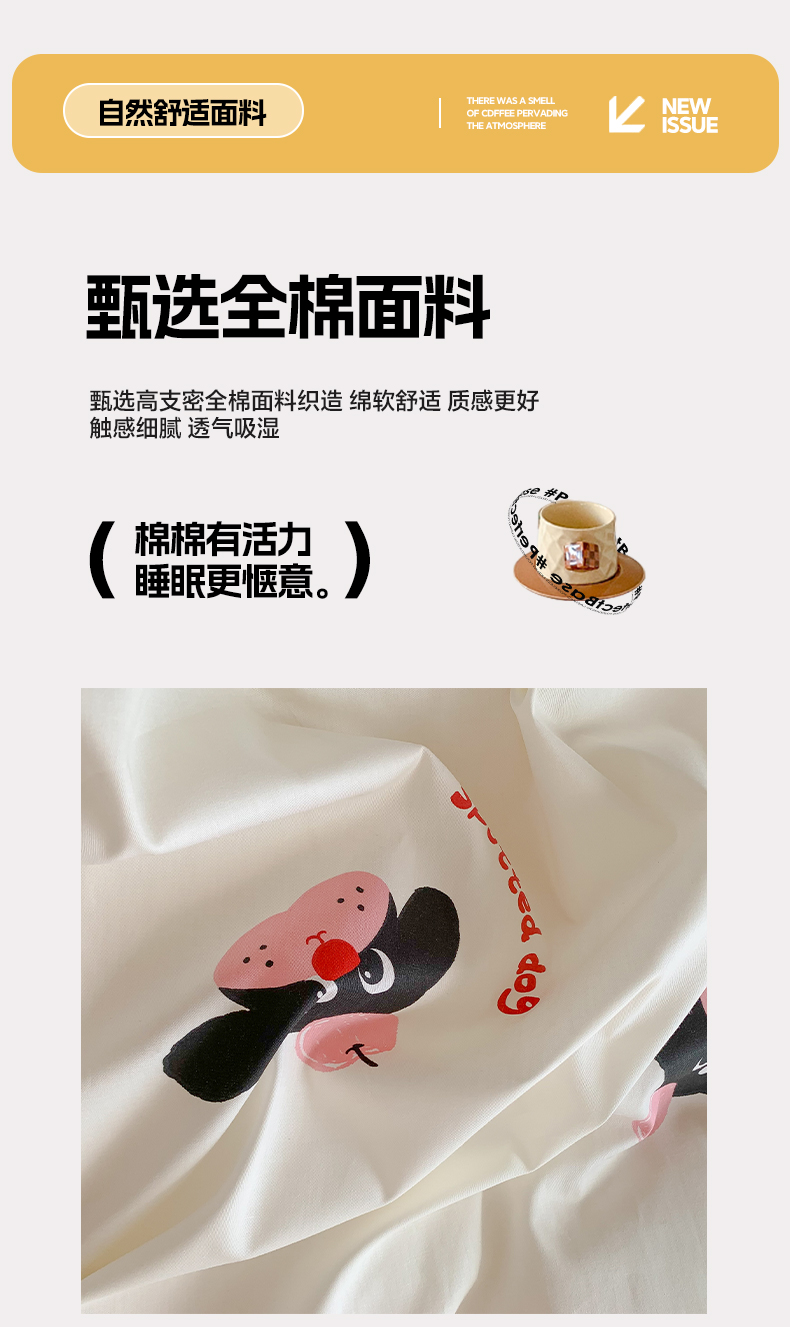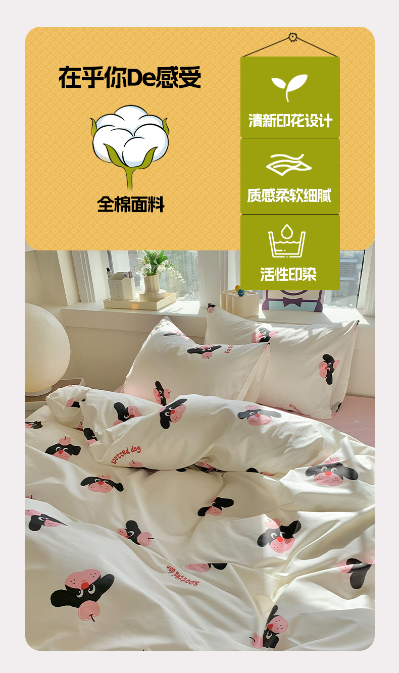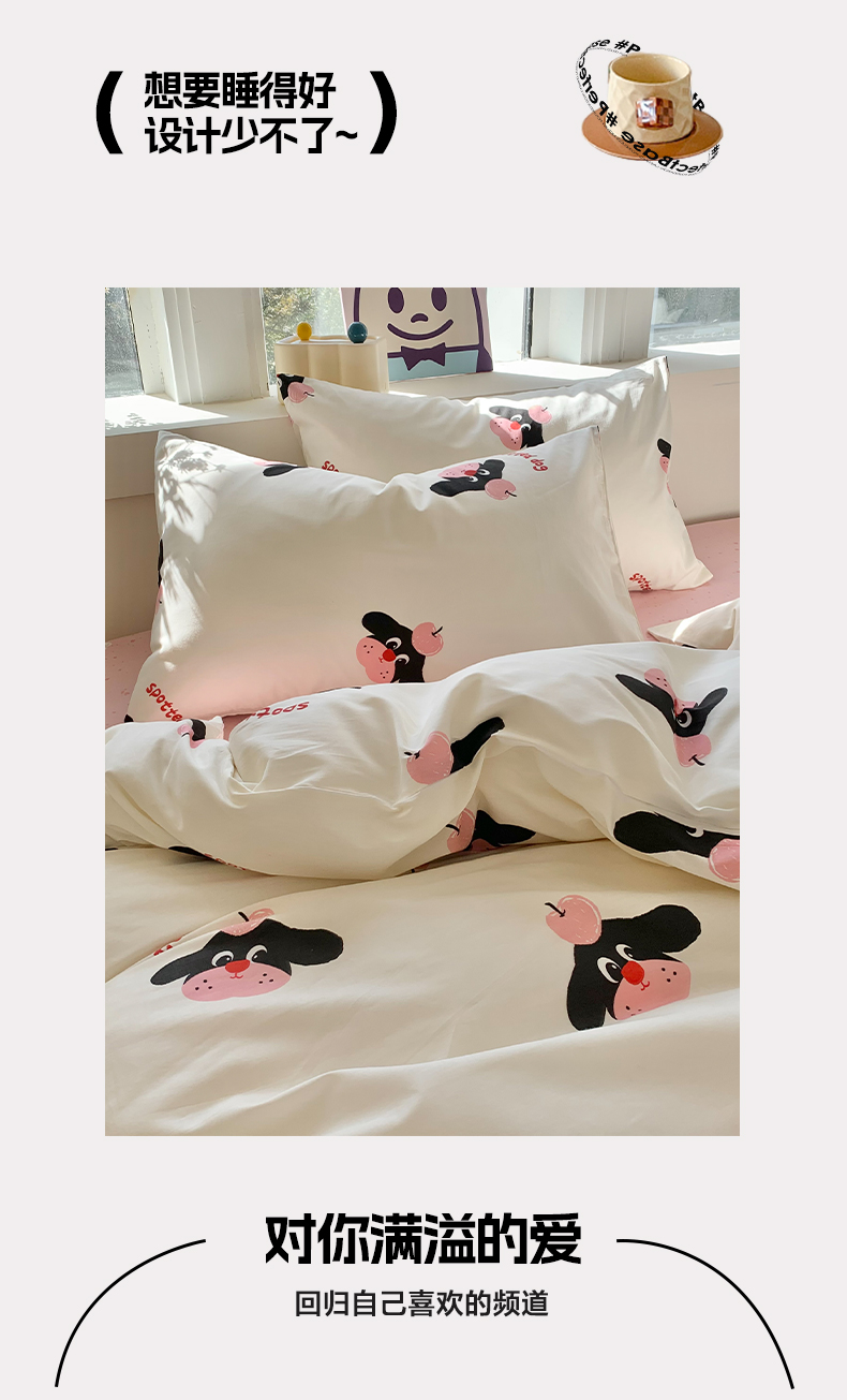 商品名称:澳萝拉 2024新款全棉印花亲肤舒适四件套 苹果小奶狗