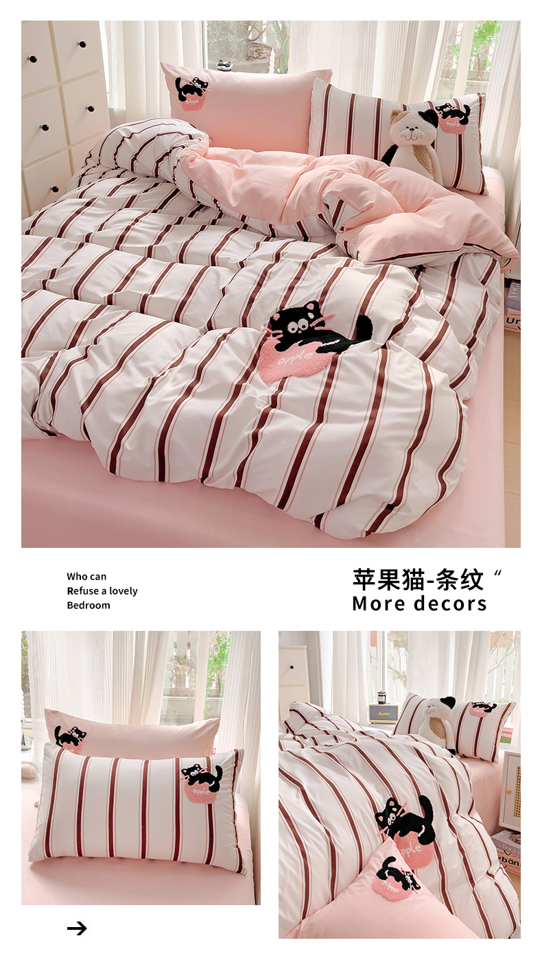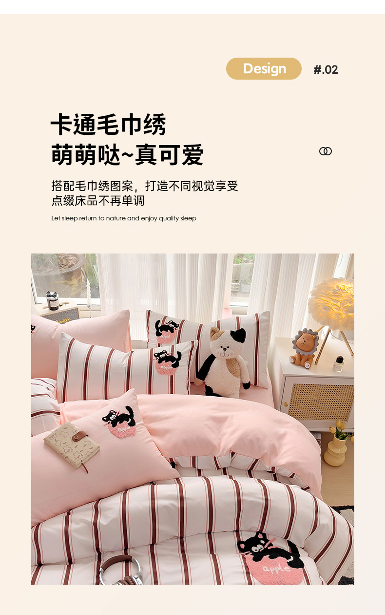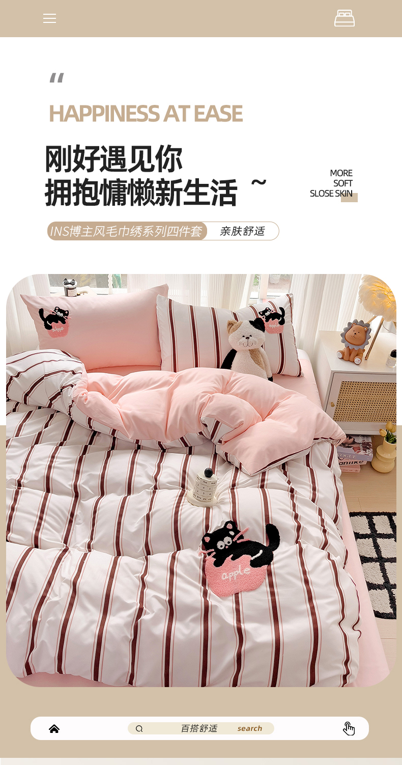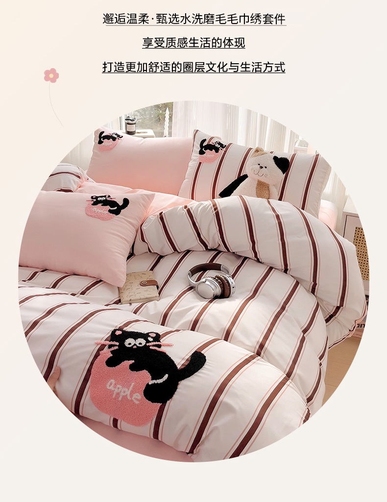 当前位置: 91家纺网 > 商品网购 > 床品套件 > 四件套 > 毛巾绣四件套 > 尤米 2024新款ins博主风系列毛巾绣四件套 苹果猫-条纹