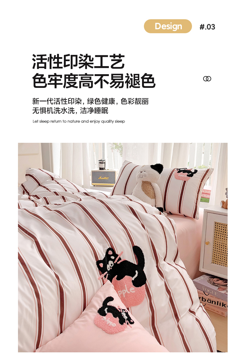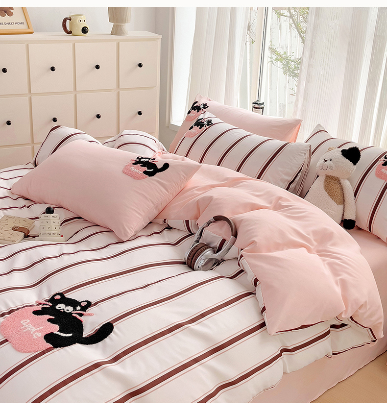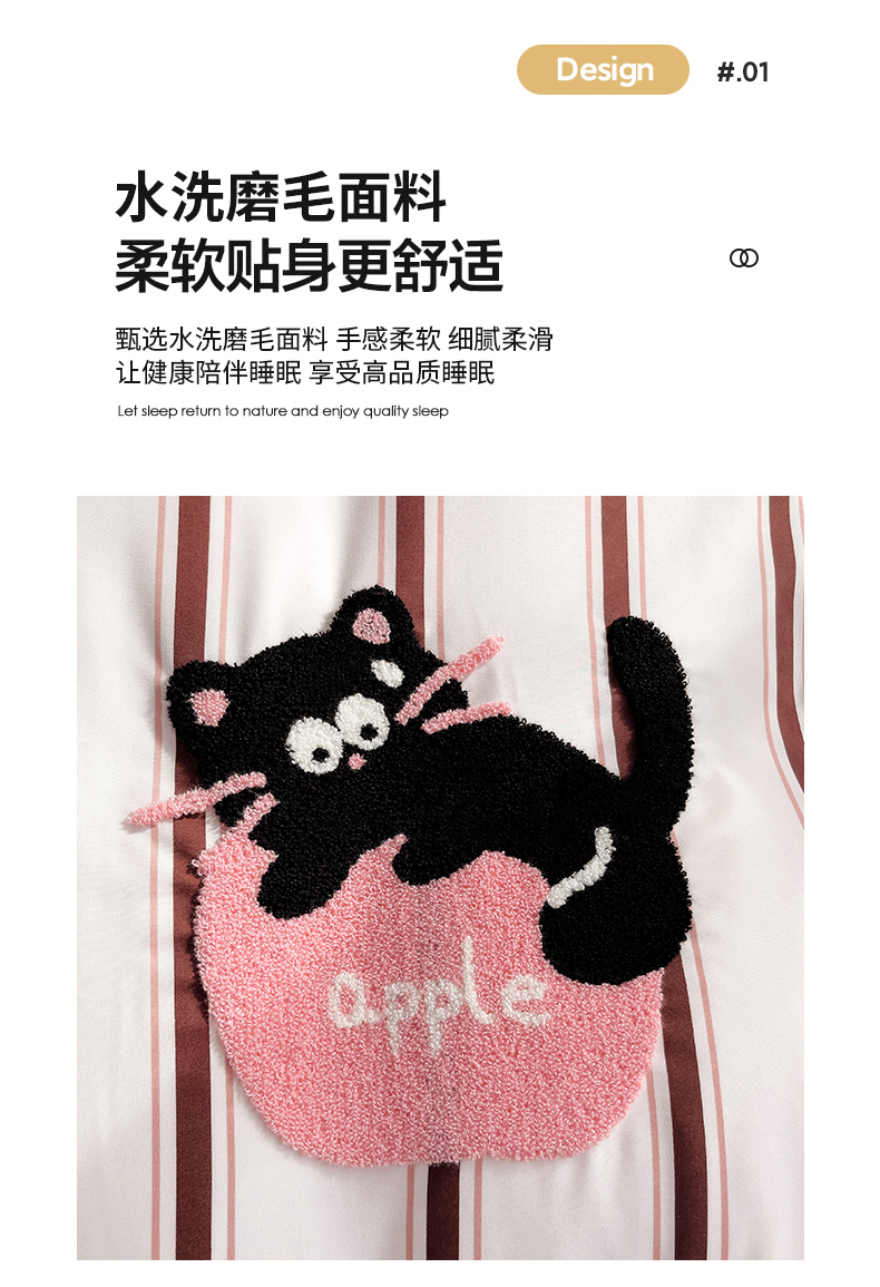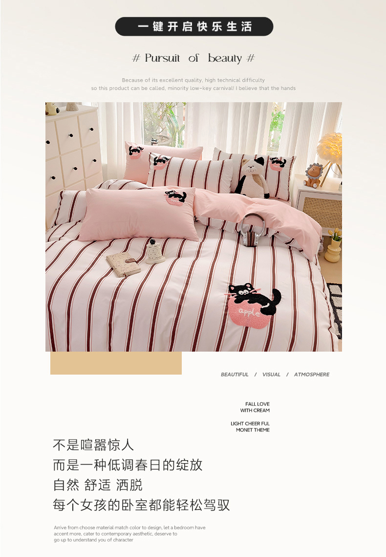当前位置: 91家纺网 > 商品网购 > 床品套件 > 四件套 > 毛巾绣四件套 > 尤米 2024新款ins博主风系列毛巾绣四件套 苹果猫-条纹