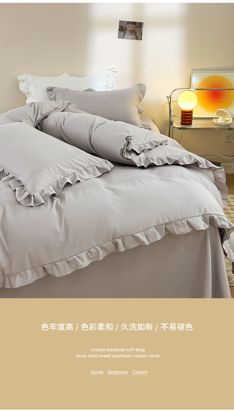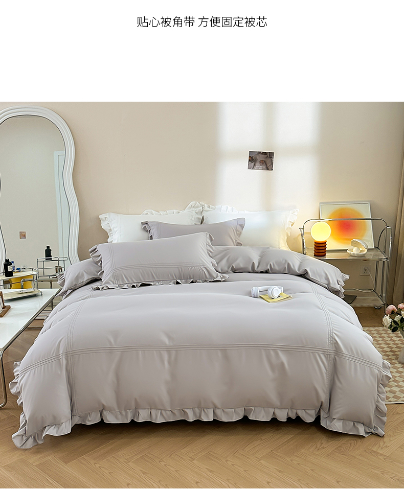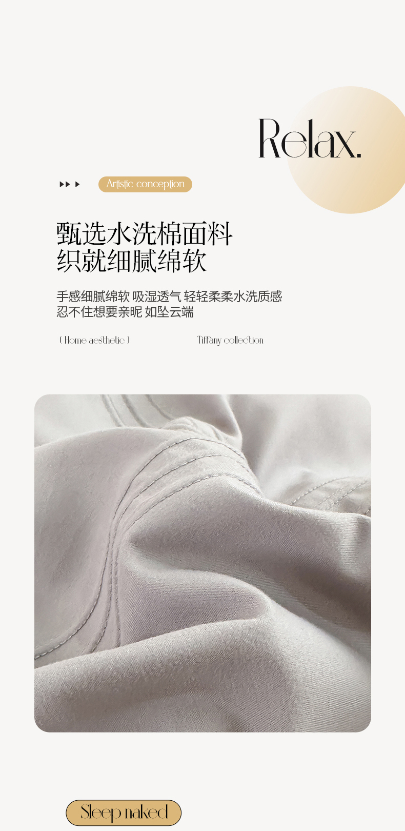 商品名称:绒兔兔 2024新款水洗棉埋绳花边系列-南法花园 浅灰