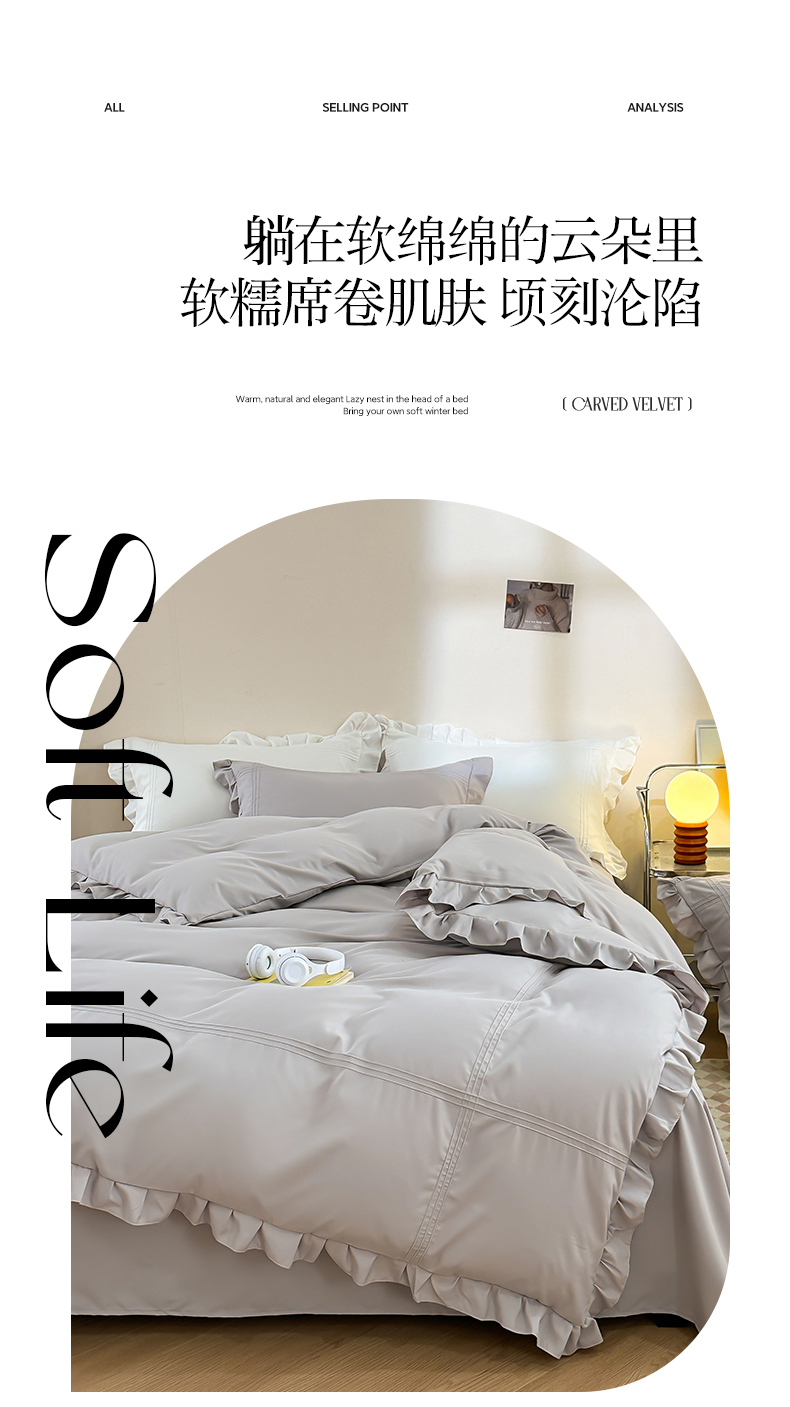 (总)绒兔兔 2021牛奶绒韩版揪花床裙四件套,潮蓝,豆绿,咖啡,魅紫,米白,嫩粉,深海蓝,太空灰,铁锈红,土黄