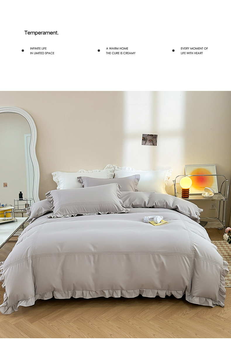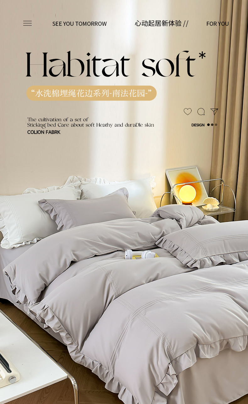 绒兔兔 2024新款水洗棉埋绳花边系列-南法花园 浅灰