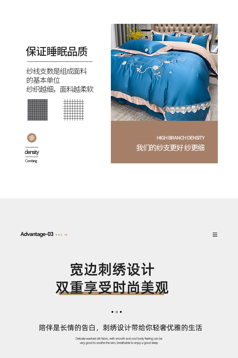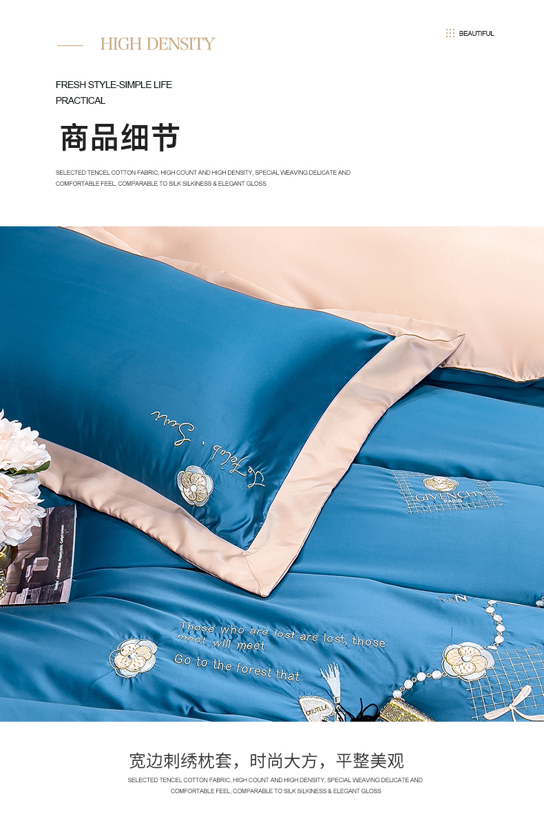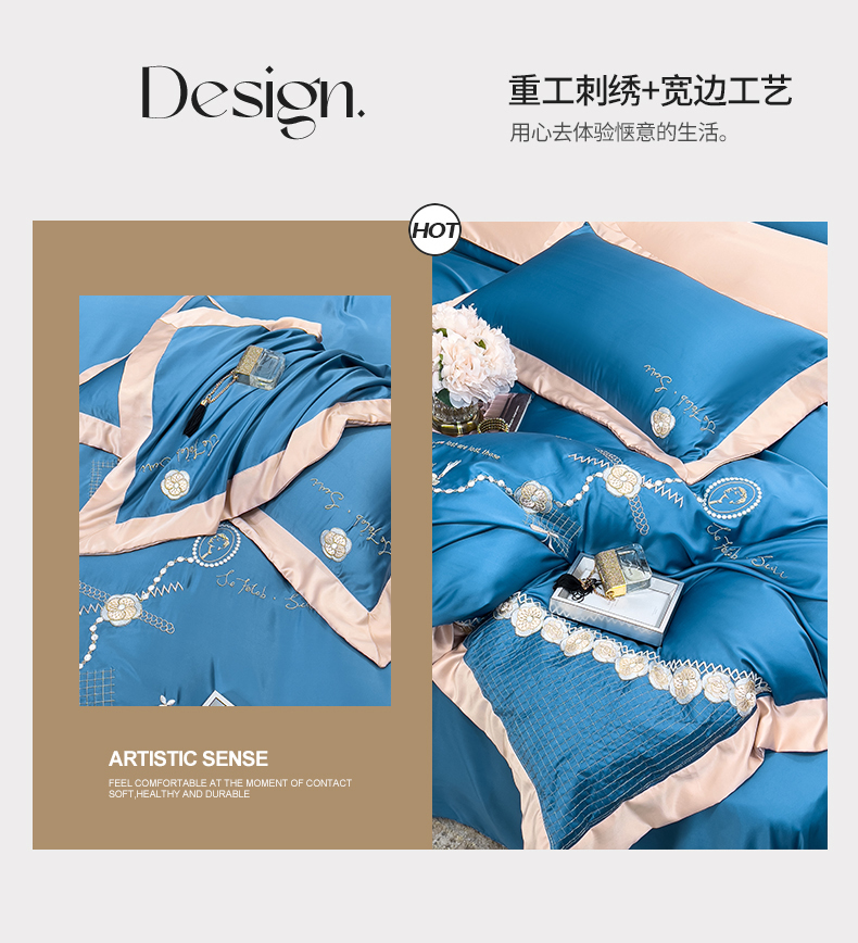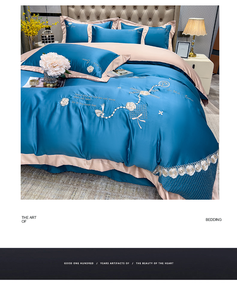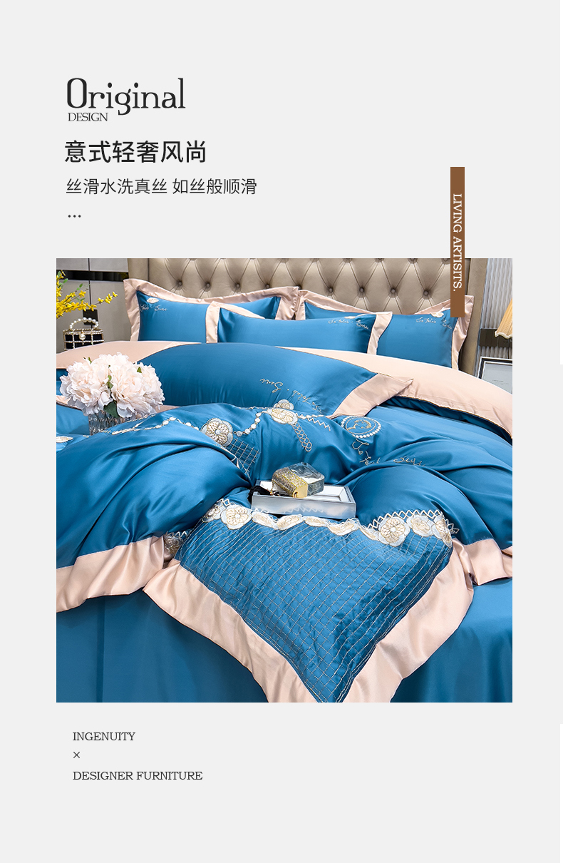 欧冠家纺 2024新款绣花水洗真丝四件套莱娅四件套 莱娅-宾利蓝