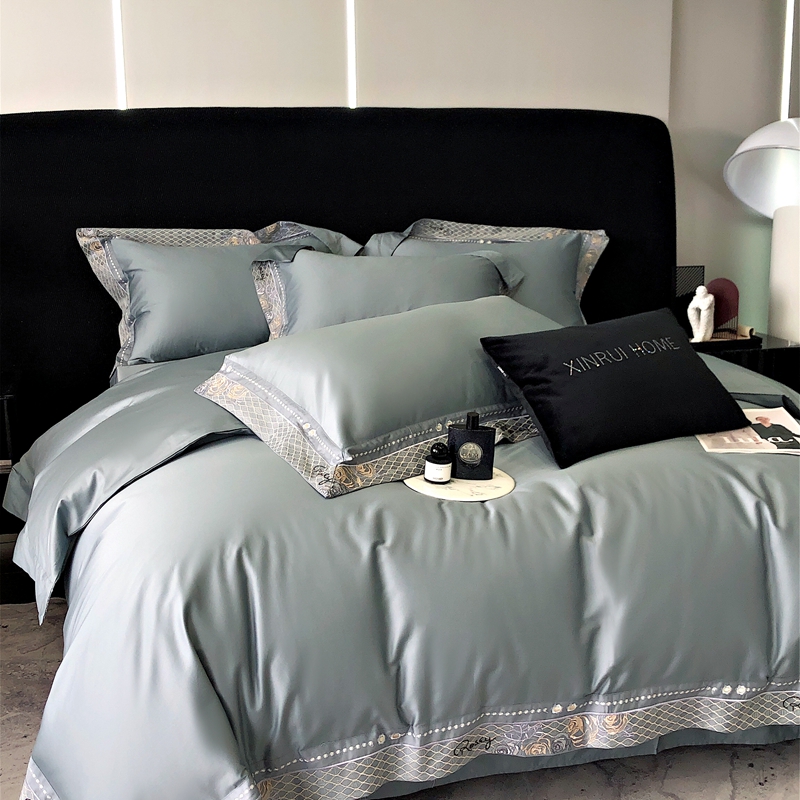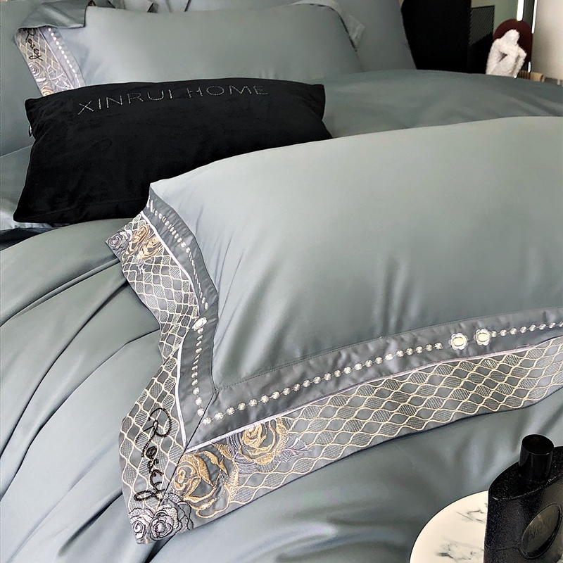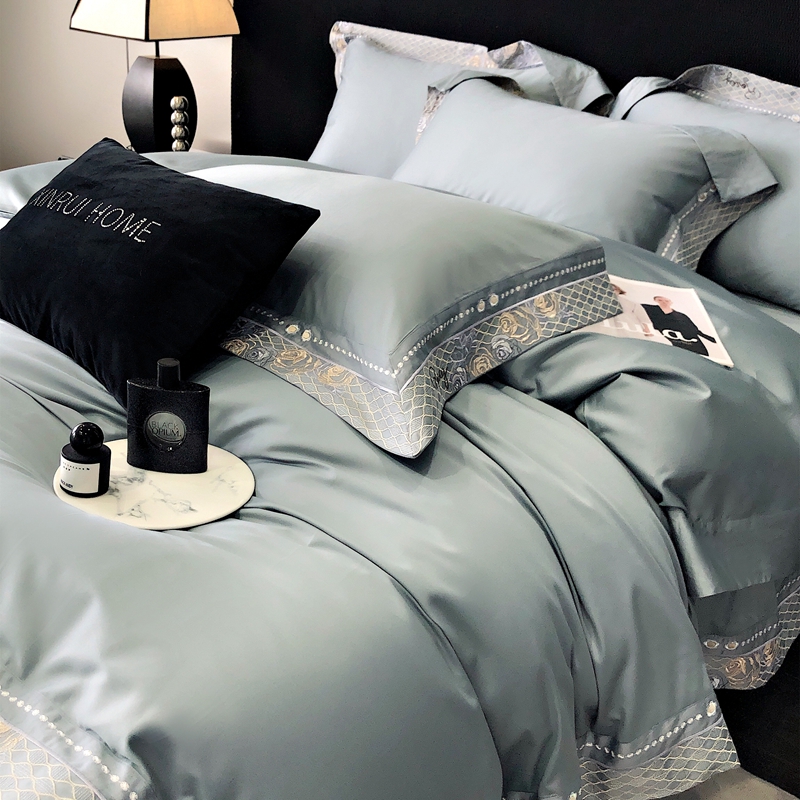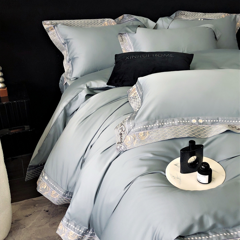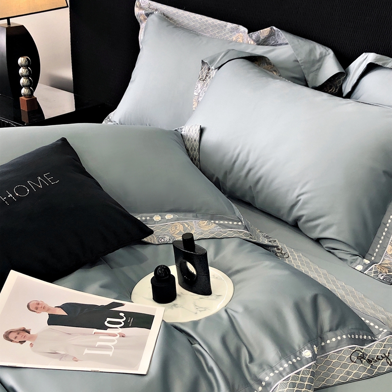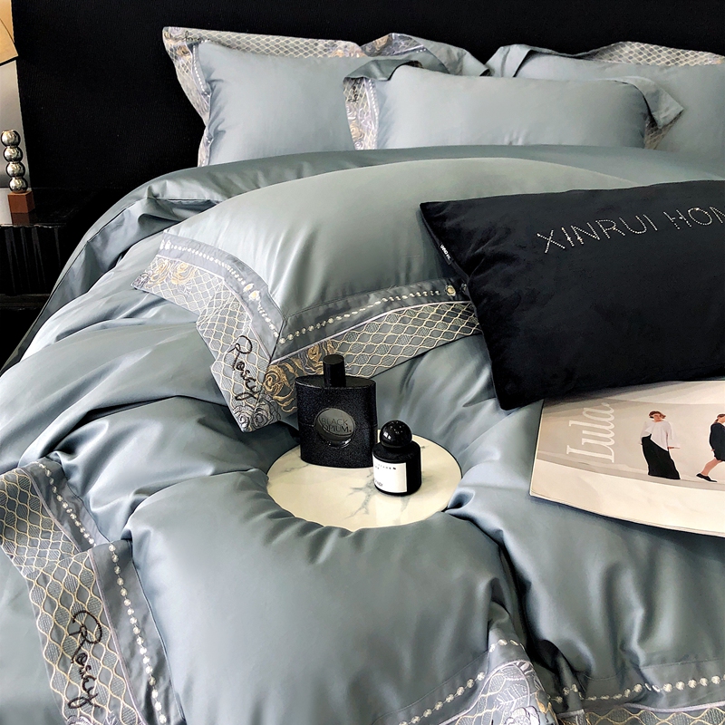 商品名称:馨蕊家居 2024新款100支进口长绒棉全棉四件套-欧若拉 欧若拉-蓝灰