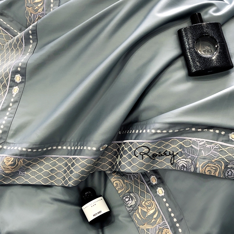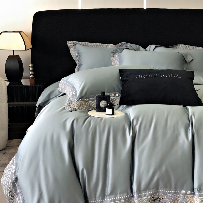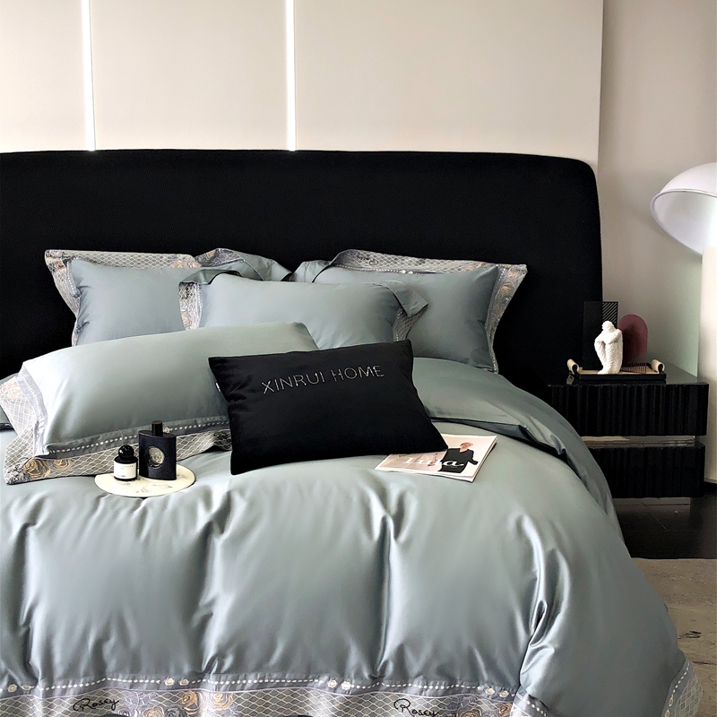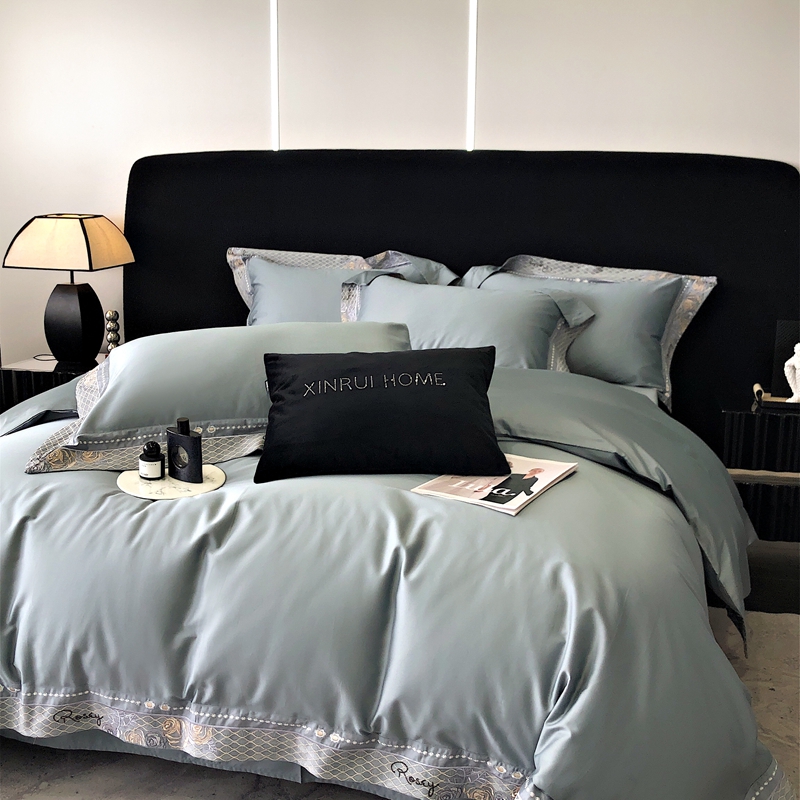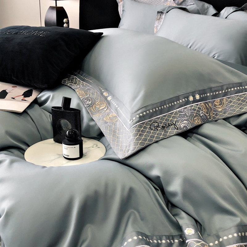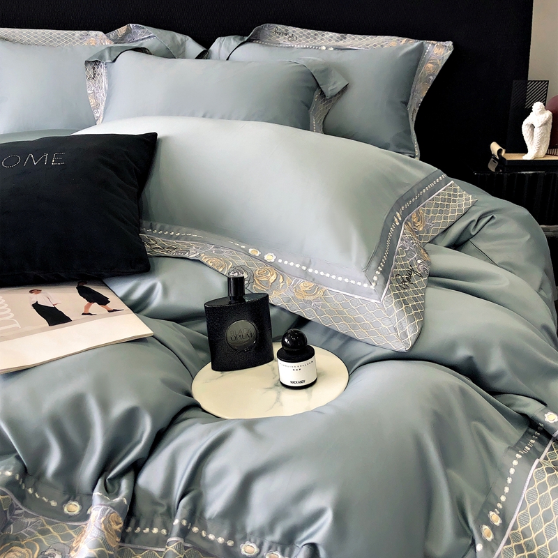 商品名称:馨蕊家居 2024新款100支进口长绒棉全棉四件套-欧若拉 欧若拉-蓝灰