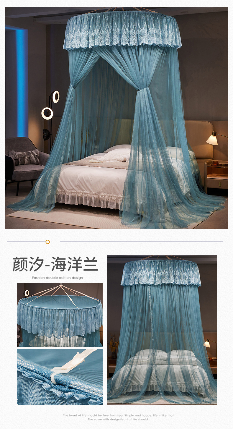 雪姿家纺 2024新款唯美蕾丝圆顶蚊帐-颜汐 颜汐-海洋兰