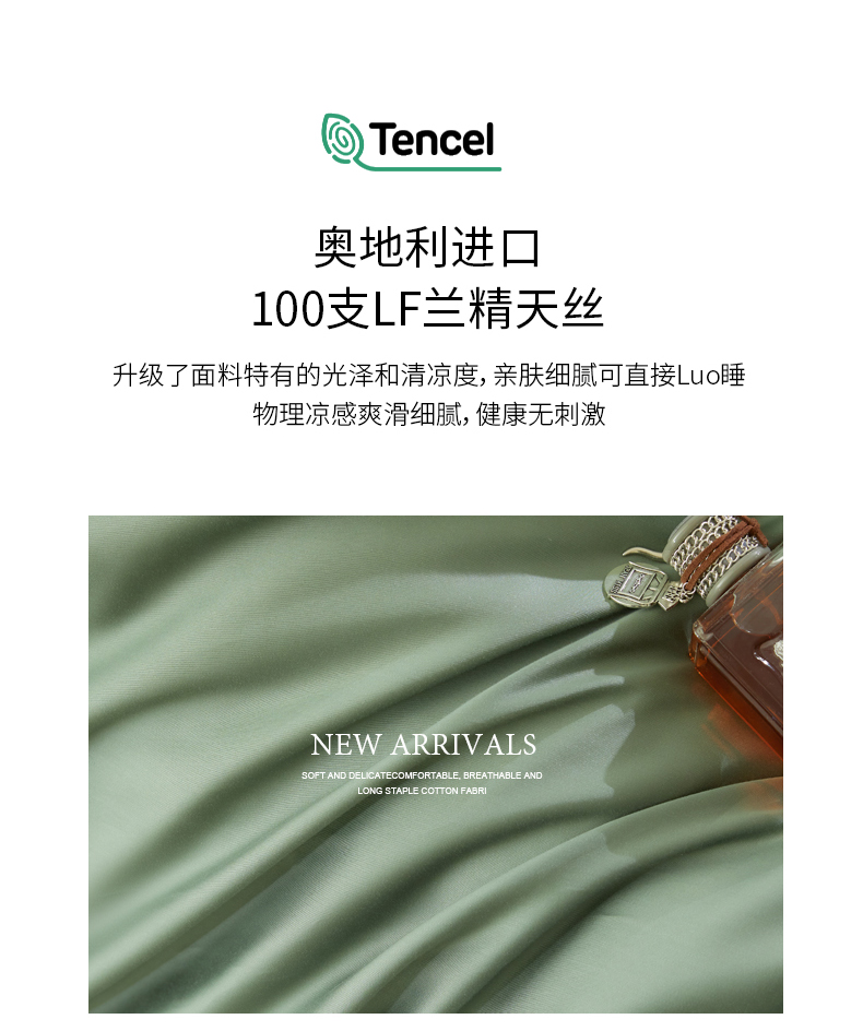 商品名称:(总)618家纺 2024新款A类60S100支兰精天丝四件套-简约系列 天丝双拼芙绿