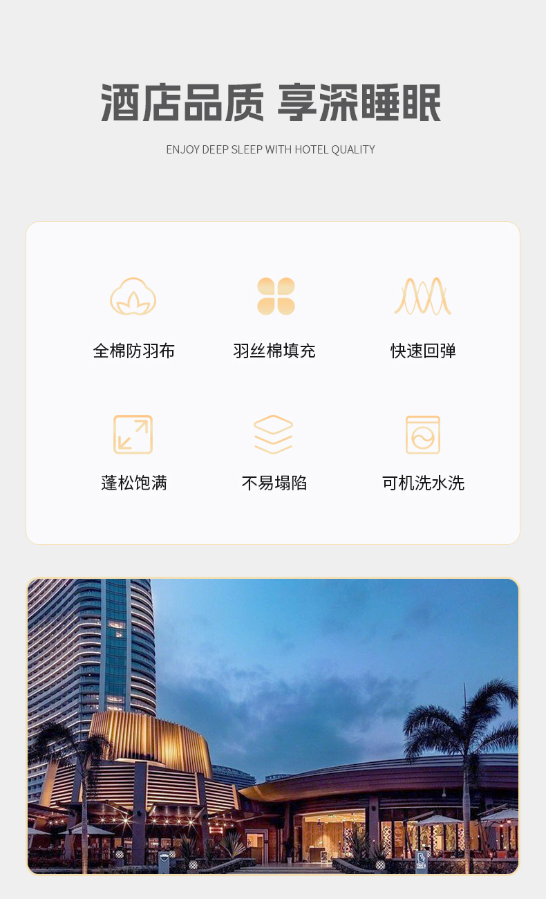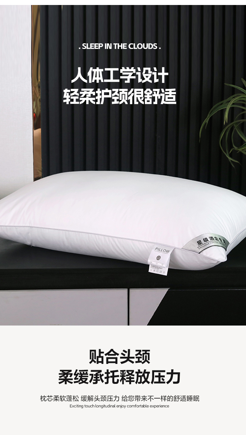 商品名称:(总)宜眠家纺 2024新款酒店枕芯全棉纯白酒店枕头羽丝棉45*75cm