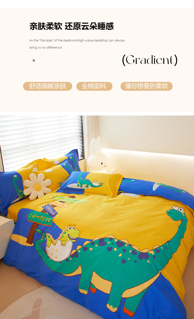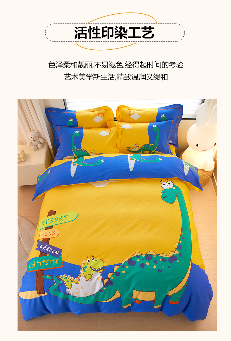 商品名称:启航家居 2025春夏直播爆款全棉大版印花四件套 童年乐趣黄