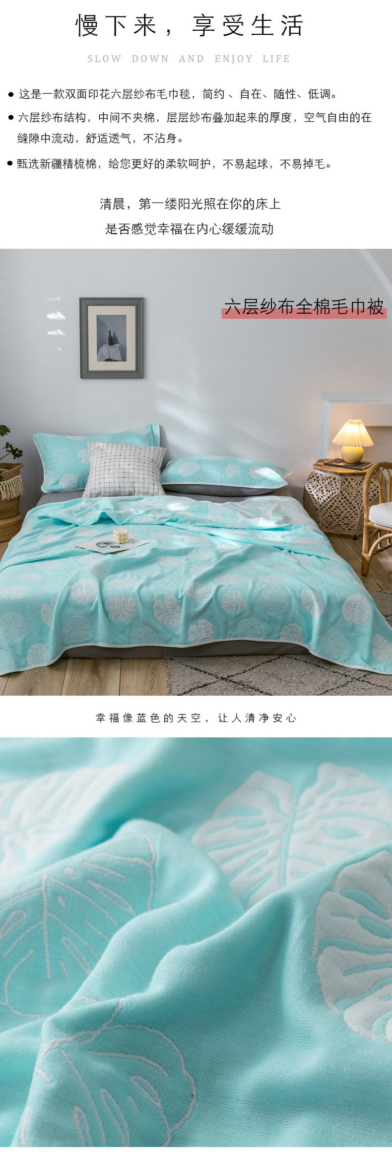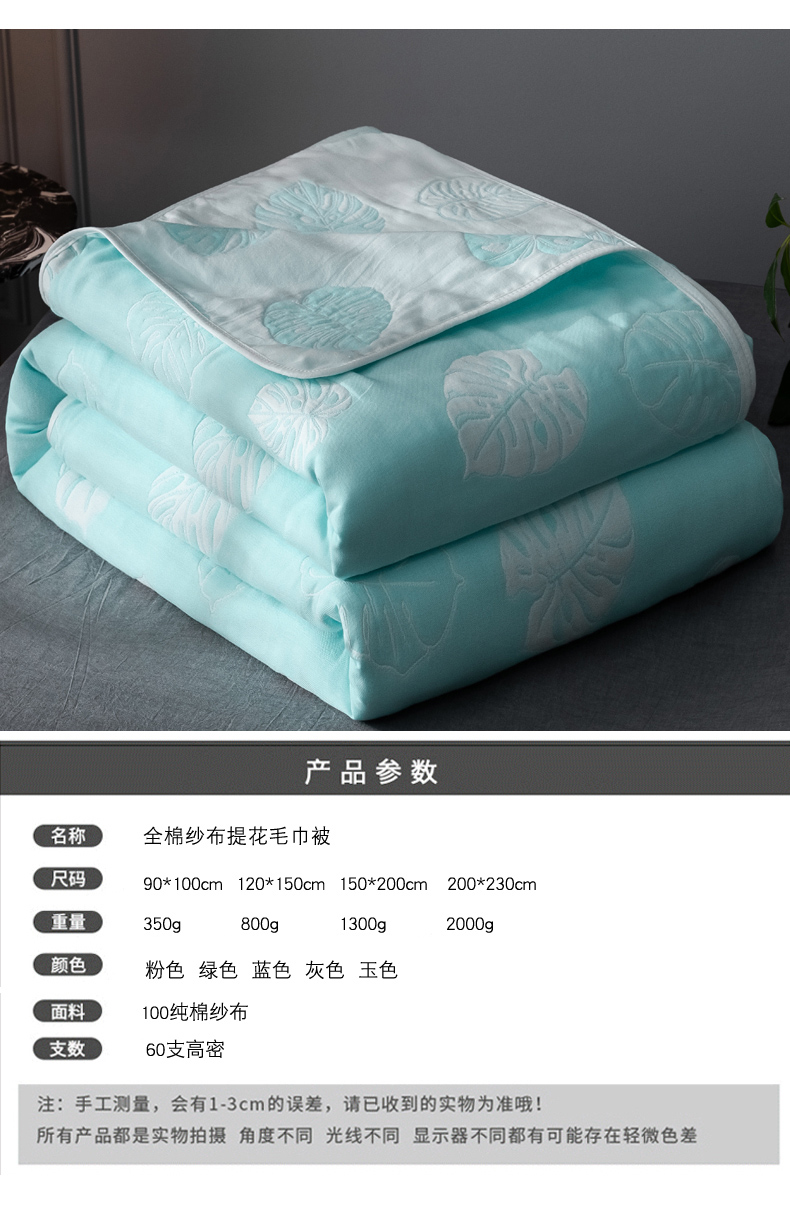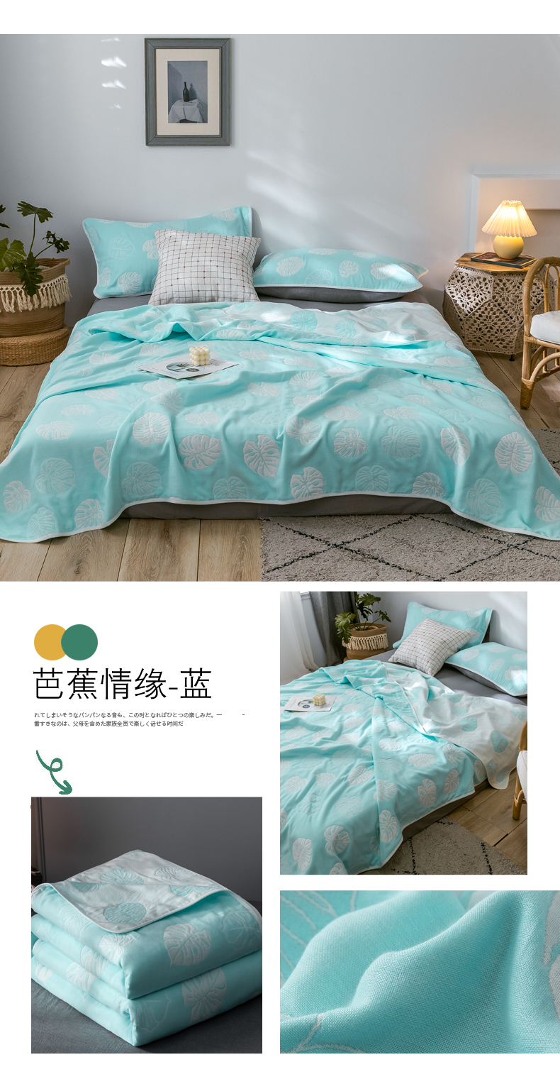 商品名称:朴尔 2024经典六层纱布全棉毛巾被系列 芭蕉情缘-蓝
