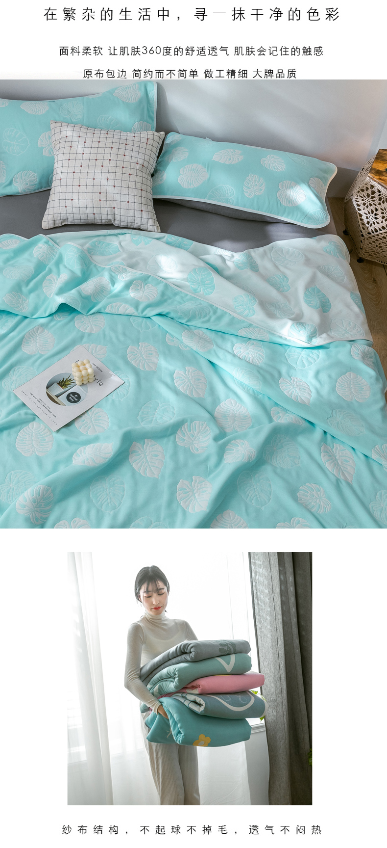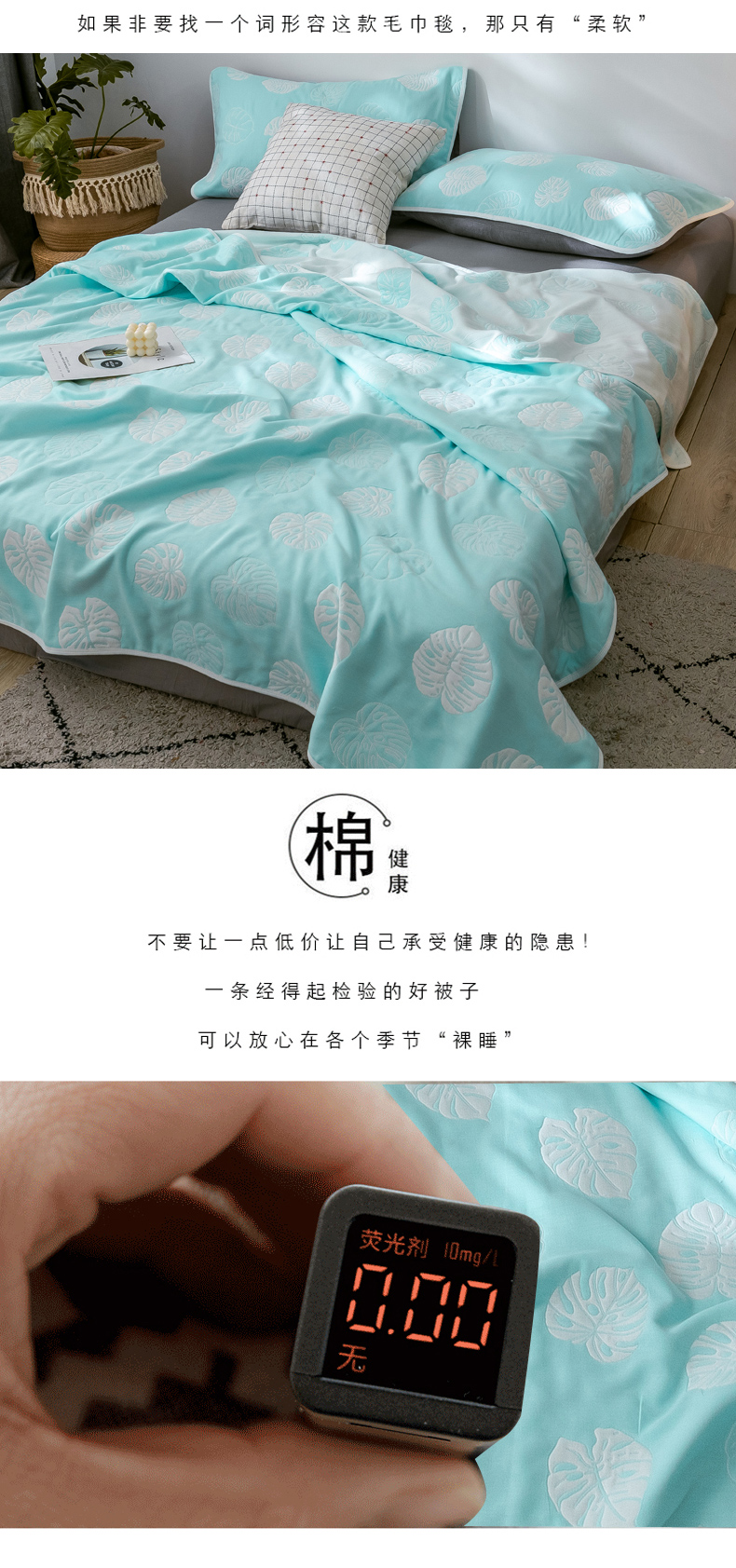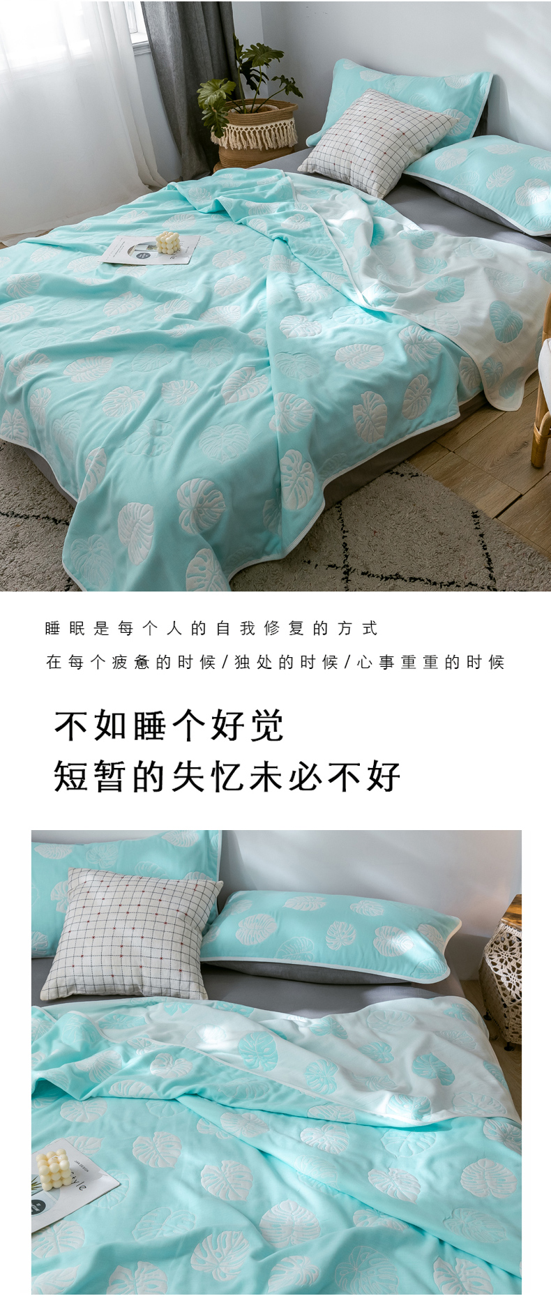 商品名称:朴尔 2024经典六层纱布全棉毛巾被系列 芭蕉情缘-蓝