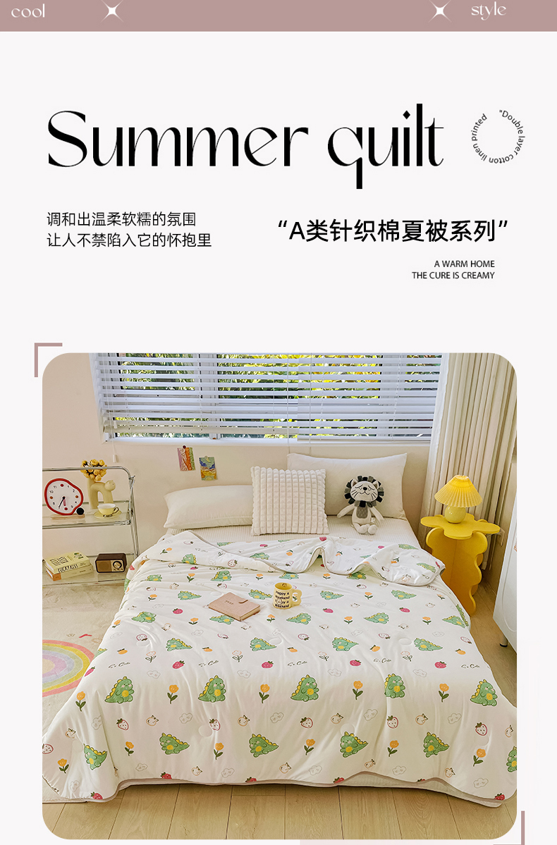 米米儿家纺 2024新款A类针织棉夏被夏凉被被子被芯 可爱恐龙