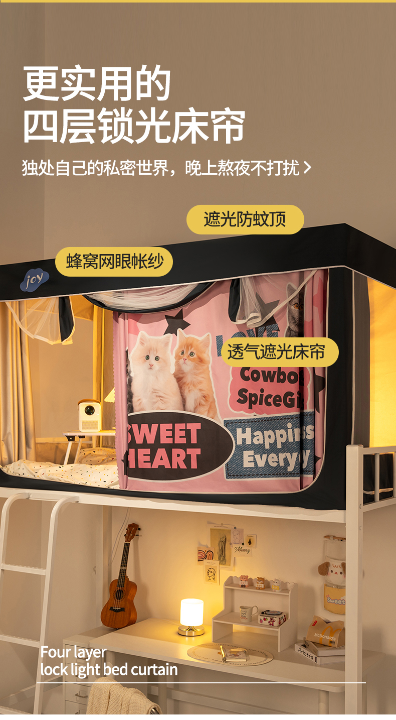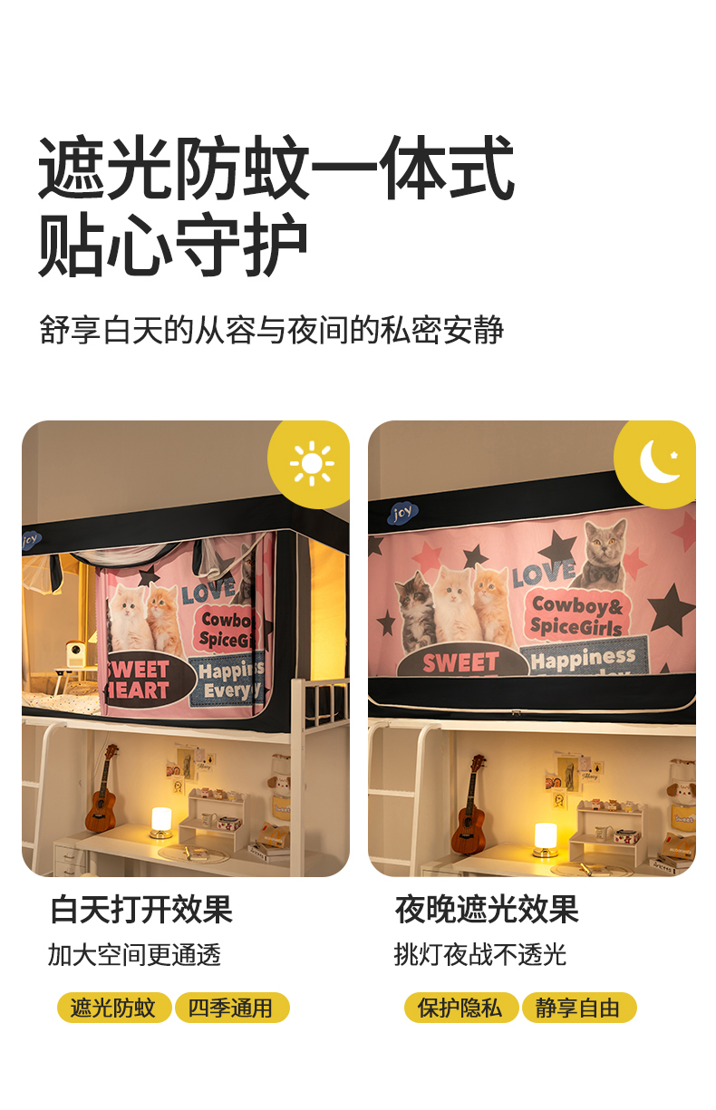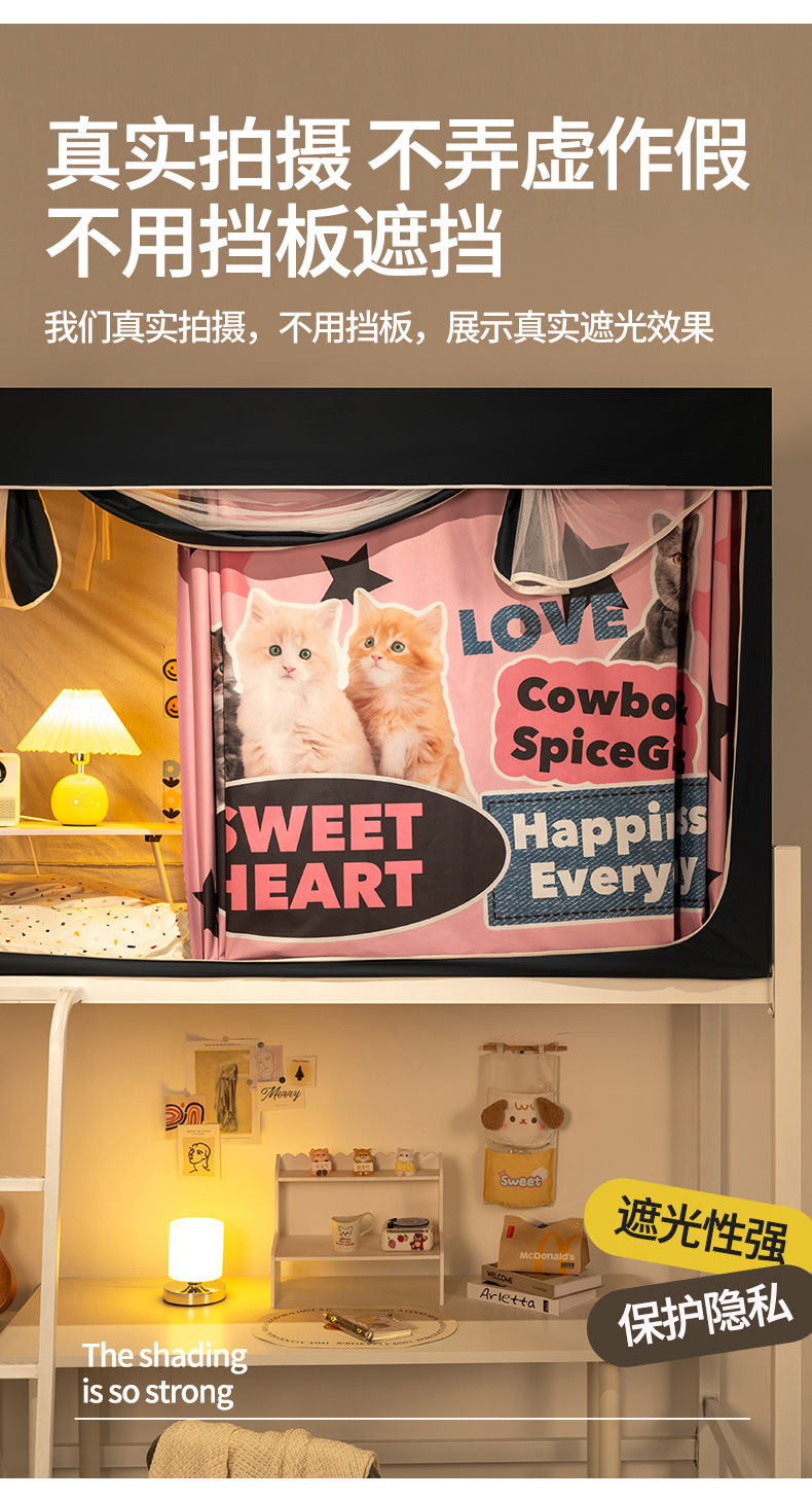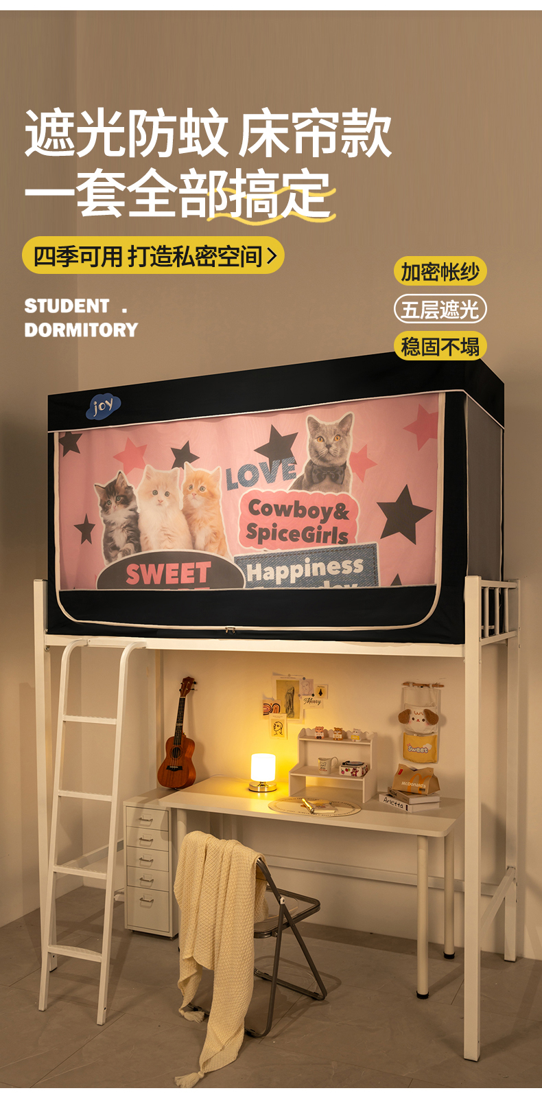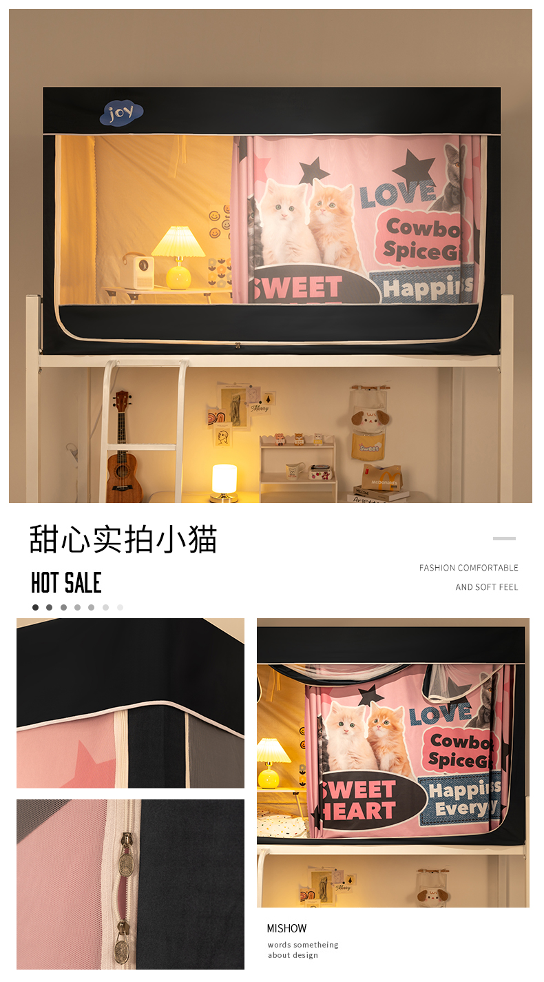 商品名称:新太阳蚊帐 2025新款涂层遮光防蚊款学生床帘 甜心实拍小猫