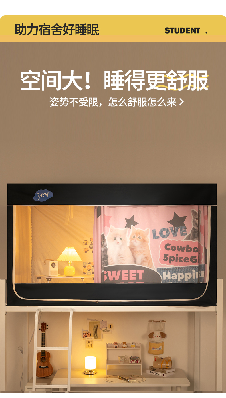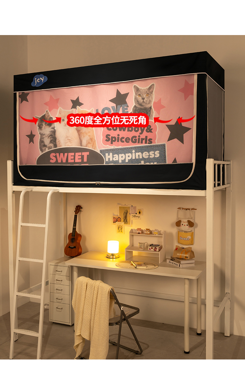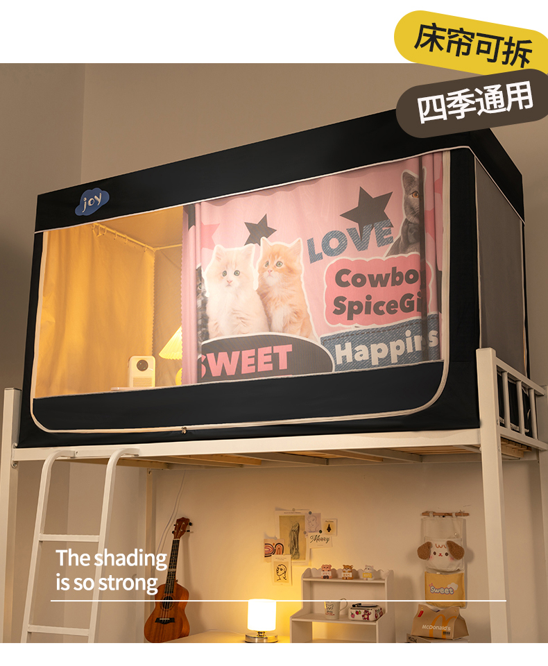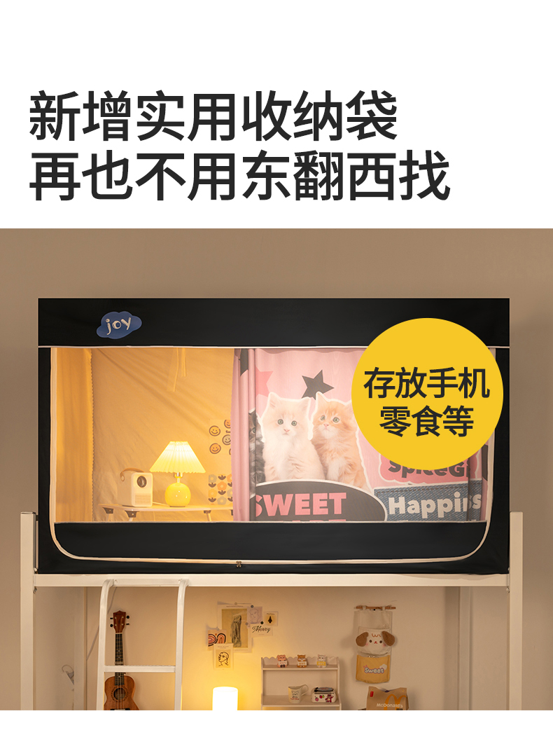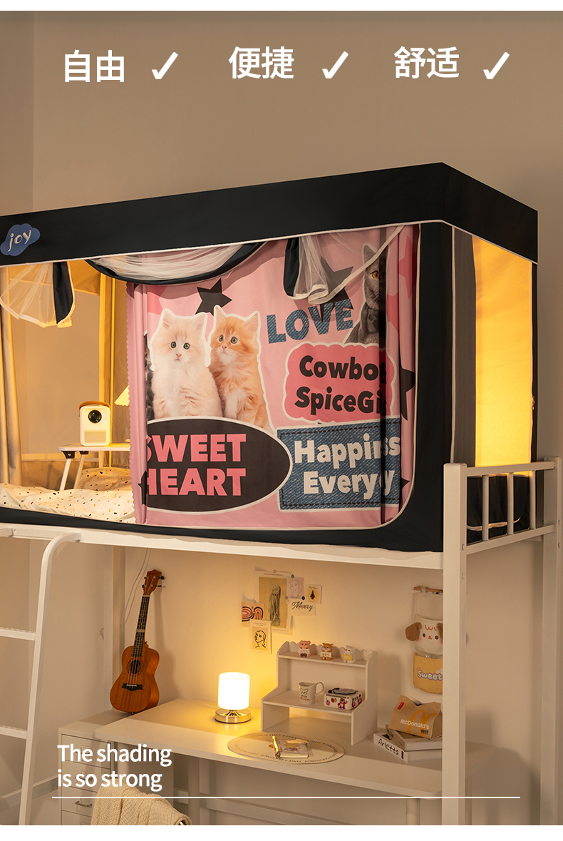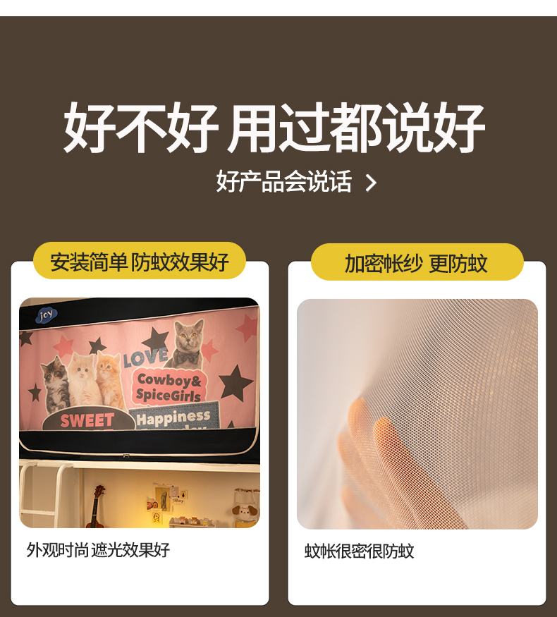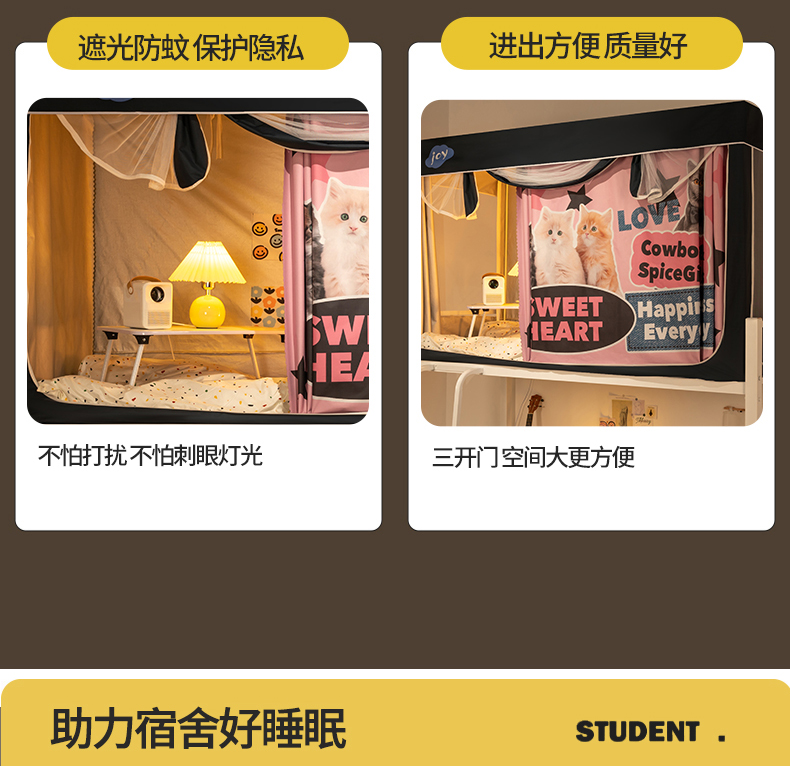 商品名称:新太阳蚊帐 2025新款涂层遮光防蚊款学生床帘 甜心实拍小猫