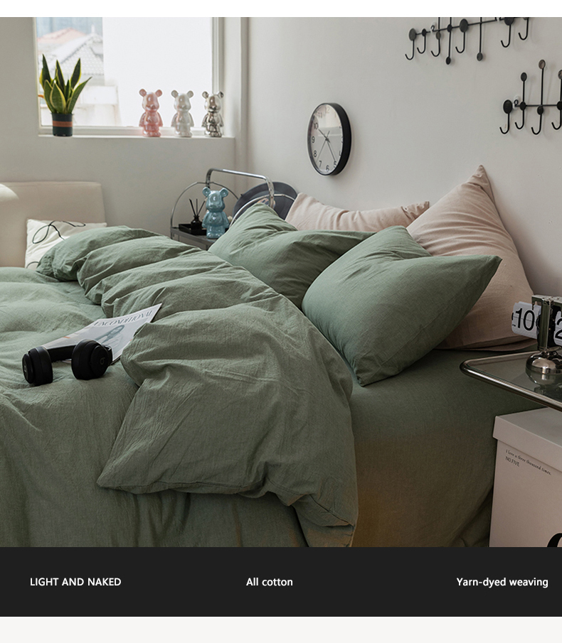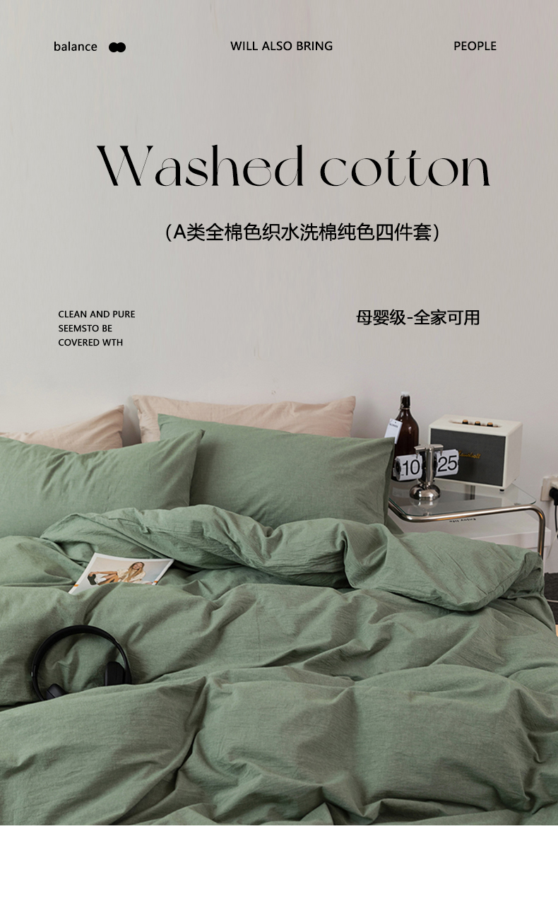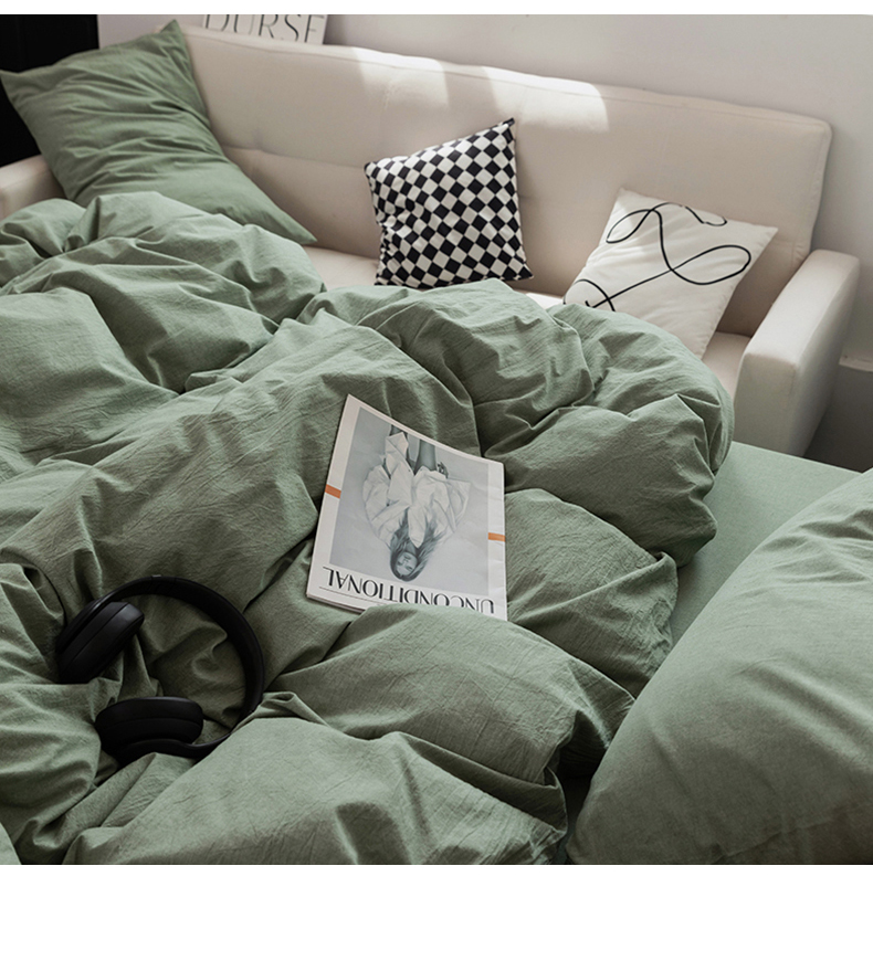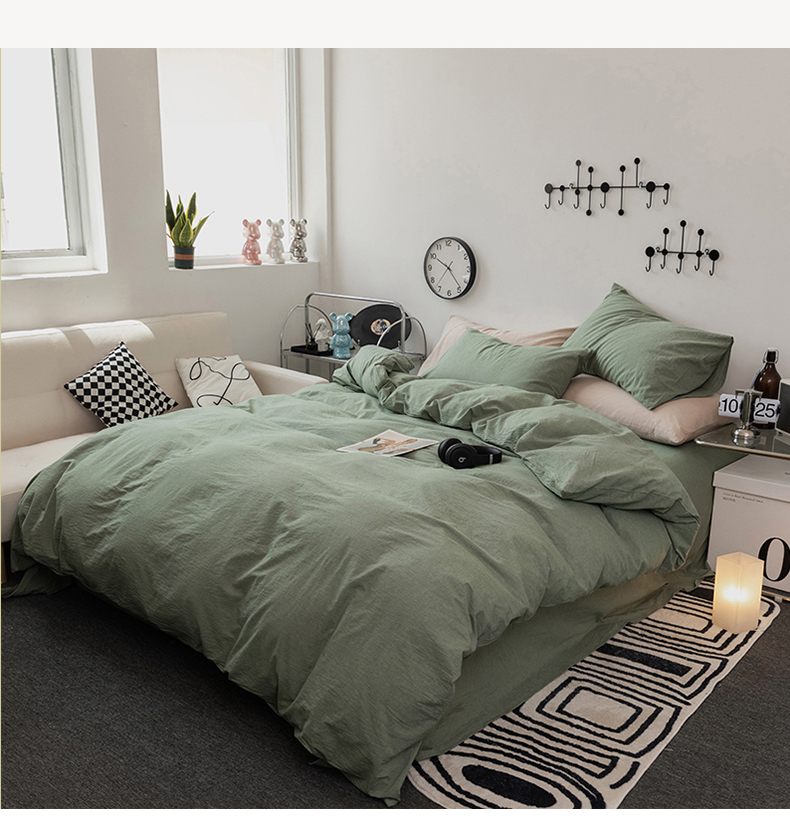当前位置: 91家纺网 > 商品网购 > 床品套件 > 四件套 > 全棉普通四件套 > 羋多(原穆琪) 2024新款A类全棉色织水洗棉纯色四件套 草绿