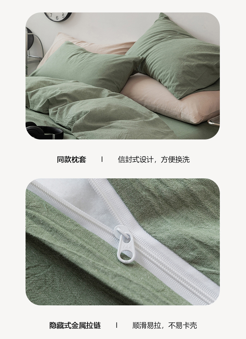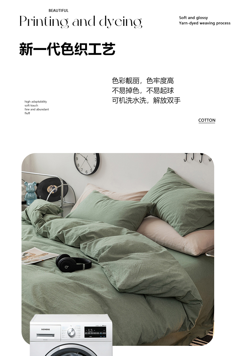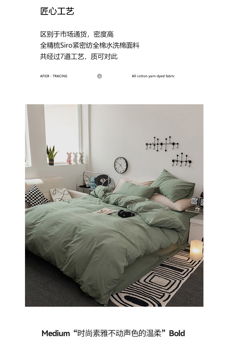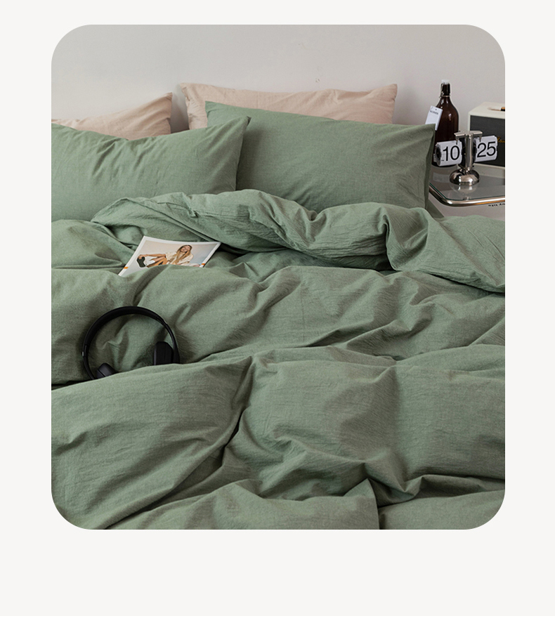 当前位置: 91家纺网 > 商品网购 > 床品套件 > 四件套 > 全棉普通四件套 > 羋多(原穆琪) 2024新款A类全棉色织水洗棉纯色四件套 草绿