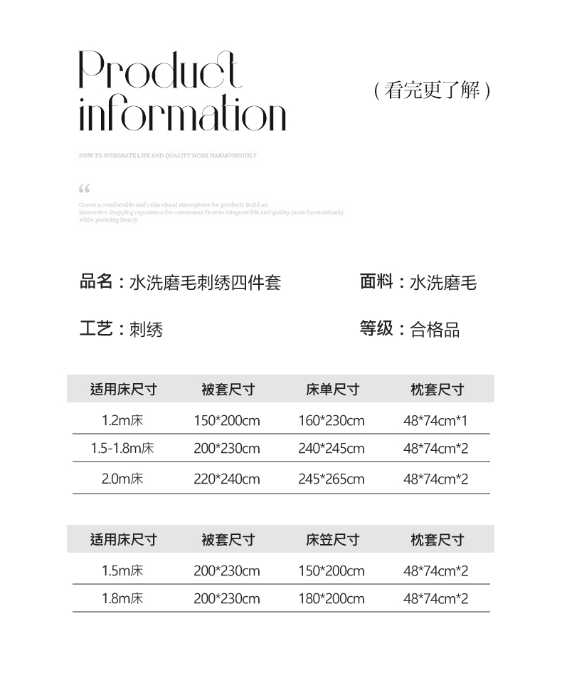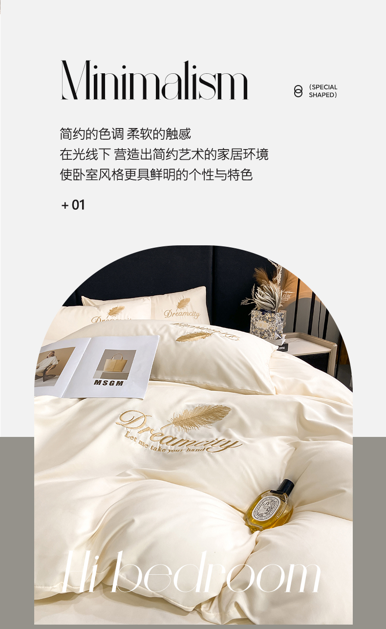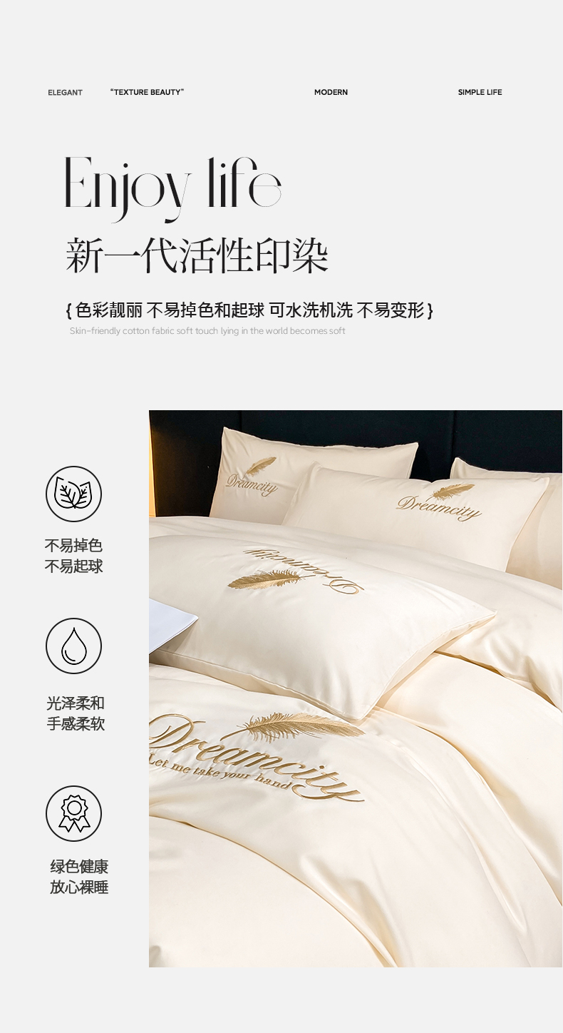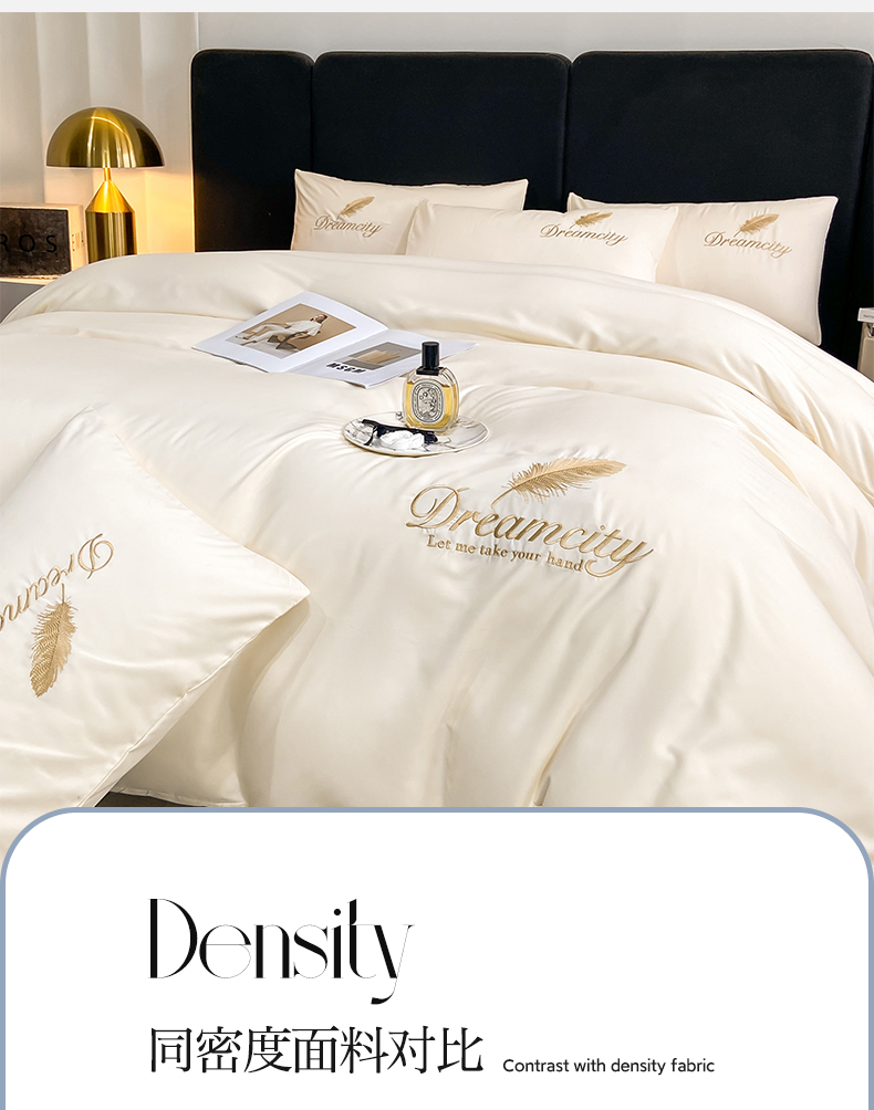 商品名称:如一 2024新款水洗棉磨毛纯色刺绣羽毛系列四件套 羽毛-奶昔白