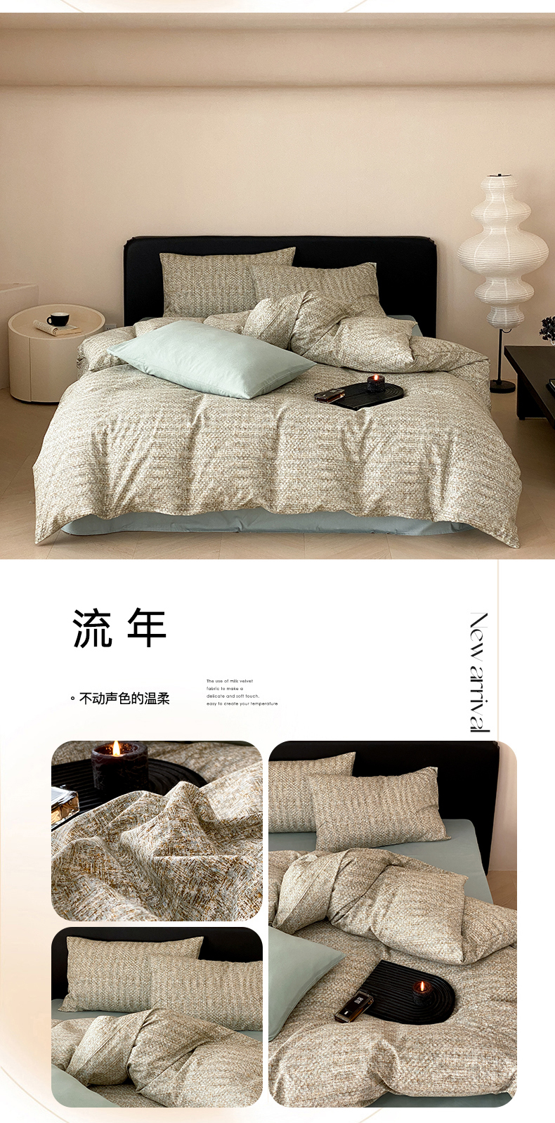 (总)嘉汀兰2025新款全棉臻品磨毛轻奢时尚秋冬加厚四件套-拼角款,浮生若梦,雾林-浅灰,星辰,杏花微雨,长相依-草绿