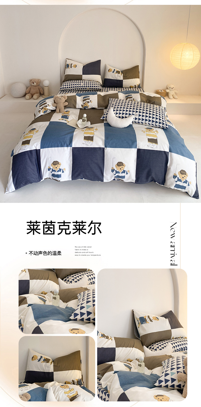 (总)嘉汀兰家居 2025新款全棉纯棉大版数码印花生态磨毛四件套,可爱多-米,小王子-灰