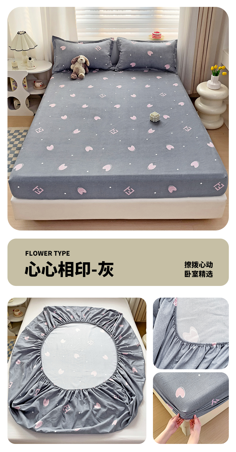 商品名称:好亿来家纺 2025新款亲肤磨毛单层床笠 心心相印-灰
