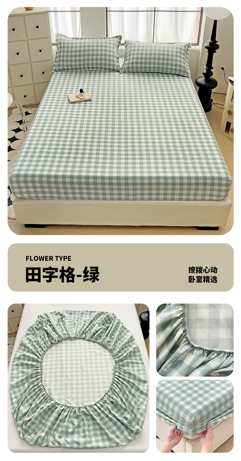 商品名称:好亿来家纺 2025新款亲肤磨毛单层床笠 田字格-绿