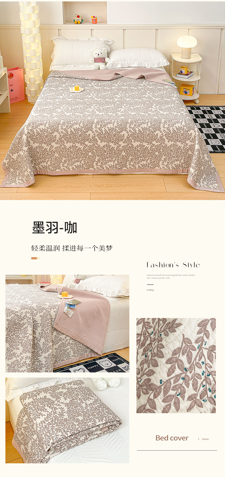 商品名称:OL家纺 2024新款单品天丝双面直角床盖 墨羽-咖